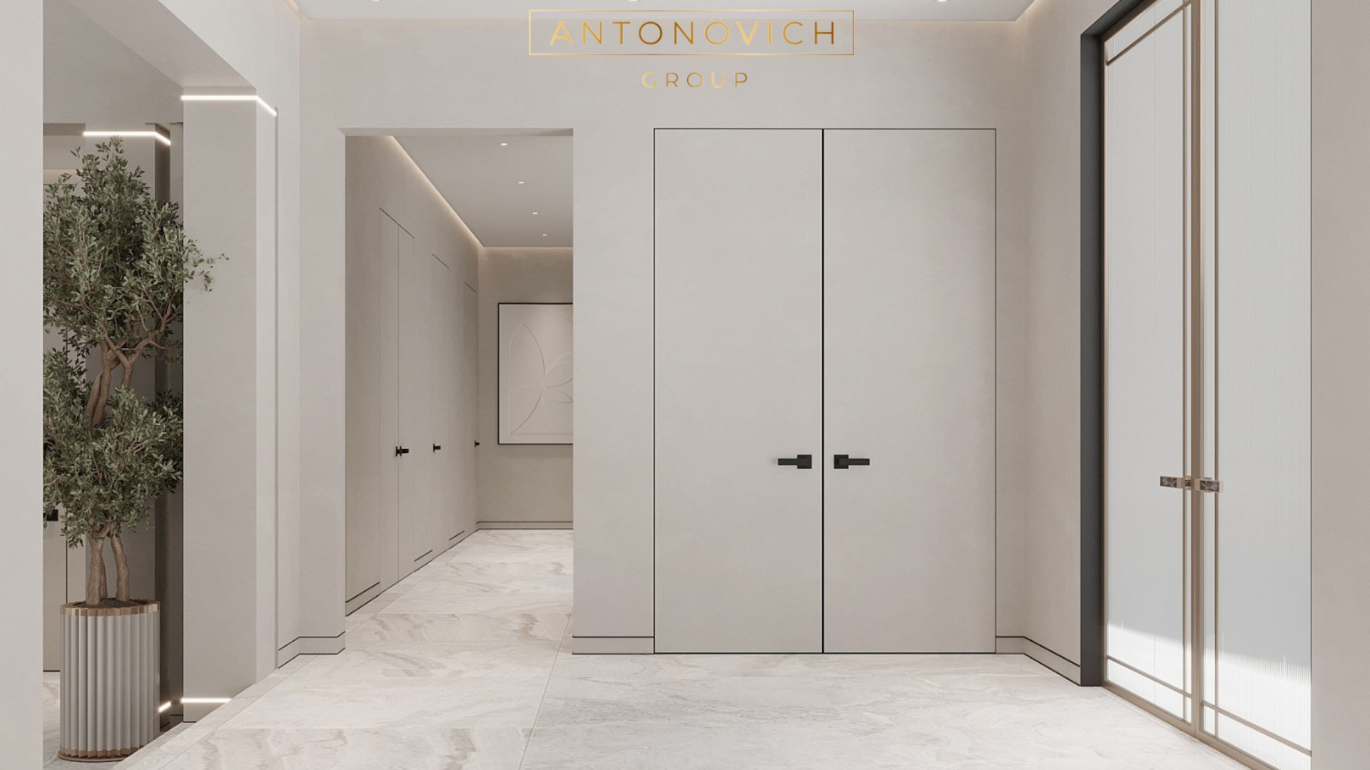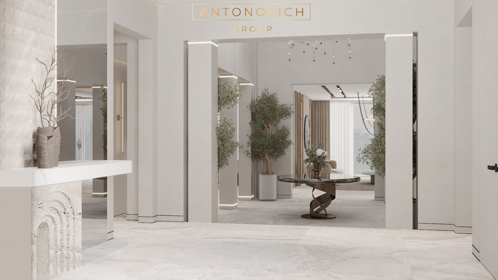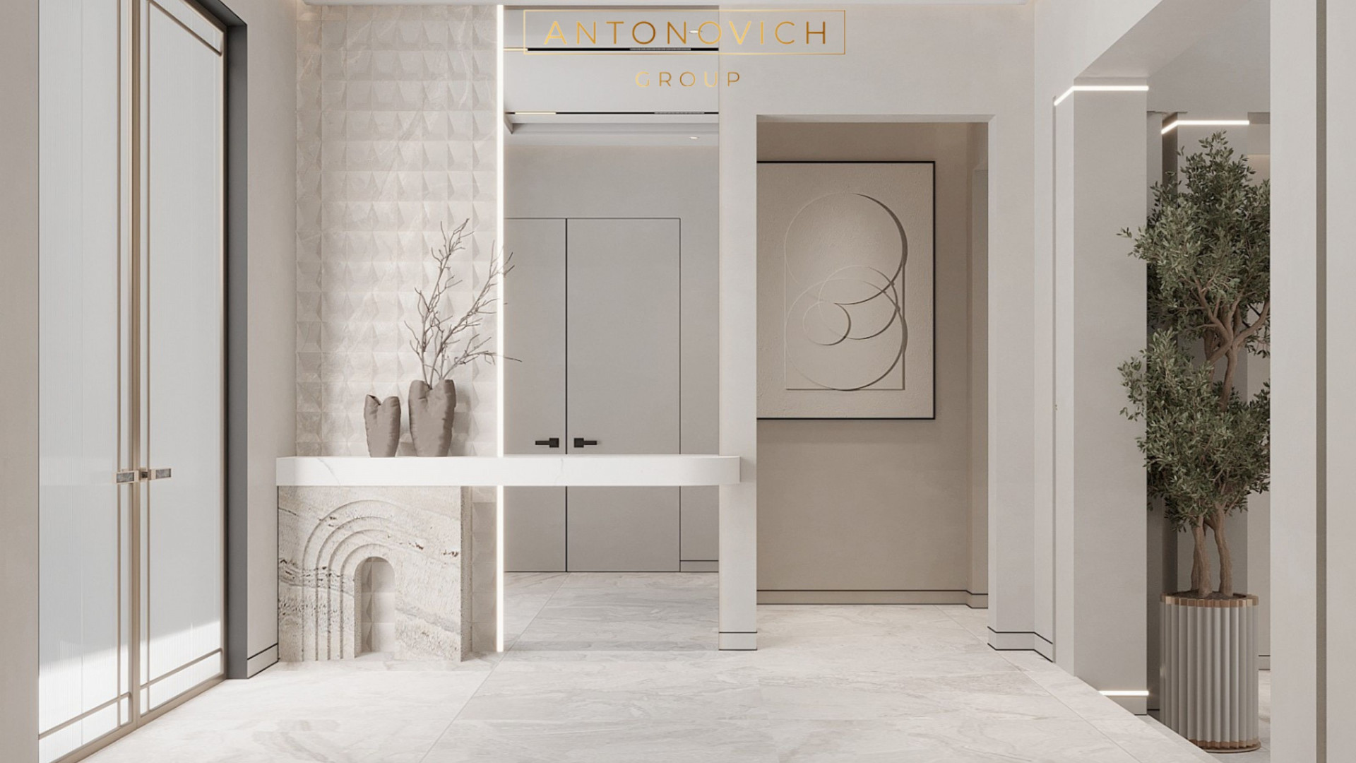 Antonovich Group's expertise in interior design luxury shines through in every aspect of the foyer's design. From the selection of exquisite materials to the placement of bespoke furnishings from the online furniture showroom, every detail is meticulously curated to evoke a sense of opulence and refinement. The modern aesthetic is reflected in sleek lines, minimalist decor, and luxurious finishes, creating a space that is as inviting as it is impressive.