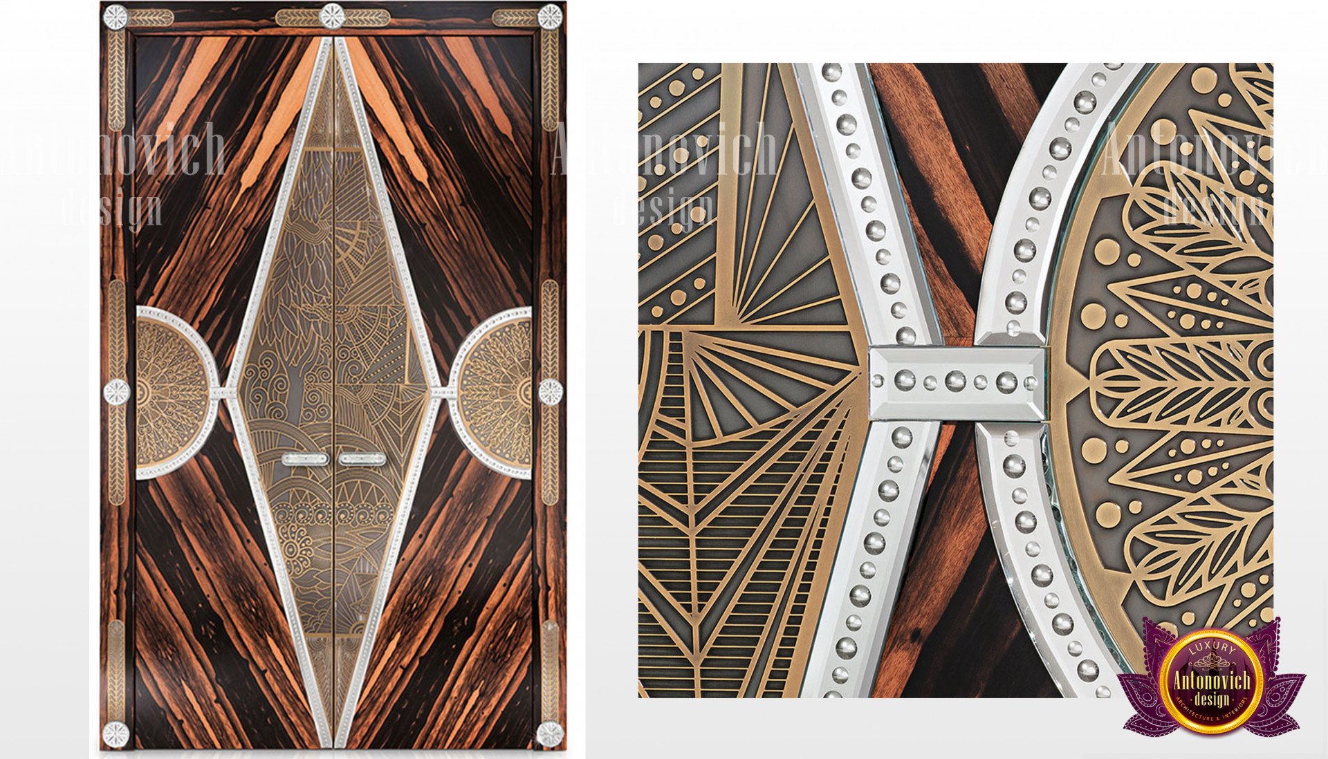 - Wood: Typically, wood and timber have been the most common manufactured doors that we create. It is easy to decorate with damask carvings and it is also very sturdy without costing too much. You can see how classic motifs influence modern carving in our Italian style for Riyadh projects.