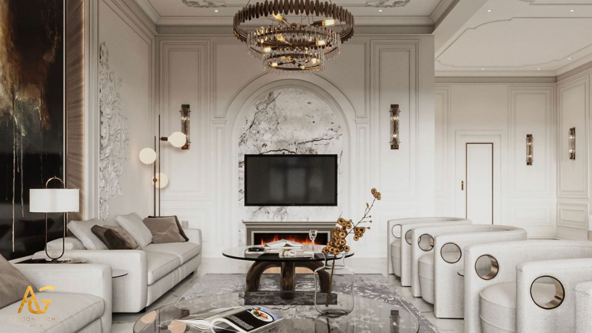 In the living rooms of these modern villas, you'll find a symphony of textures and colors that evoke a sense of warmth and sophistication. Antonovich Group's living room ideas are nothing short of inspiring. From luxurious furnishings to carefully curated artwork, every detail is a masterpiece of design. Attention to the foyer creates the first impression; see captivating foyer ideas that complement the living areas.