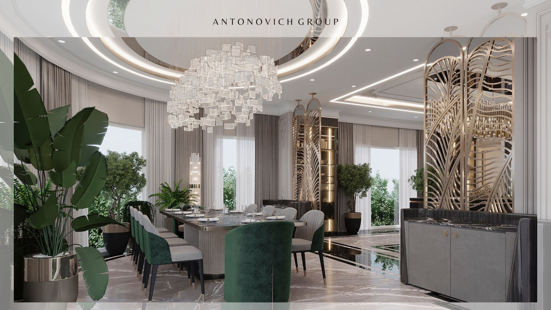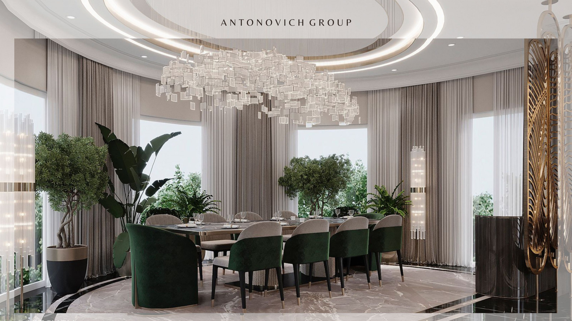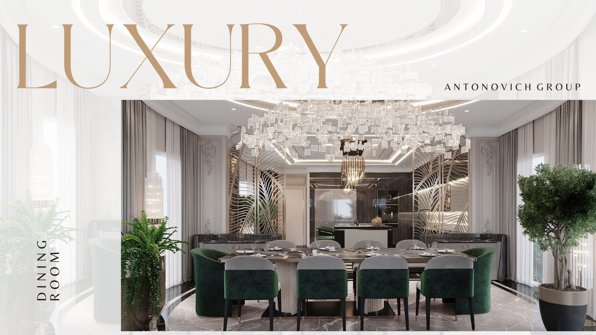 In the realm of luxury interior design, Antonovich Group once again takes center stage, unveiling an opulent narrative where emerald green reigns supreme. This blog delves into the mastery of Antonovich Group in crafting luxurious dining rooms and kitchens, highlighting the enchanting theme of emerald green, complemented by customized chandeliers and bespoke furniture. See Dubai's ultimate luxury interior design showcase for similar projects.