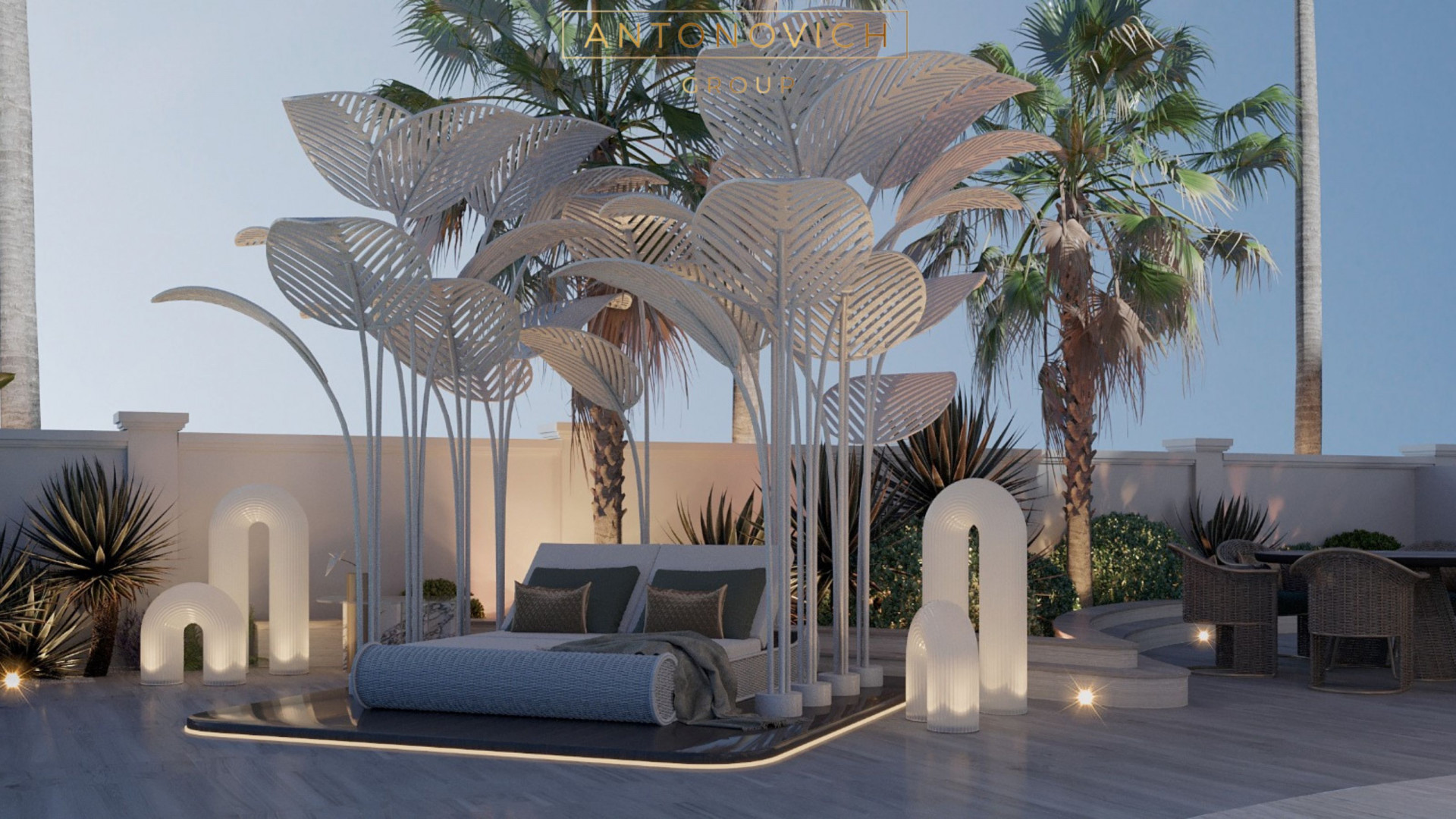The Antonovich Group has consistently set the bar high in the realm of luxurious landscaping design for villas. As one of Dubai's premier interior designers, their expertise extends beyond mere structural excellence to encompass breathtaking exterior aesthetics. Each project is meticulously crafted to blend seamlessly with its surroundings, creating a harmonious balance between architecture and nature.