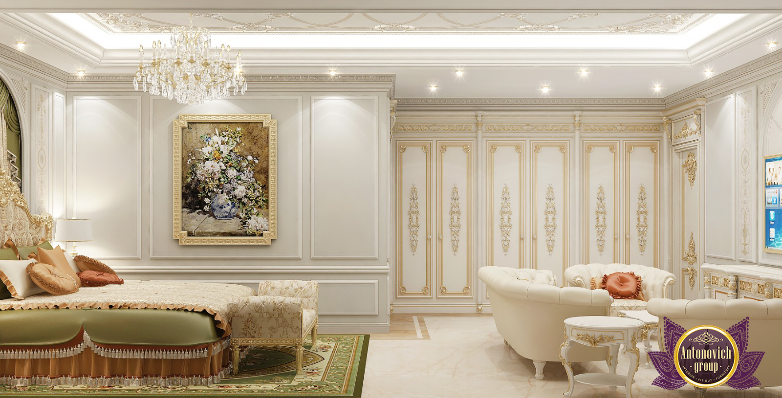 The lighting in this bedroom design is an art form in itself. Glittering chandeliers suspended from the ceiling cast a warm and inviting glow, their crystals refracting the light and creating a mesmerizing dance of illumination. The Antonovich Group understands the importance of lighting in setting the mood, and in this bedroom, the lighting design is nothing short of enchanting. Whether you're seeking a softly lit ambiance for relaxation or a radiant glow for dressing in style, the lighting arrangements cater to every need. For full interior installations, a fit out service in Dubai can ensure lighting and finishes work together.