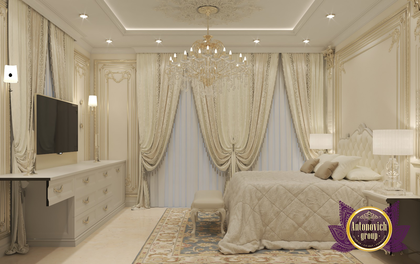 Complementing the exquisite beds are the nightstands that exude an air of sophistication. These nightstands are more than just functional pieces; they are companions to the bed, reflecting the same opulence in their design. Crafted with a keen eye for detail, they often feature rich wood finishes, intricate inlays, and decadent hardware that elevate their status from furniture to art. Wardrobes by The Antonovich Group redefine storage solutions in the luxury classic bedroom. These wardrobes are not merely places to keep clothing; they are stunning showcases of craftsmanship. Featuring intricate woodwork, elegant glass panels, and thoughtful interior layouts, these wardrobes blend seamlessly with the overall design while providing ample storage space. To coordinate window treatments, consider silk curtains for elegant luxury.
