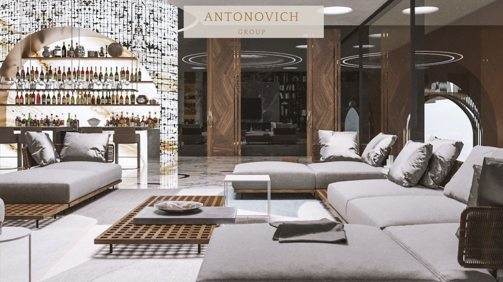 As we conclude our exploration of the spacious living room interior design with a luxurious bar counter at Dubai Islands, Dubai, Antonovich Group's signature style becomes apparent. The marriage of luxury and functionality, the meticulous attention to detail, and the integration of the latest trends are all hallmarks of Antonovich Group's expertise.