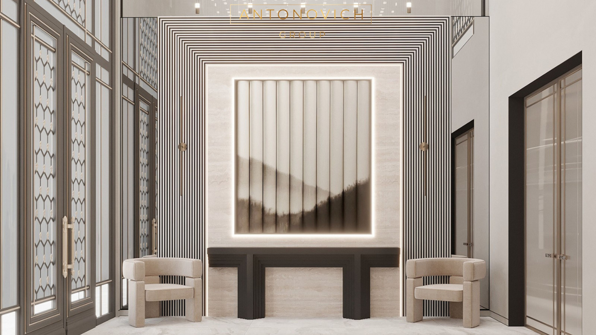 Every detail of the indoor porch design reflects the meticulous craftsmanship and attention to detail synonymous with Antonovich Group. From the choice of premium materials to the integration of smart technologies, every element is curated to enhance the living experience of residents, extending even to the luxurious dining room interior.