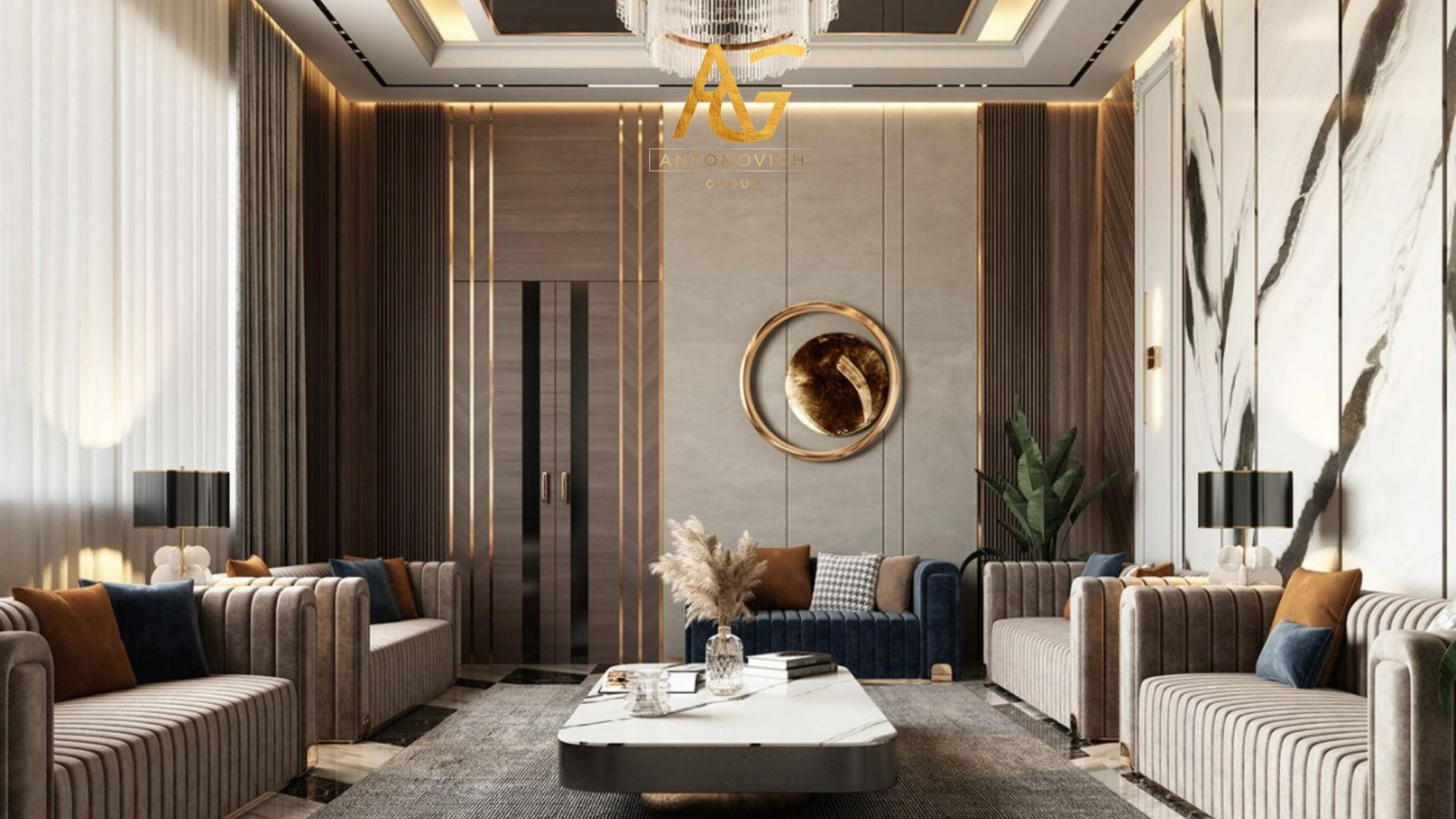 What sets Antonovich Group apart is their holistic approach to design. Their interiors are not just visually stunning; they are practical, functional, and deeply personalized. Every element, from home furniture stores in Dubai and furniture selection to lighting design, is meticulously considered, resulting in interiors that not only look beautiful but also enhance the quality of life for the occupants. Signature pieces and focal lighting, such as crystal chandeliers, are used to define mood and space.
