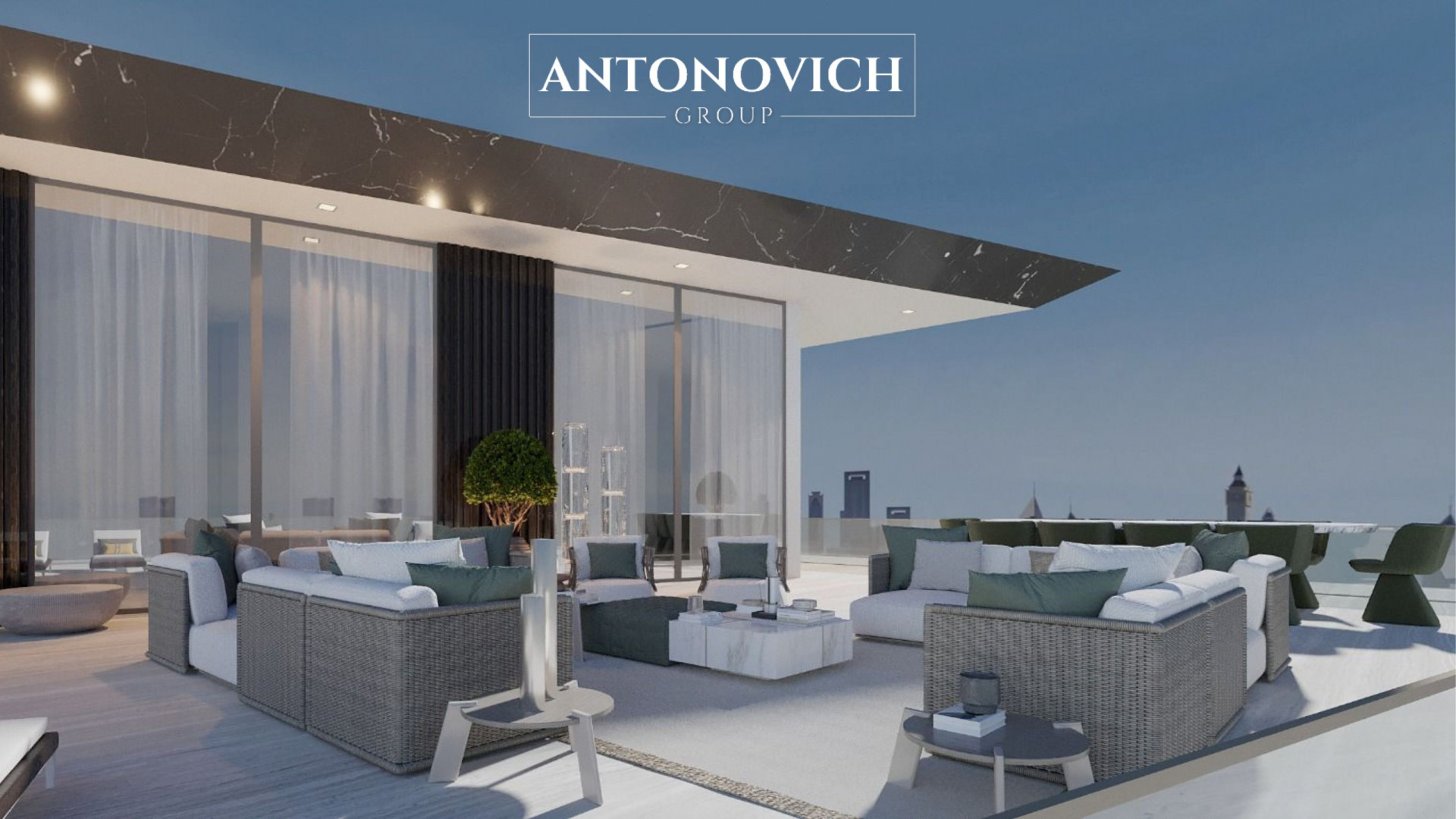 Antonovich Group’s roof deck swimming pool design with a luxurious sitting area for a grand villa by the beach in Dubai is a testament to their ability to create extraordinary living spaces. Their attention to detail, use of high-quality materials, and innovative design solutions make them a leader among the top interior design companies.