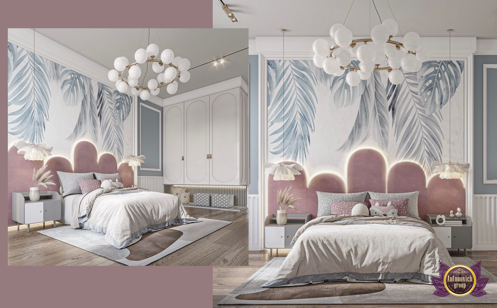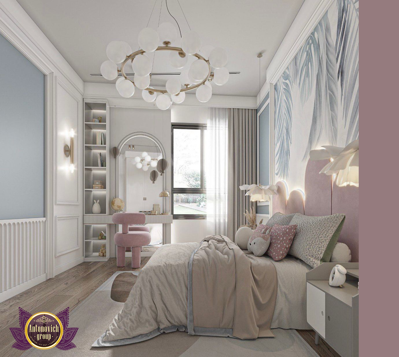 The soft pink bedroom interior strikes a perfect balance between opulence and simplicity. Lavish chandeliers with delicate crystal accents cast a warm and inviting glow, while maintaining an air of sophistication. The Antonovich Group's design philosophy revolves around creating spaces that are rich in visual appeal without overwhelming the senses. In Dubai projects such as their stylish villa design, this philosophy is evident. This bedroom design in Dubai exemplifies their approach, offering a refined aesthetic that exudes luxury in every detail.