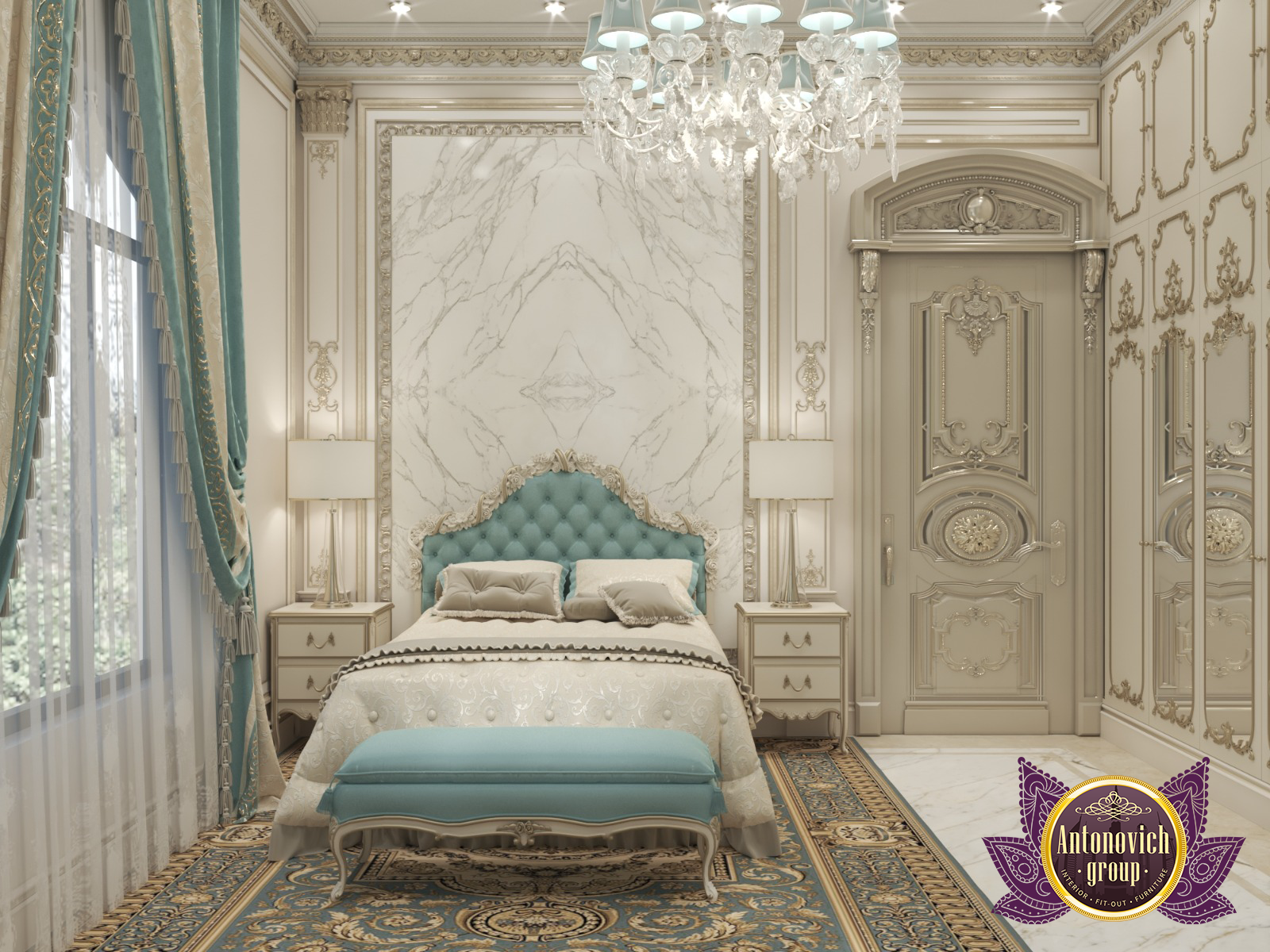 Conversely, green, with its myriad shades reminiscent of lush forests and serene meadows, brings an element of freshness and calmness into the bedroom interior decor. Imagine walls painted in soft sage or rich emerald, wrapping you in a cocoon of relaxation. Verdant textiles, such as plush velvet curtains or luxuriously textured bedspread, evoke the soothing embrace of nature, inviting you to unwind and rejuvenate. The calming influence of green not only creates a harmonious backdrop but also serves as a gentle reminder of the restorative power of the natural world. These color choices reflect principles found in modern aesthetic bedrooms. When these two elements intertwine, a mesmerizing synergy emerges. Imagine a sumptuous gold-framed mirror against a backdrop of muted olive walls—a combination that is both striking and serene. The play of light on the reflective surface amplifies the room's depth, while the green envelops the space in a sense of calm. They work equally well in city settings too — see how Dubai apartment interiors use color and texture. Similarly, a decadent gold chandelier suspended from a ceiling painted in a muted celadon hue marries opulence with subtlety, casting a golden glow that dances off the walls. The result is a sensory experience that transports you to a realm of opulent tranquility.