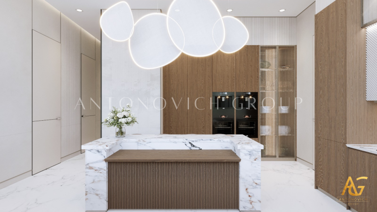 As a pioneer in luxury mansion interior designs, Antonovich Group understands the importance of personalization. Our team collaborates closely with clients to create kitchen spaces that reflect their lifestyle and taste. We coordinate kitchen and bathroom schemes for cohesive homes, including cozy bathroom designs. Whether designing for a contemporary penthouse, a lavish villa, or a high-end apartment, our commitment to excellence ensures a flawless execution of every project. We coordinate kitchen schemes with ultra-luxury villa design and other architectural elements.