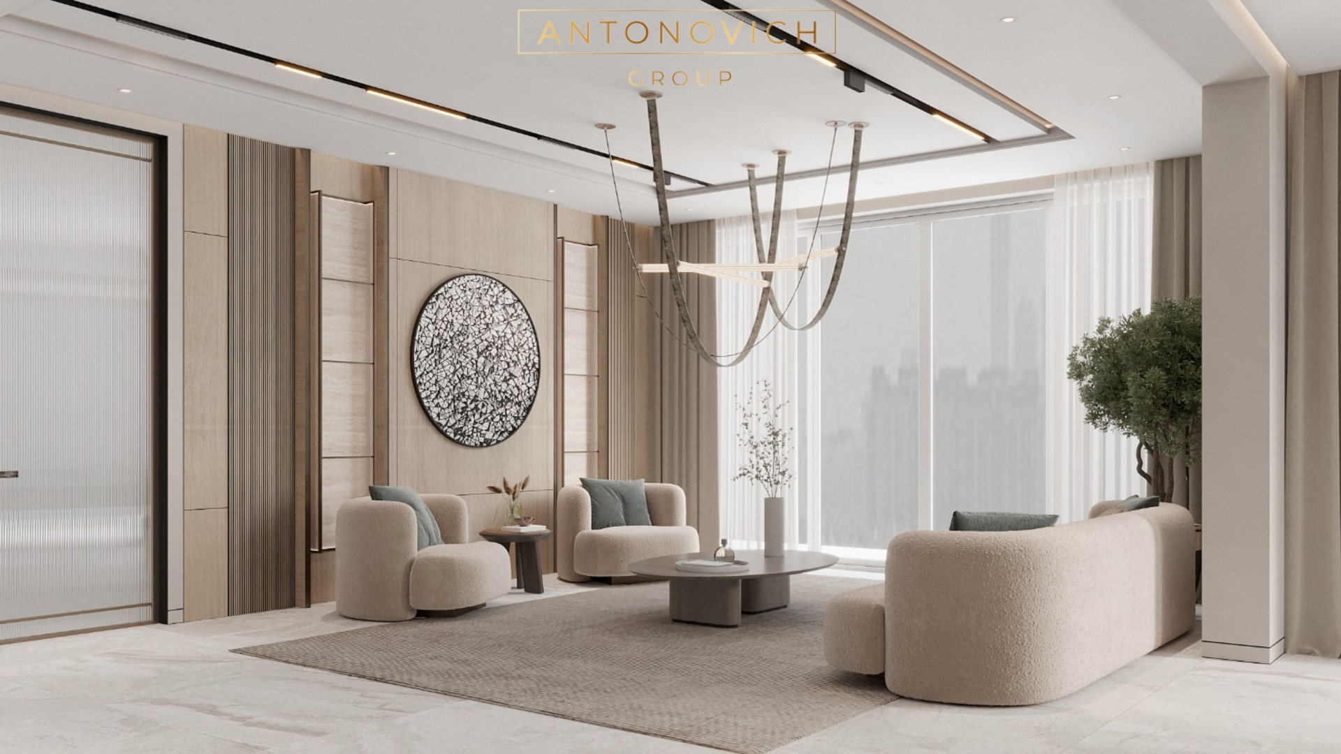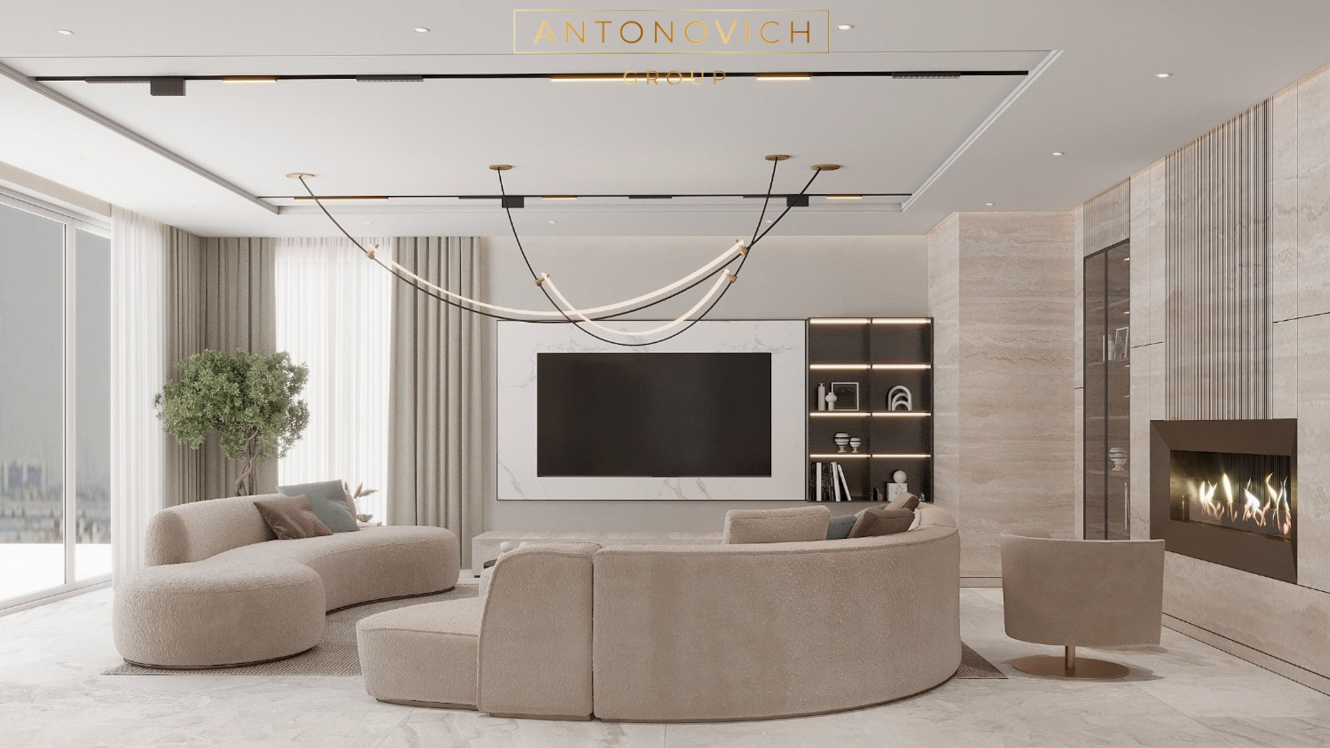 The fit-out of the living room is a testament to Antonovich Group's commitment to excellence. With a keen eye for detail and a dedication to quality craftsmanship, their team has transformed this space into a sanctuary of modern luxury. From the finest materials to the latest technology such as Gira E22 smart switches, no expense has been spared in ensuring that every aspect of the fit-out meets the highest standards of excellence.