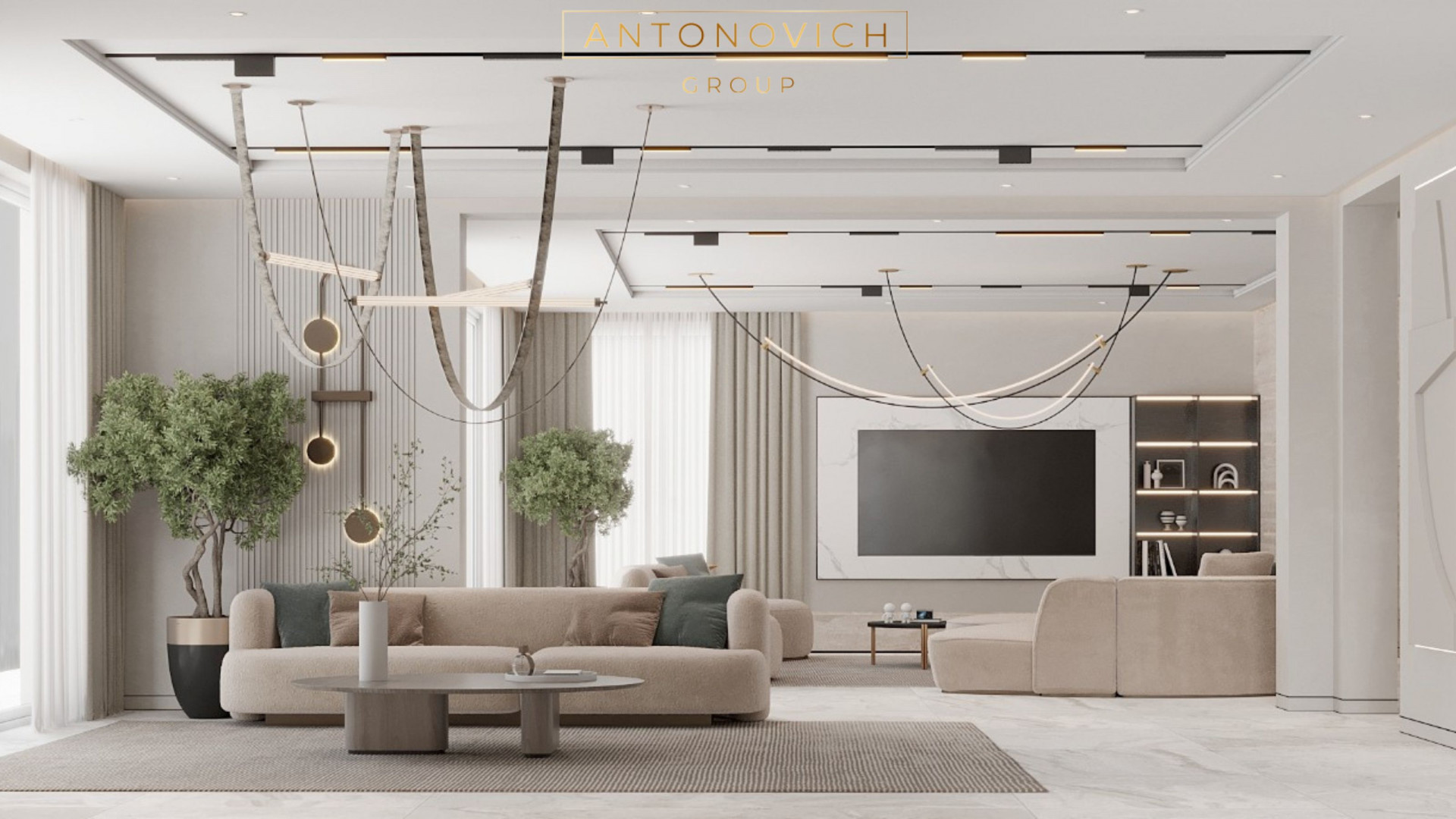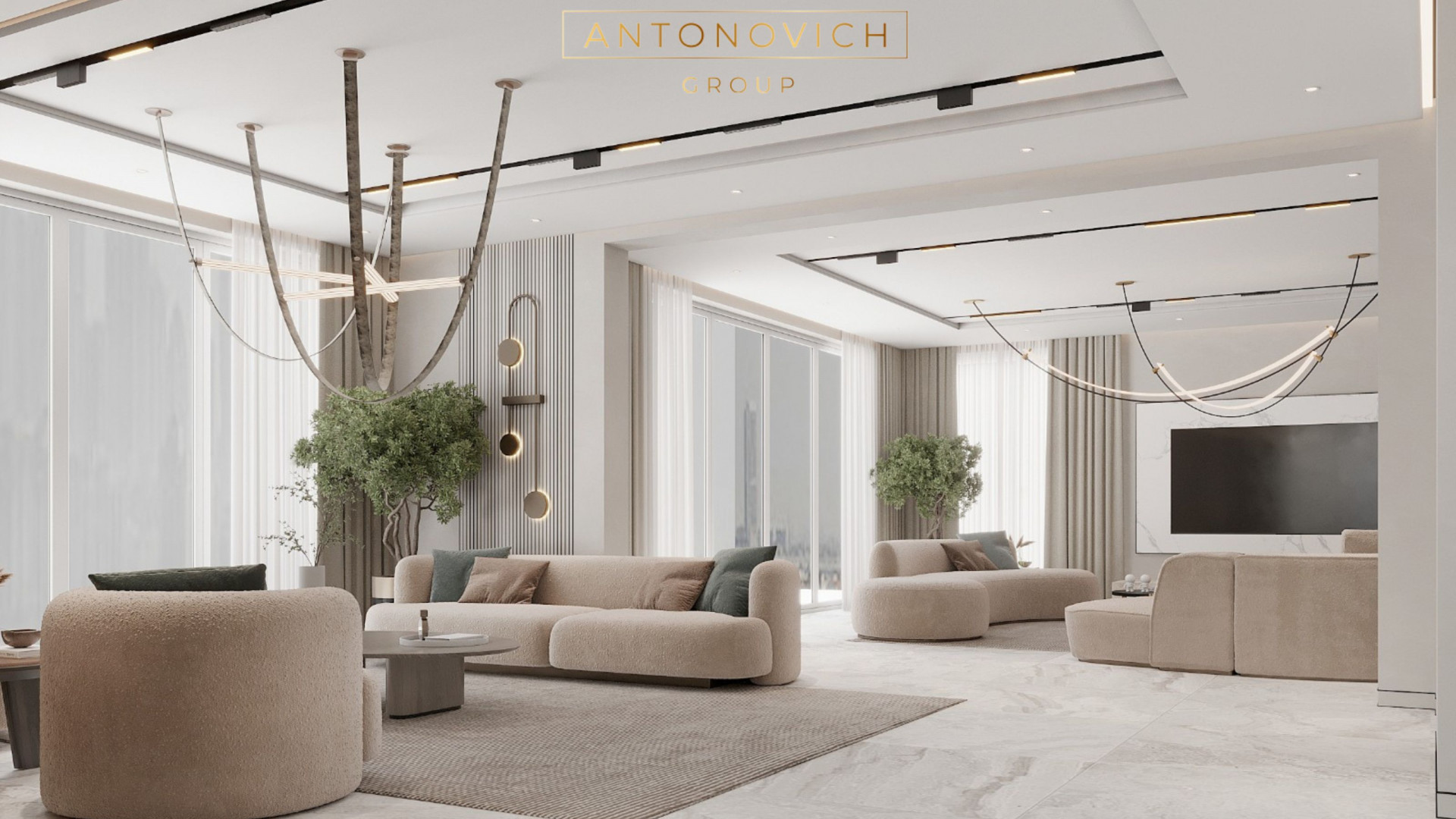 At the heart of this lavish residence lies the living room, where comfort meets style in perfect harmony. Antonovich Group has spared no expense in ensuring that every detail of the living room interior design exudes luxury and refinement. From sumptuous furnishings and the Longhi aluminium chic collection to bespoke lighting fixtures, every element has been carefully curated to create a space that is both inviting and visually stunning.