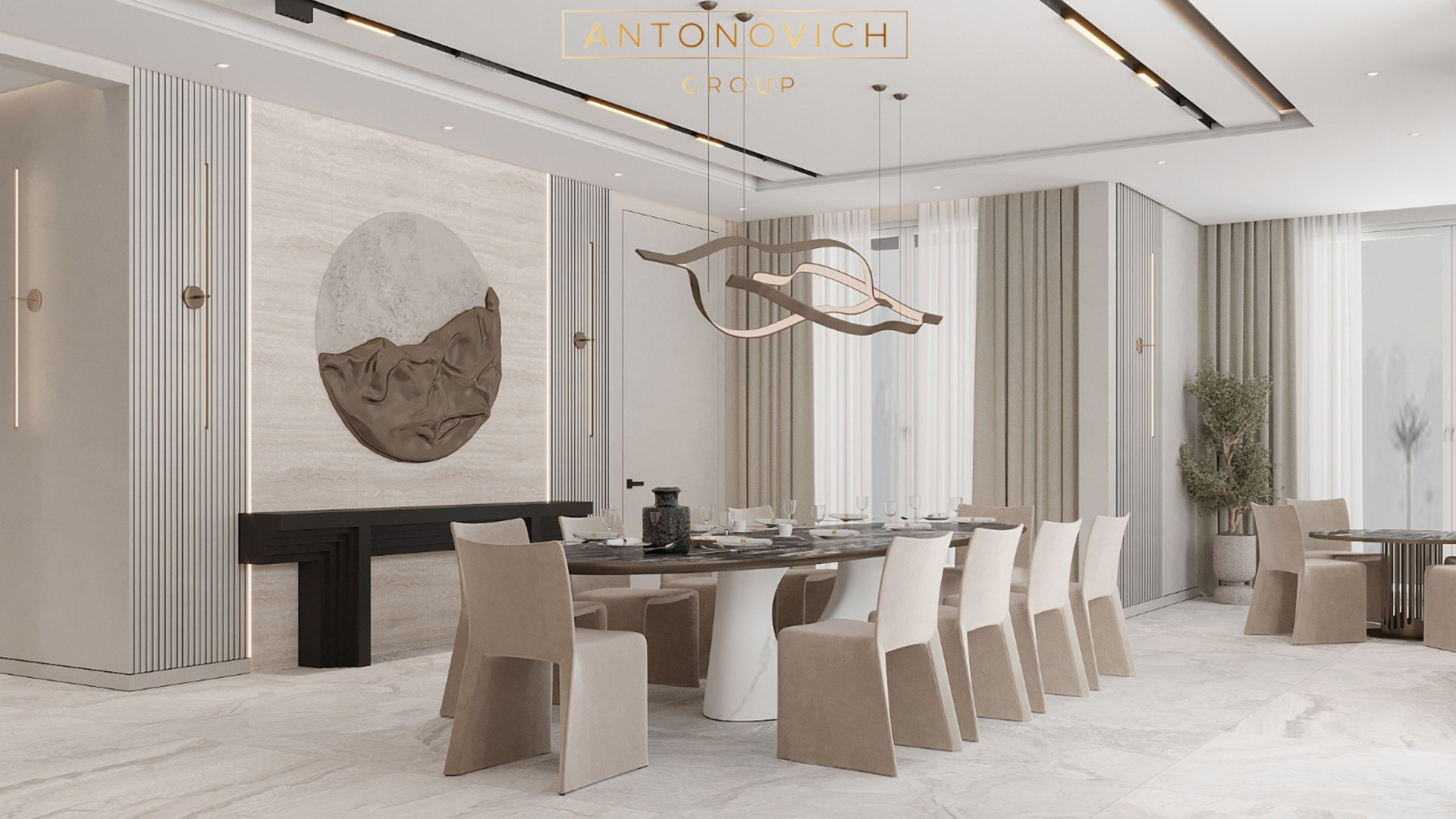 The dining room, often considered the heart of the home, deserves special attention. Antonovich Group understands this sentiment and approaches each project with a unique vision, tailored to the client's preferences and lifestyle. They can include customized luxury furniture to complete the look.