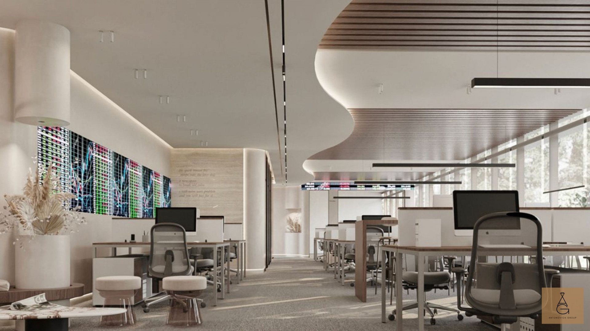 Modern offices are incomplete without cutting-edge technology. Antonovich Group places a strong emphasis on integrating technology seamlessly into the office environment. This includes state-of-the-art audiovisual equipment, smart lighting, and advanced communication systems, all designed to enhance the efficiency and functionality of the workspace. These systems are adaptable to retail fit-outs, including jewelry boutique interiors.