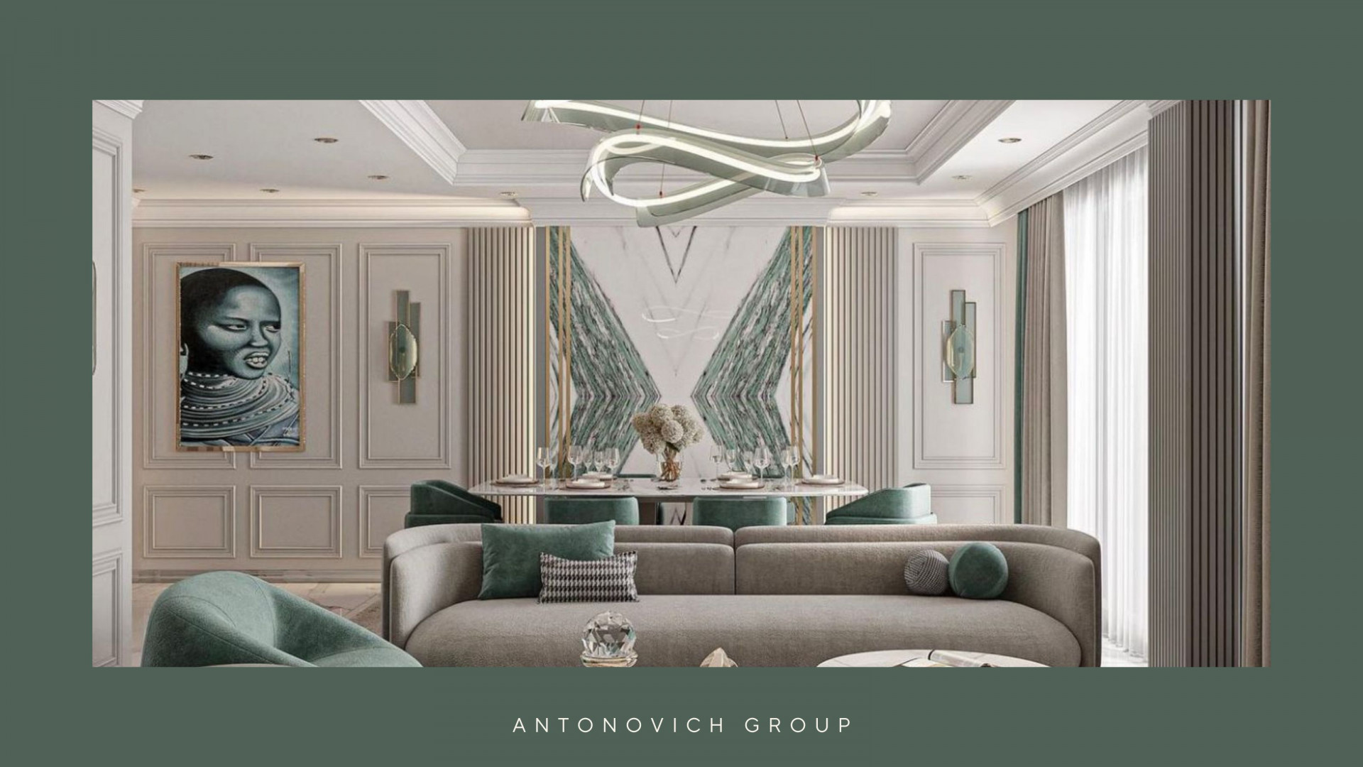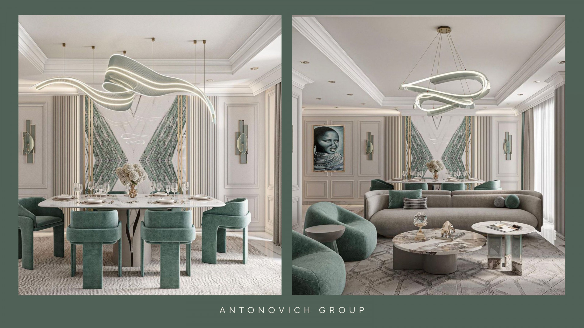 The Antonovich Group's living room designs include harmonious color movement that captivates the senses. Each color is carefully picked to convey the intended atmosphere, whether it's a palette of rich, regal colours or a more modest blend of neutrals. Their palettes can rival projects by USA interior designers NYC.