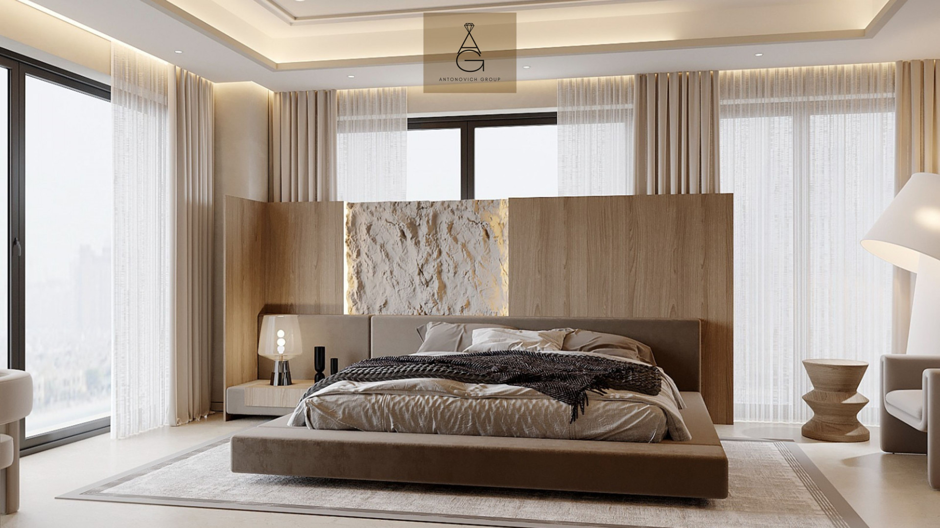 Dubai Desert Palette: Antonovich Group draws inspiration from Dubai's unique desert landscape, incorporating earthy tones and natural textures to create bedrooms that reflect the city's essence.