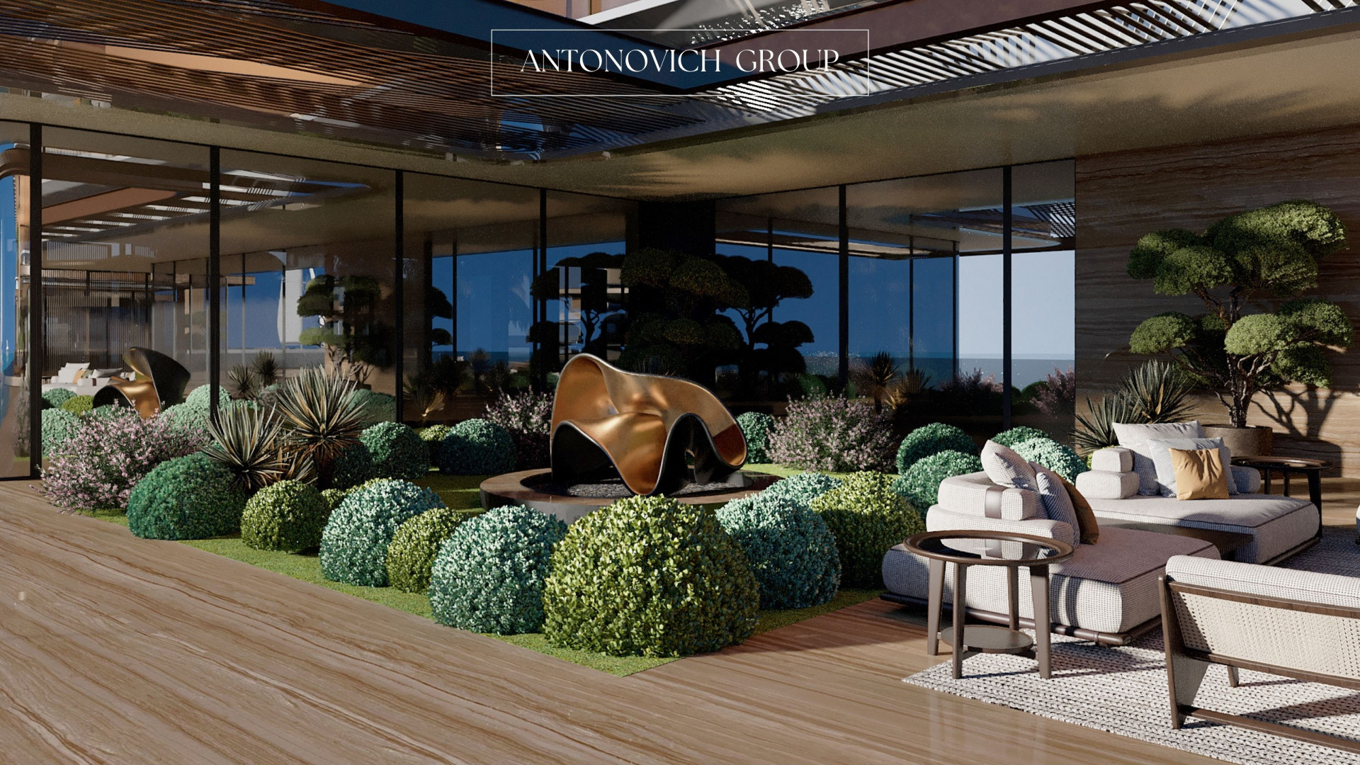 Antonovich Group's meticulous attention to detail extends to the landscaping, where lush greenery and carefully curated flora complement the villa's architectural grandeur. The exterior spaces are designed not just for aesthetics but to offer a sensory experience that connects residents with nature.