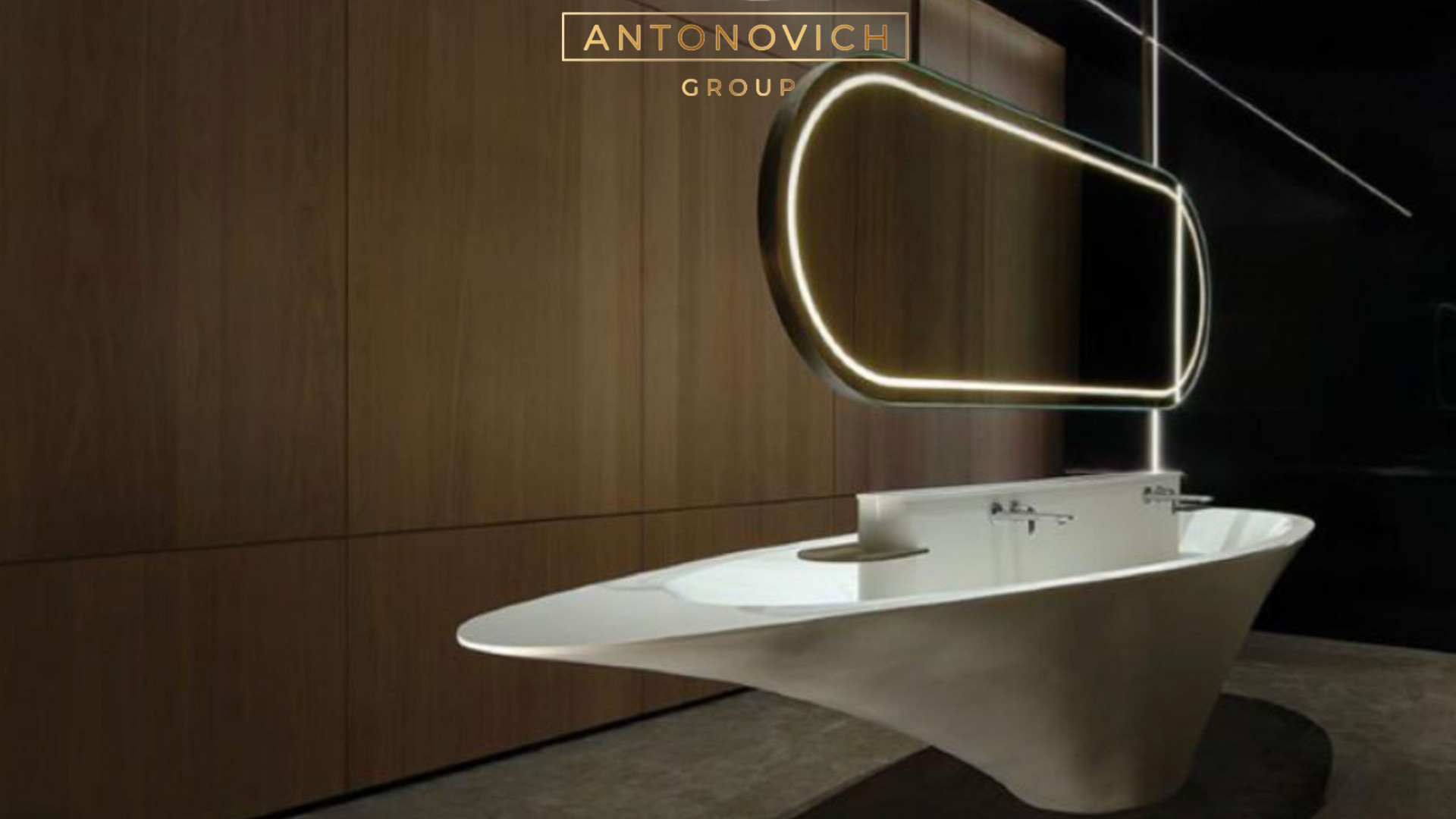 Antonovich Group's approach to sanitary solutions in spacious bathrooms is nothing short of revolutionary. They incorporate: