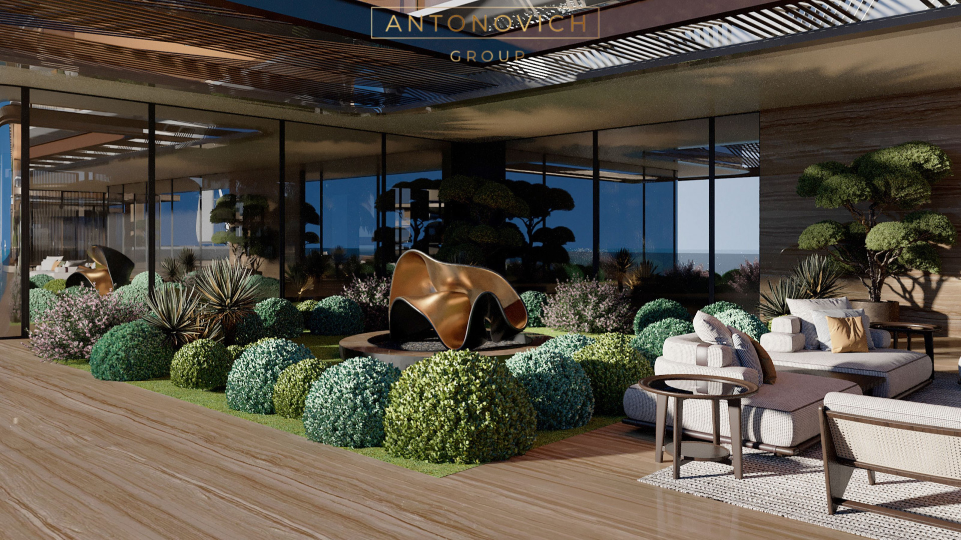 Antonovich Group's exterior design and prestigious outdoor furniture production services set the standard for luxury living on the World Islands in Dubai. With our unwavering dedication to quality and craftsmanship, we create outdoor spaces that captivate the senses and elevate the soul. See our interior design masterpieces for related inspiration. Experience the epitome of outdoor luxury with Antonovich Group.