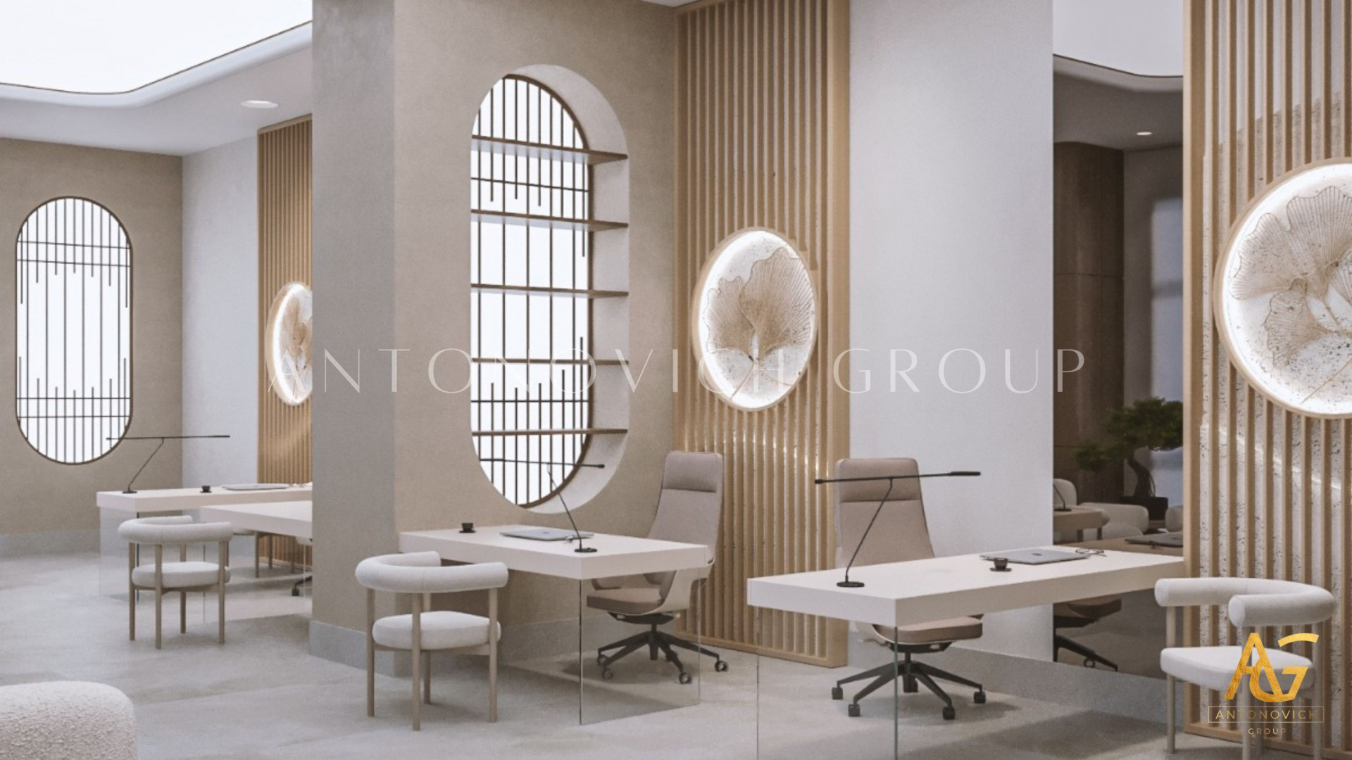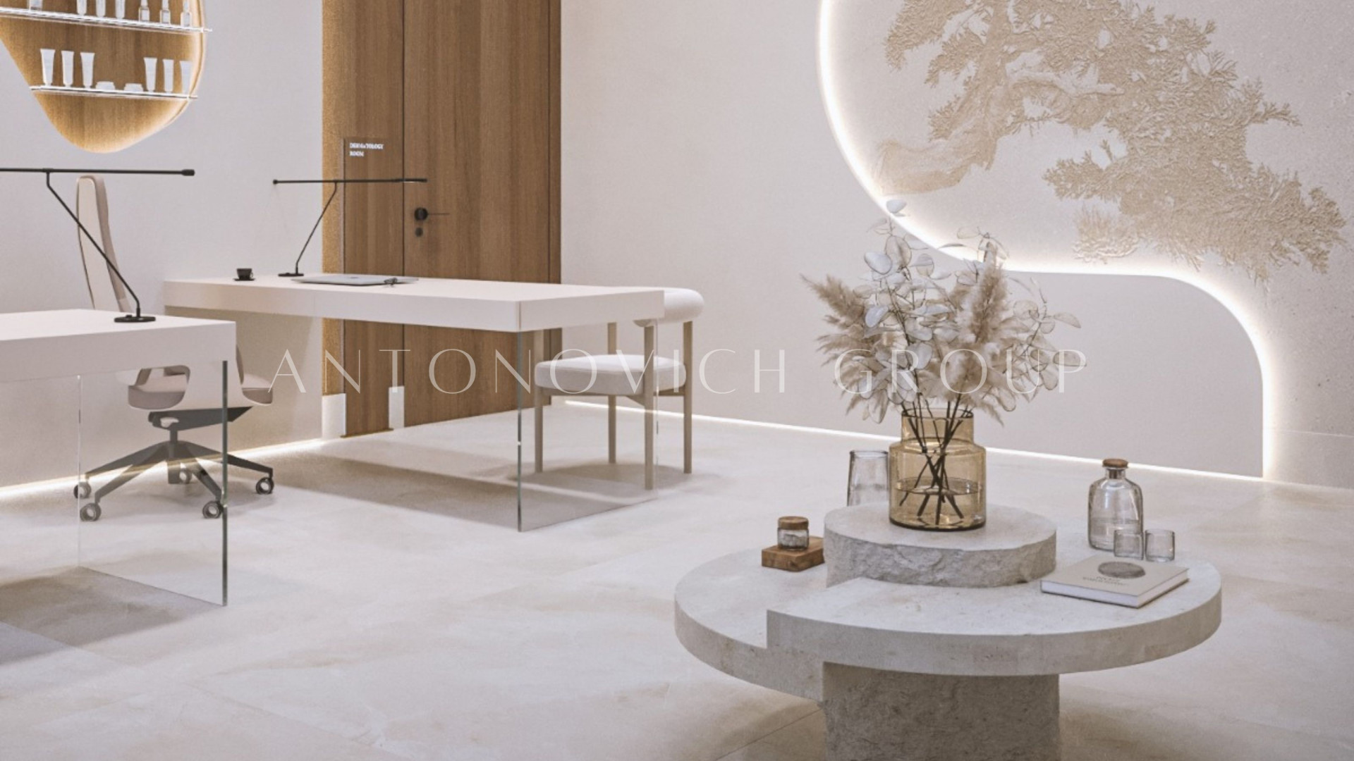 The clinic’s layout incorporates thoughtful space planning, using zones that separate consultation, treatment, and recovery areas while maintaining easy accessibility. The use of custom joinery (see the VISMARA catalog), along with modern furniture and state-of-the-art technology, highlights the unique features of Antonovich Group’s bespoke construction services, making the clinic not only a space for healthcare but a wellness retreat.