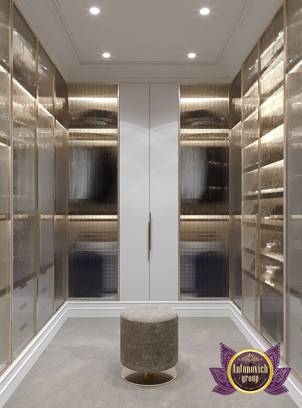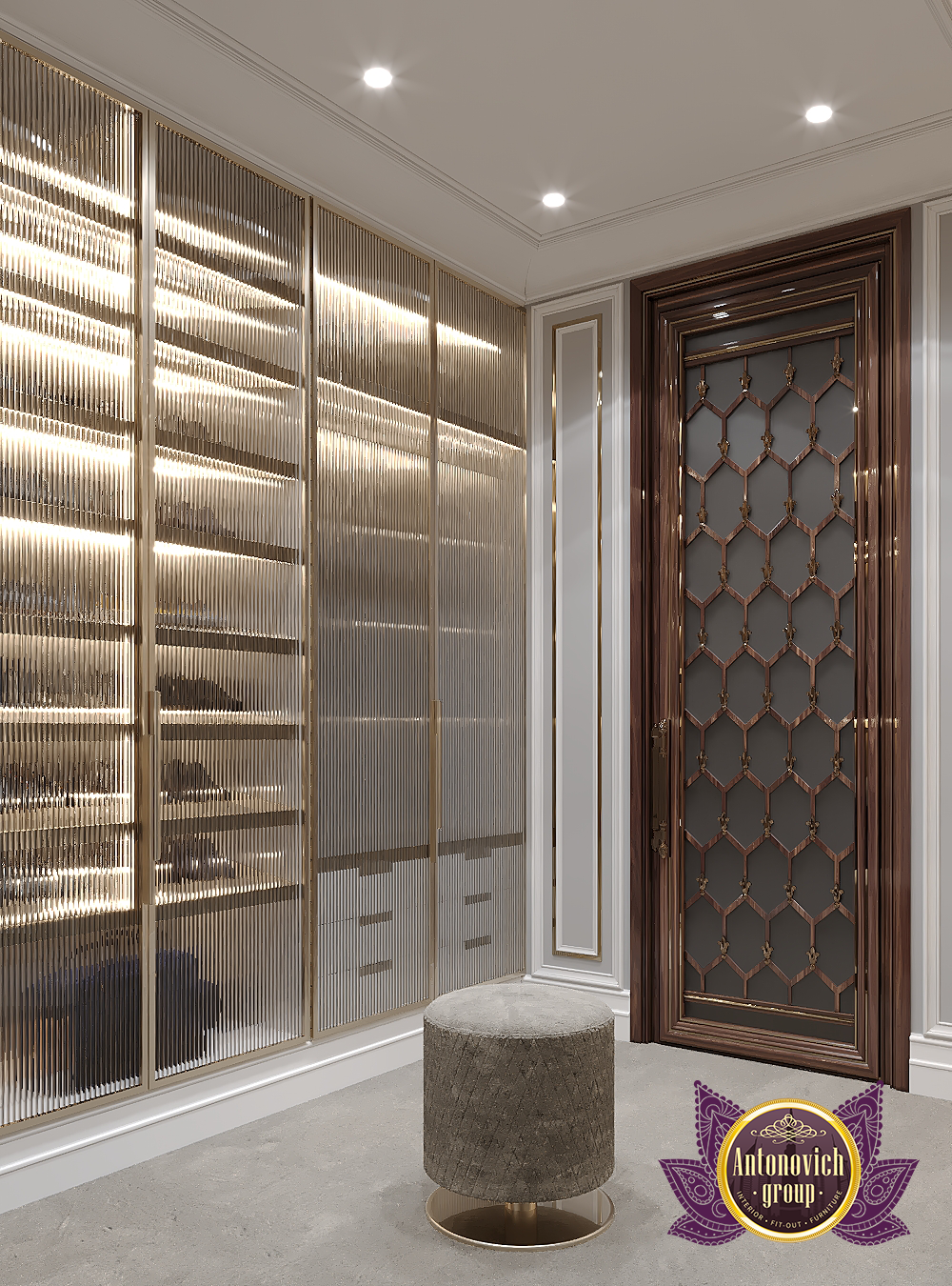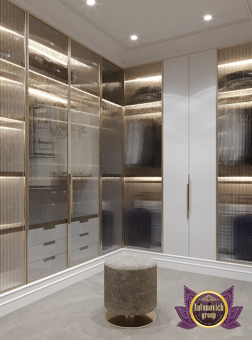 Lighting is another crucial aspect of storage and cabinet planning in a luxury dressing room. Install soft, ambient lighting to create an inviting atmosphere, as showcased in the Hermes Regency project. Ensure that the lighting fixtures are strategically placed to minimize shadows and maximize visibility within the cabinets. Illuminating the contents of the storage areas not only facilitates efficient organization but also adds a sense of grandeur to the space. While designing the storage and cabinet layout, remember to maintain a balance between open and closed storage options. Open shelves allow for easy access to frequently used items, while closed cabinets provide a clutter-free environment for storing less frequently accessed belongings. Striking the right balance ensures that functionality and aesthetics are in perfect harmony. Refer to the Antonovich Group portfolio for project examples and case studies on balanced storage solutions.