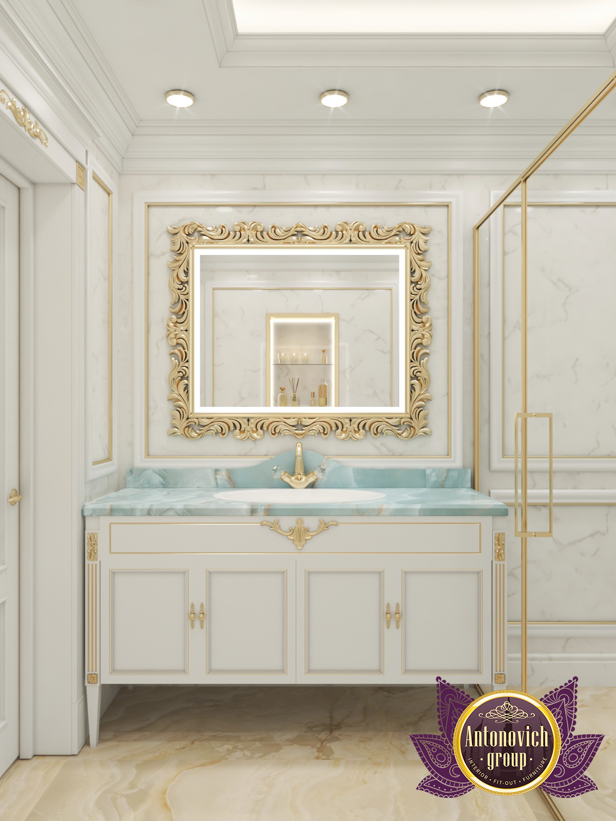 Mirrors are an inherent part of any bathroom, and their frames offer an opportunity to infuse classic accents. Opting for gilded frames brings an air of opulence that hearkens back to a bygone era of grandeur, reminiscent of palace architecture. The intricate detailing and ornate designs of gilded frames exude a sense of regal charm, casting a timeless aura over the entire space. These mirrors not only serve their functional purpose but also double as exquisite decorative pieces that reflect light and create an illusion of larger space, adding depth to the bathroom's overall aesthetic.