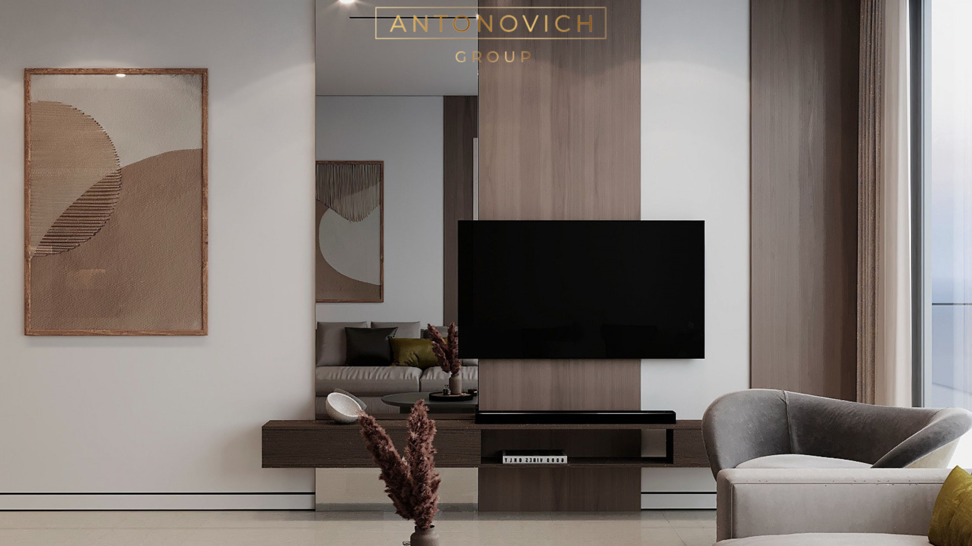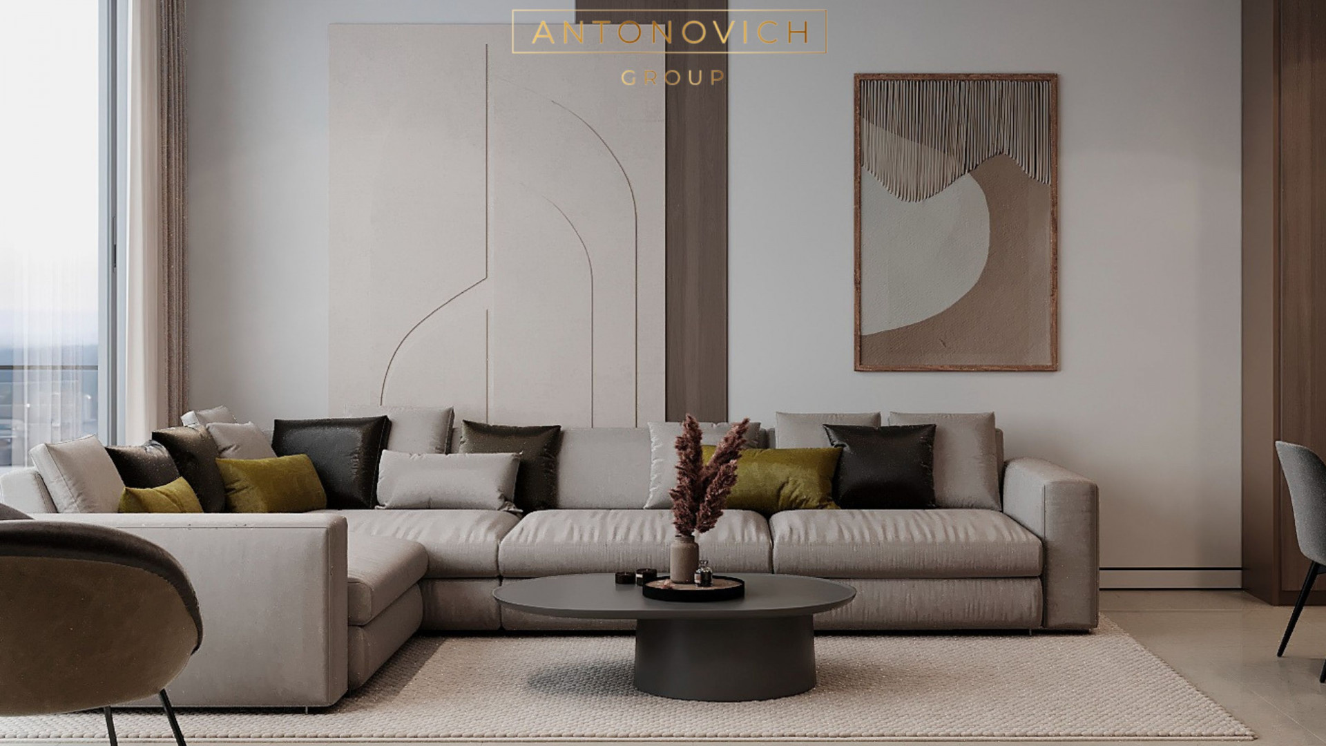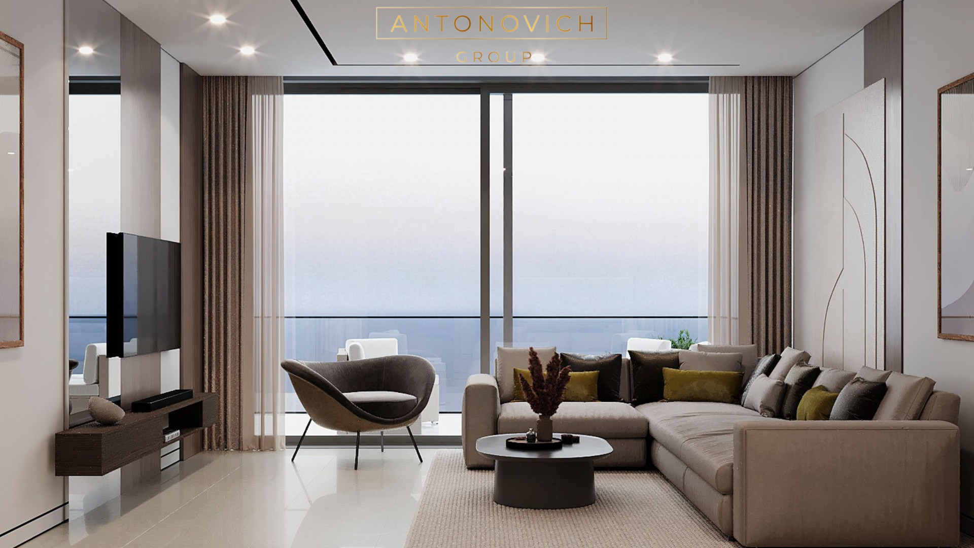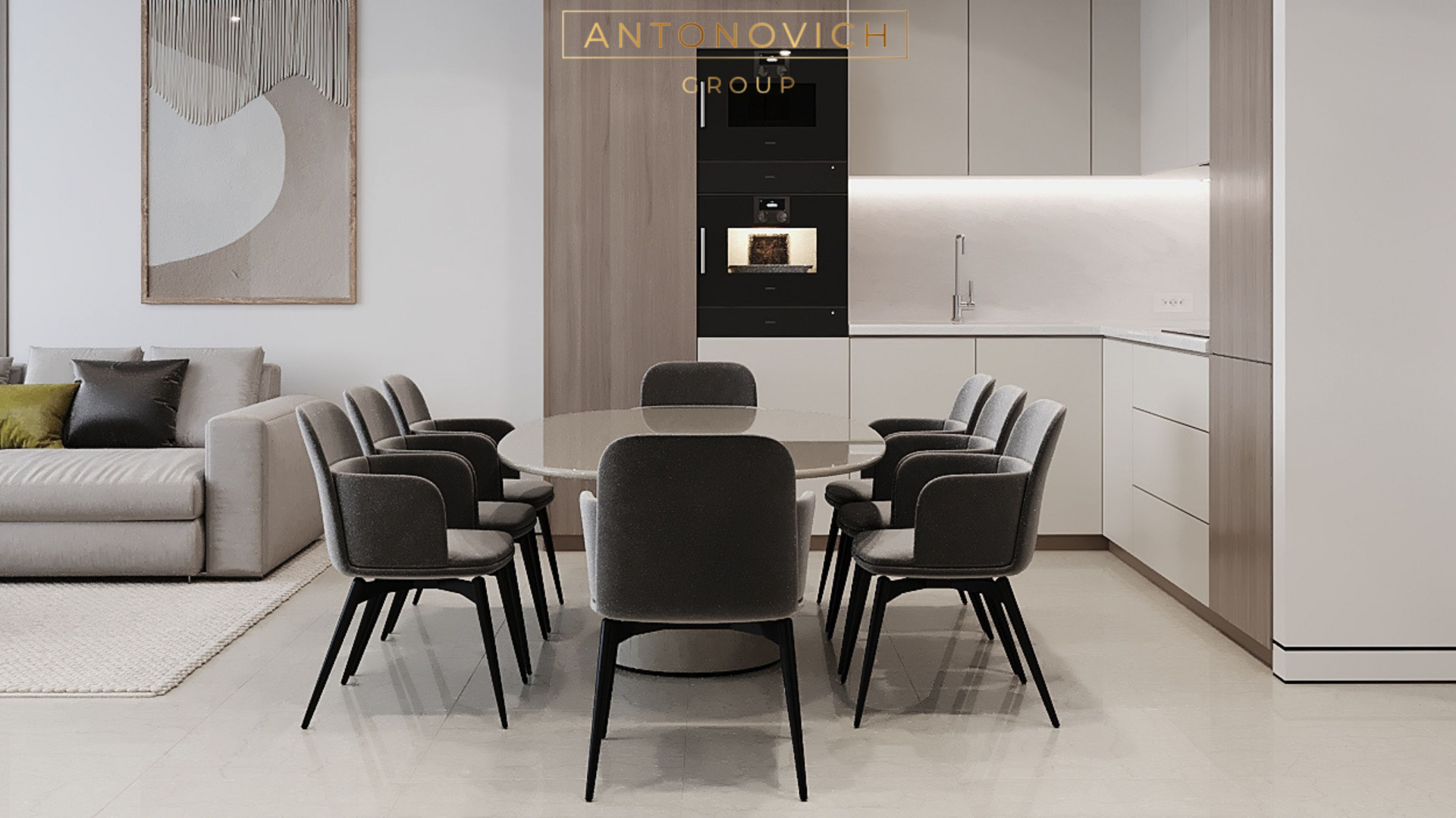 Antonovich Group's Modern Apartment Living Room Design and Fit-Out Services