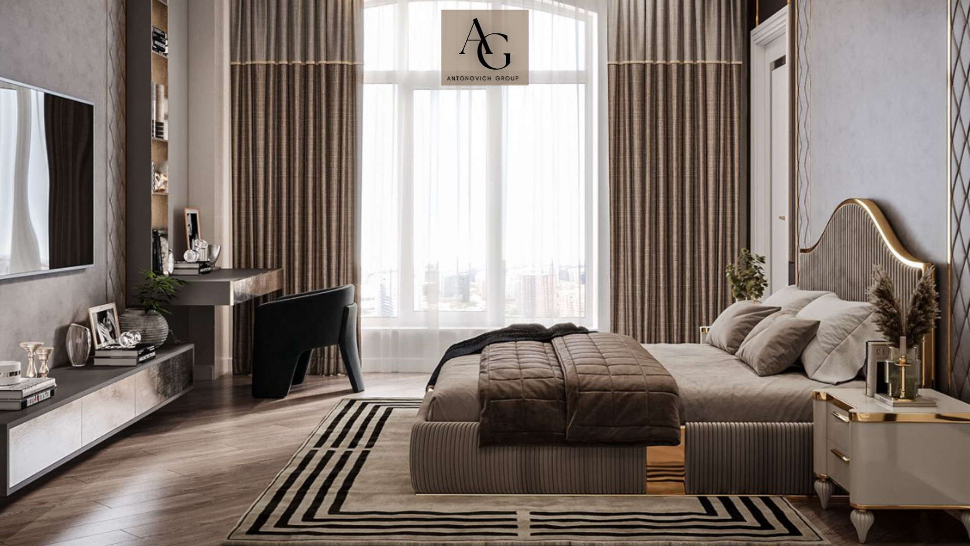 Antonovich Group's approach to luxury aesthetic bedroom interior design and fit-out is an orchestrated symphony of construction precision and design brilliance at the intersection of art and architecture. The seamless collaboration between construction and interior design companies ensures that every corner of the bedroom is meticulously crafted, marrying functionality with aesthetics to create an environment that exudes opulence and reflects some of the best designs for home.