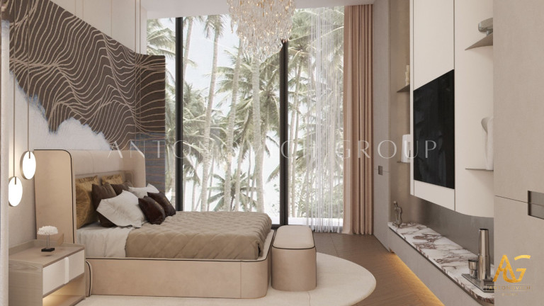 Incorporating customized crystal chandeliers and artistic wall panels into your bedroom design is a surefire way to elevate your space into a realm of unparalleled luxury. These elements not only enhance the aesthetic appeal of luxury design homes but also add value and functionality. Antonovich also designs outdoor spaces like a villa terrace design to extend living areas.