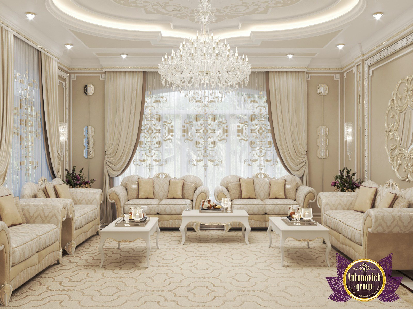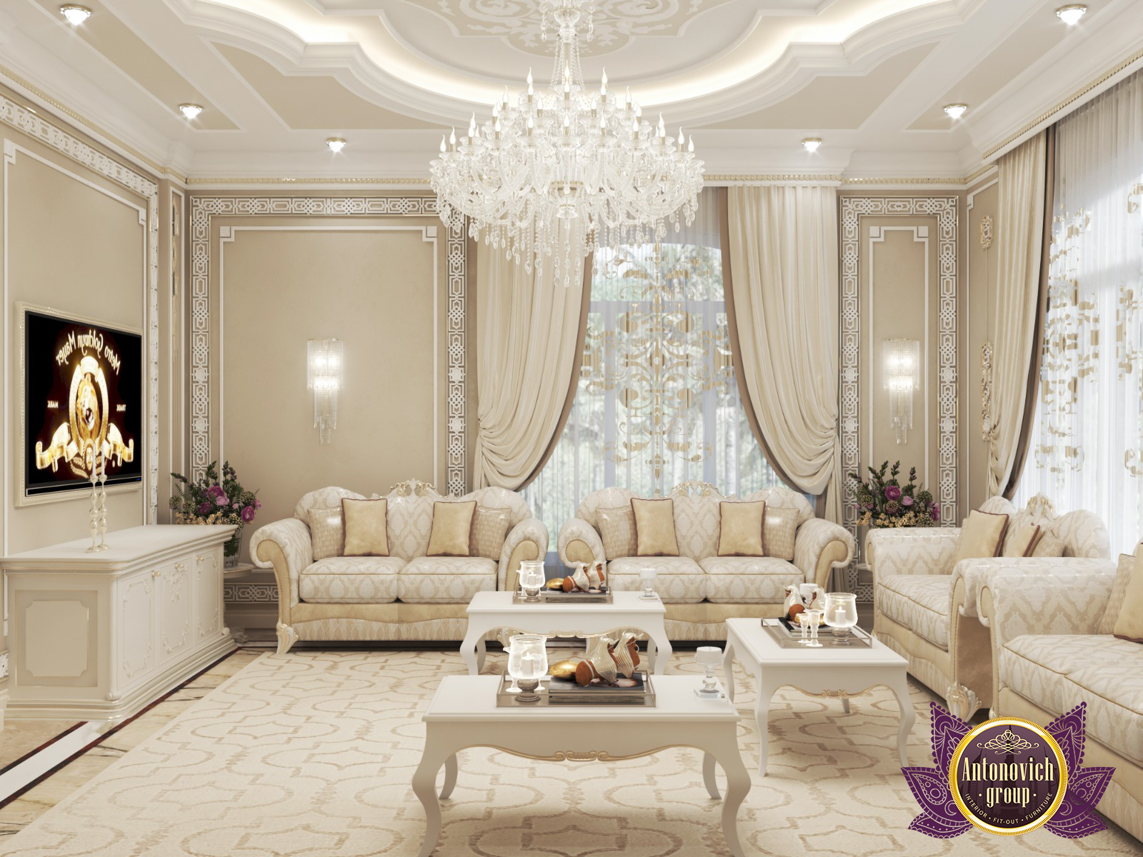 Lighting plays a crucial role in setting the mood in any interior, and in a classic theme living room, it becomes even more essential. Chandeliers with cascading crystals or vintage-inspired sconces can add a touch of grandeur to the space. Soft, warm lighting creates a cozy and intimate ambiance, perfect for unwinding after a long day. To infuse a touch of modernity into the classic gold theme, consider incorporating contemporary artwork or sculptures. You can reference majlis modern style for examples of modern-traditional contrasts that still feel cohesive. The flooring choice also plays a significant role in the overall aesthetic. Rich hardwood floors with intricate patterns or marble tiles with gold veining beautifully complement the classic gold theme. Layering the floor with area rugs in complementary tones and designs adds both comfort and visual interest.