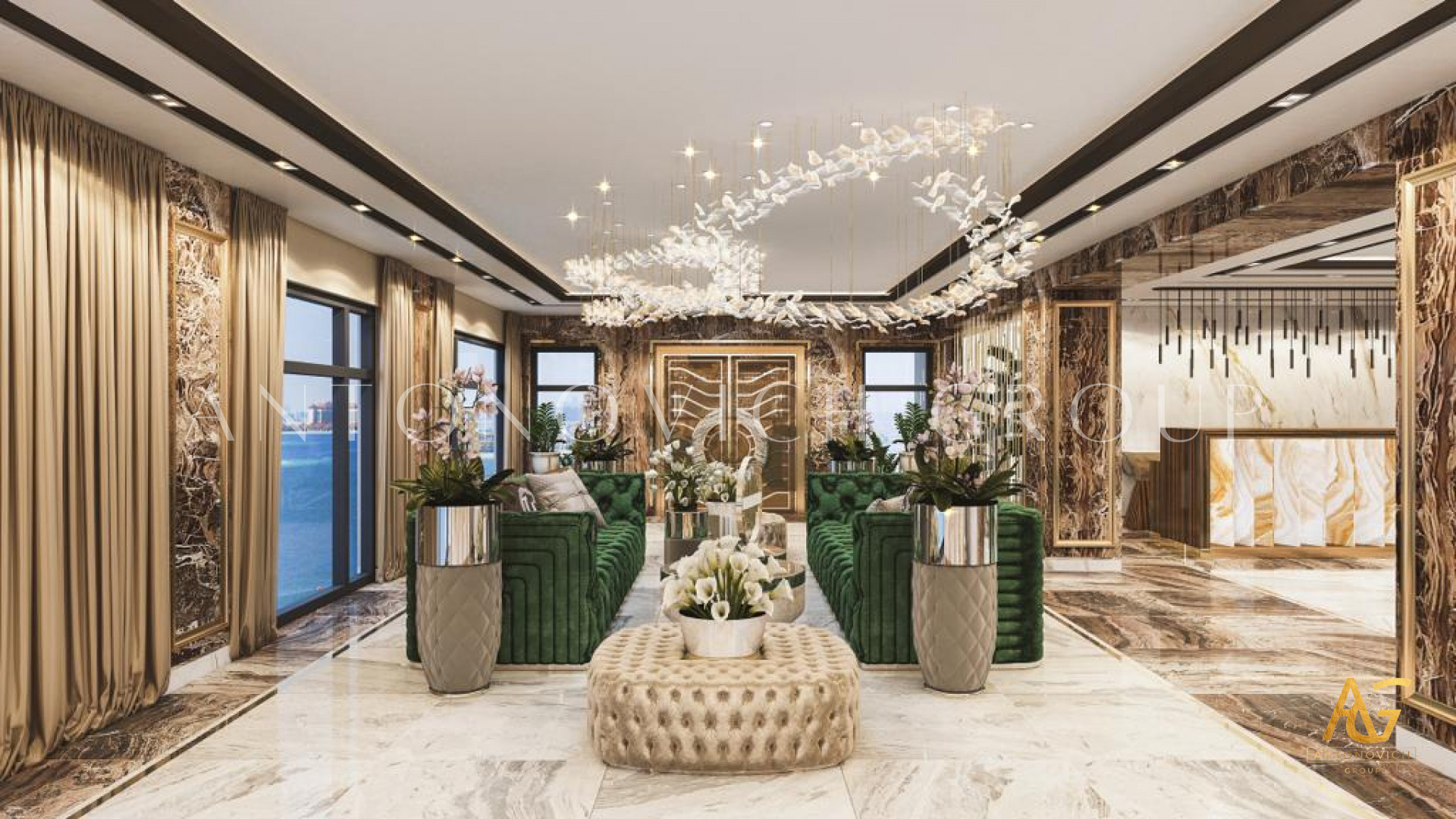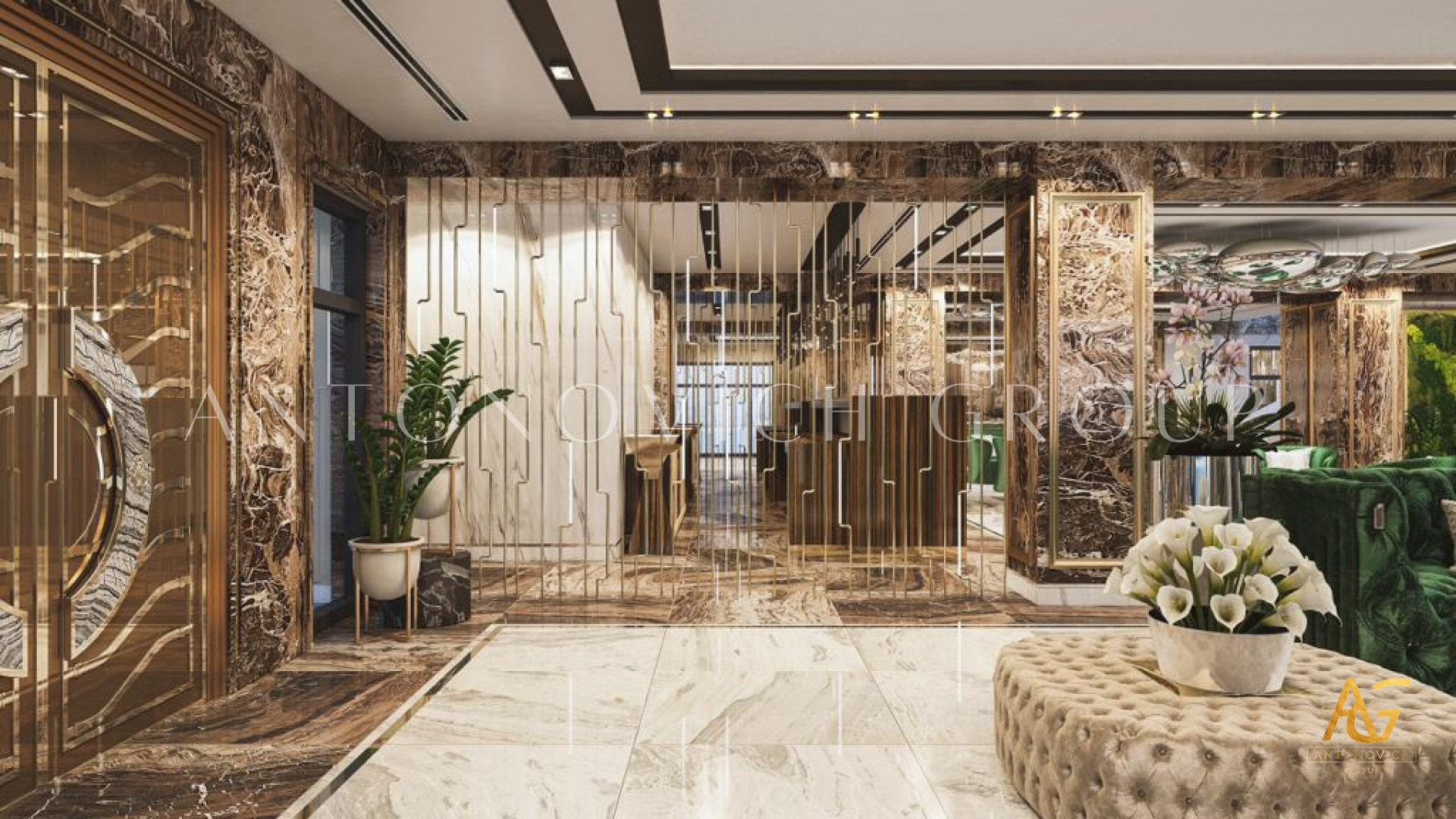Many people dream of having a soothing lobby Hotel interior design in Riyadh. Take inspiration from this stunning gold and cream decor, which was created for the neighborhoods most affluent residents! The lovely Hotel interior design in Riyadh features a spherical ceiling, which gives the chandelier a great focal point. Below it is a beautiful chair with a gold accent and chair that make this a wonderfully pleasant lobby Hotel interior design in Riyadh. The chair frame is one-of-a-kind as well, with a soft texture for added comfort. The curtains are thick, and a window with a view is meant to wake you up every day. The walls and flooring have been designed with such elegance and refinement. The patterns are lovely and circular, which complement the round-shaped ceiling perfectly. A magnificent table can be found on the other side of the room. With Luxury Antonovich Design, creating a soothing lobby Hotel interior design in Riyadh is simple. Their knowledgeable staff will assist you in achieving your ideal Hotel interior design in Riyadh in Riyadh. There are a variety of styles to fit your business, including this one!