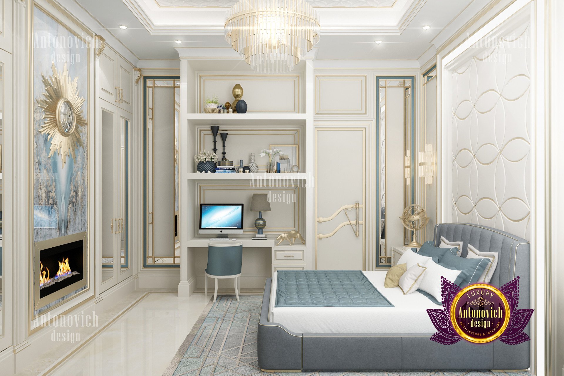 Luxury Antonovich Design can provide the best of the best interior design concept for you. The color with luxury design is a unique decor for this luxury boy bedroom interior design. One of the most noticeable elements in the room is the gorgeous blue shade in the area. The rounded chandelier is also a modern take to the luxury boy bedroom interior design. The luxury space design has elevated the room by creating an ambiance of space. The details are partnered with each other to complement the vibes, look and feel of the interior.