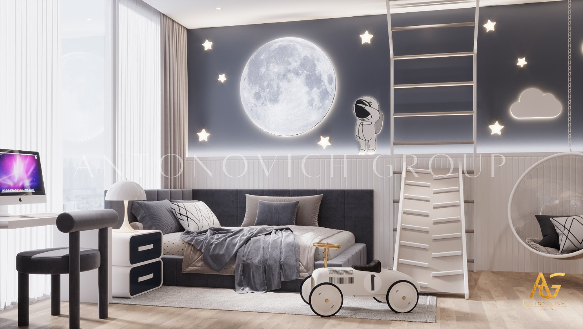 In the dynamic city of Dubai, where innovation meets luxury, the Antonovich Group stands at the forefront of transforming children's bedrooms into magical sanctuaries. Our expertise in children's room interior design in Dubai combines functionality, safety, and boundless creativity to craft spaces that nurture imagination and growth. A child's bedroom is more than just a place to sleep—it's a personal universe where dreams take shape and personalities flourish. Understanding this profound connection, our designers approach each kids' bedroom design in Dubai as a unique opportunity to create an environment that will inspire and comfort your child for years to come.