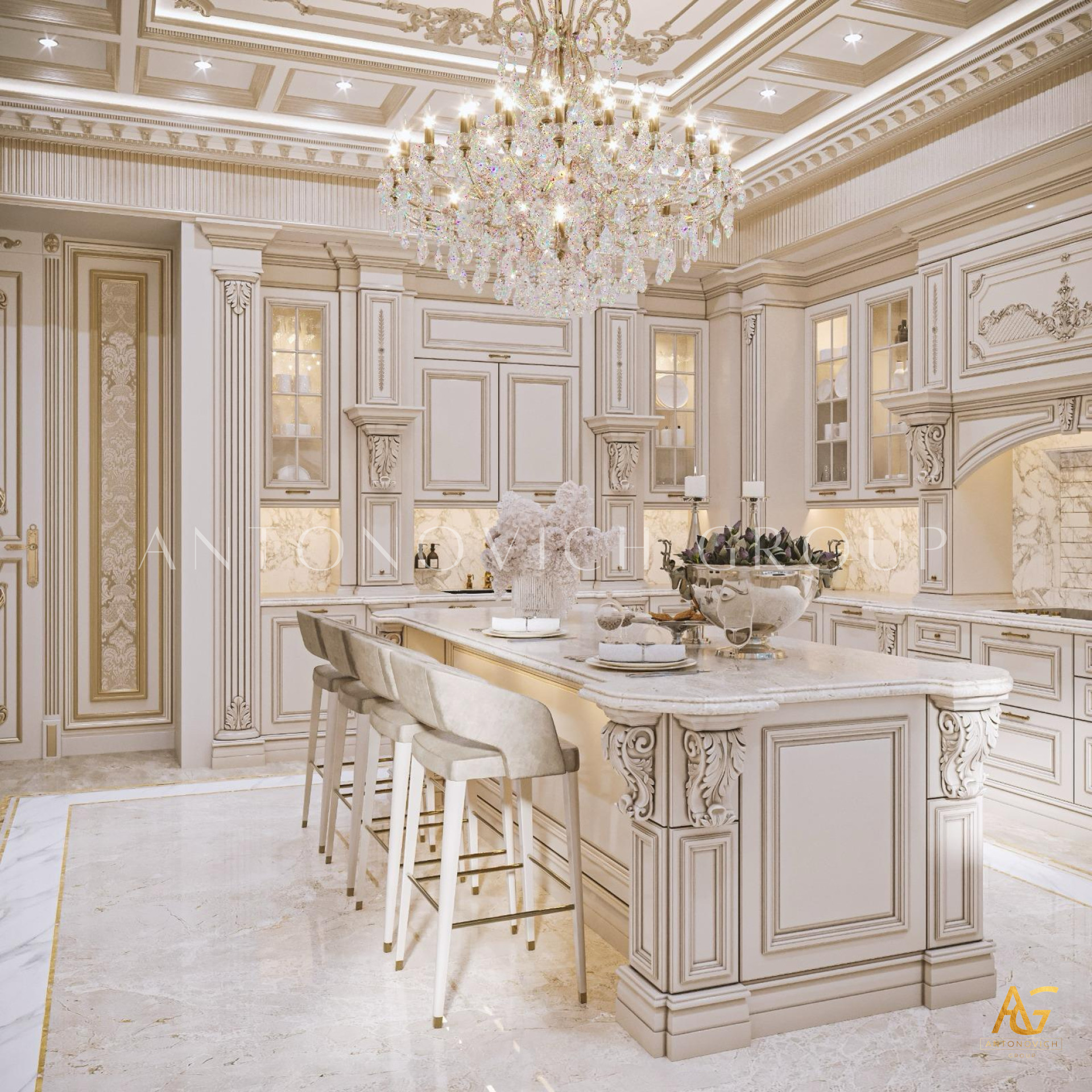 Inspired by neoclassical and European-style interiors, our kitchen concepts bring together symmetry, soft tones, and gold accents to create a warm yet luxurious atmosphere. Whether you’re planning a complete renovation or building a new villa, we offer fully customized solutions—designed to reflect your lifestyle and elevate your daily routine.
