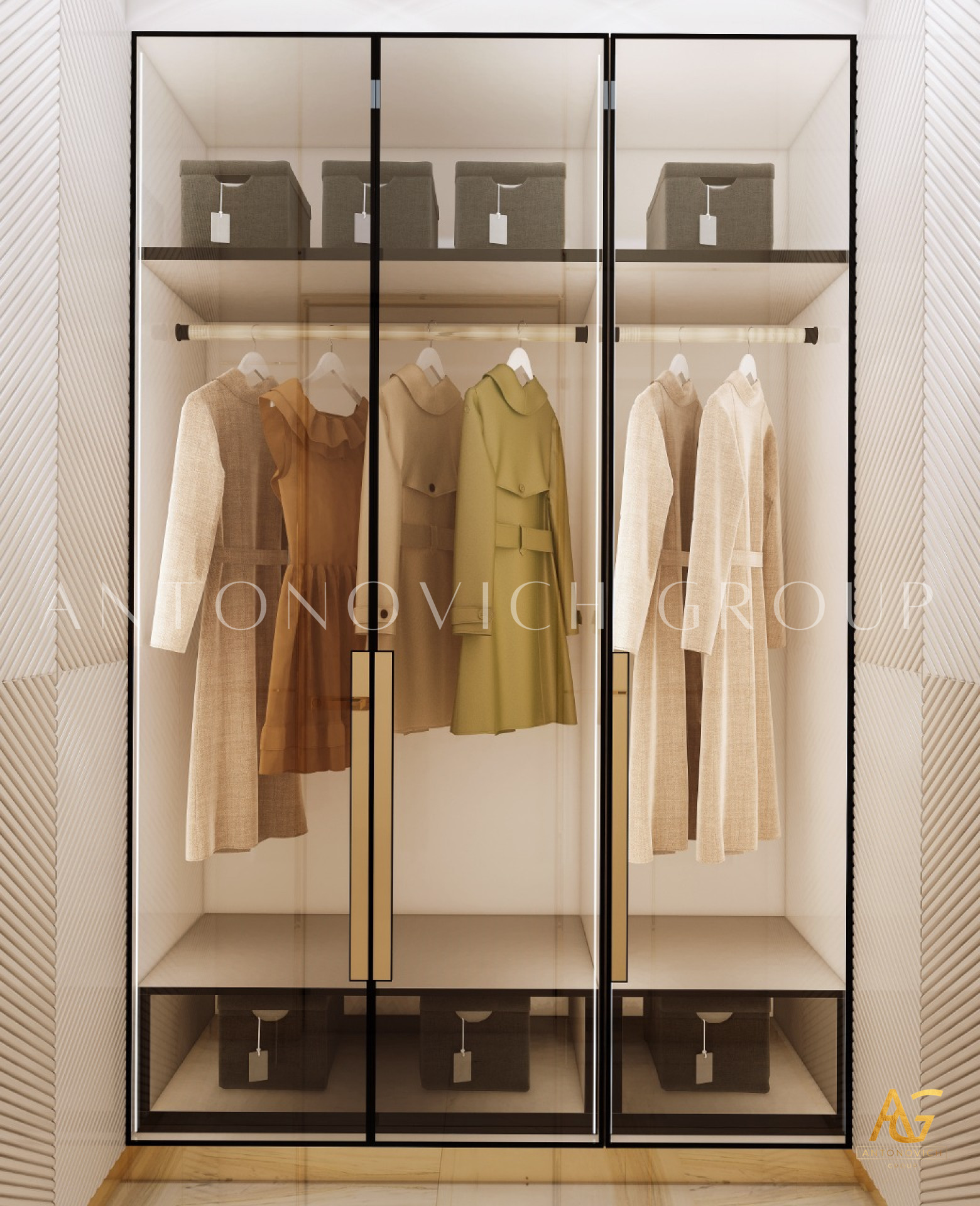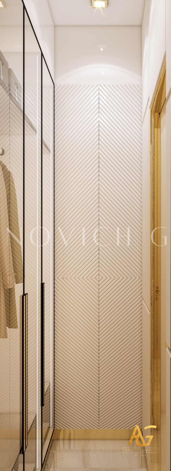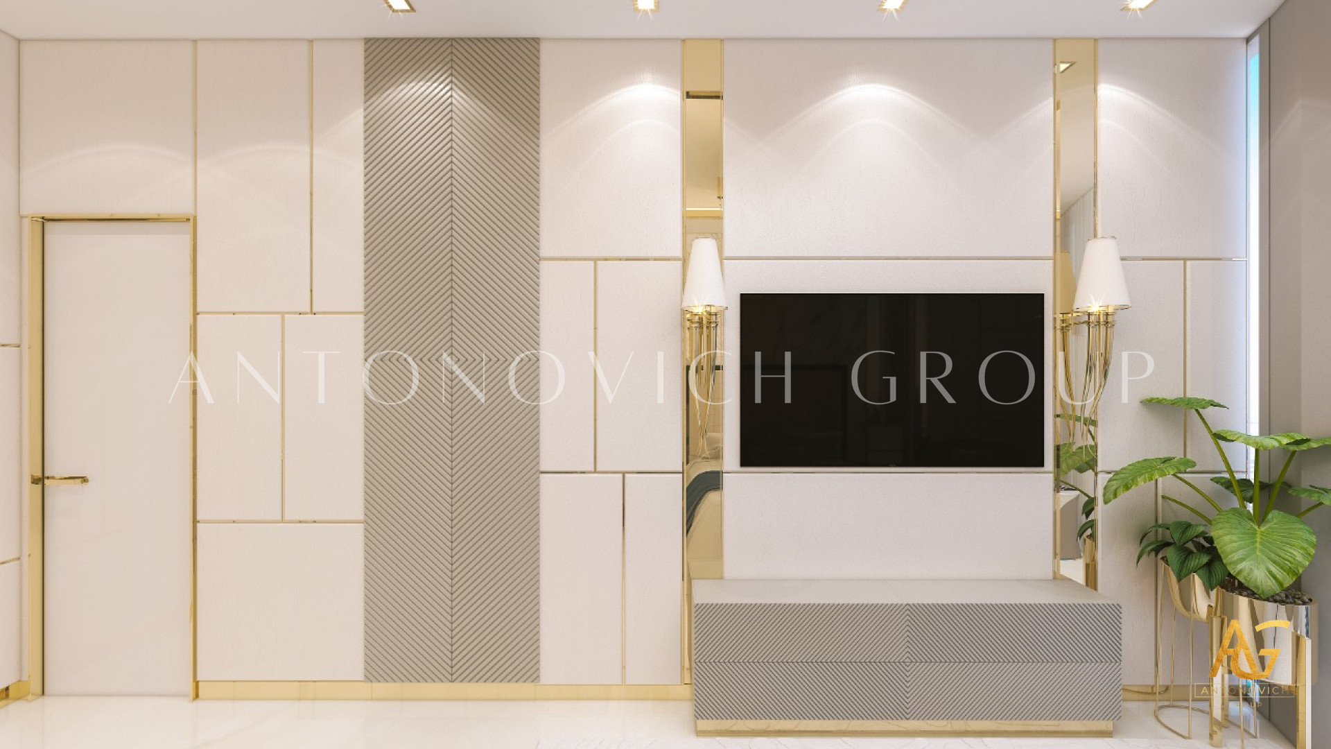 Antonovich Group is founded on the idea of providing the ideal atmosphere for each client. This apartments interior design is contemporary. The authors proposal effectively reflects the tendency toward open space that is inherent in attractive homes. The interior design of the property mixes famous decor and hues with daring improvisations in internal lighting. The living room is connected to a fantastic dining space and kitchen. Interior designers provided creative solutions in the shape of partition walls with an aquarium to separate the room. This house has a warm and joyful atmosphere.