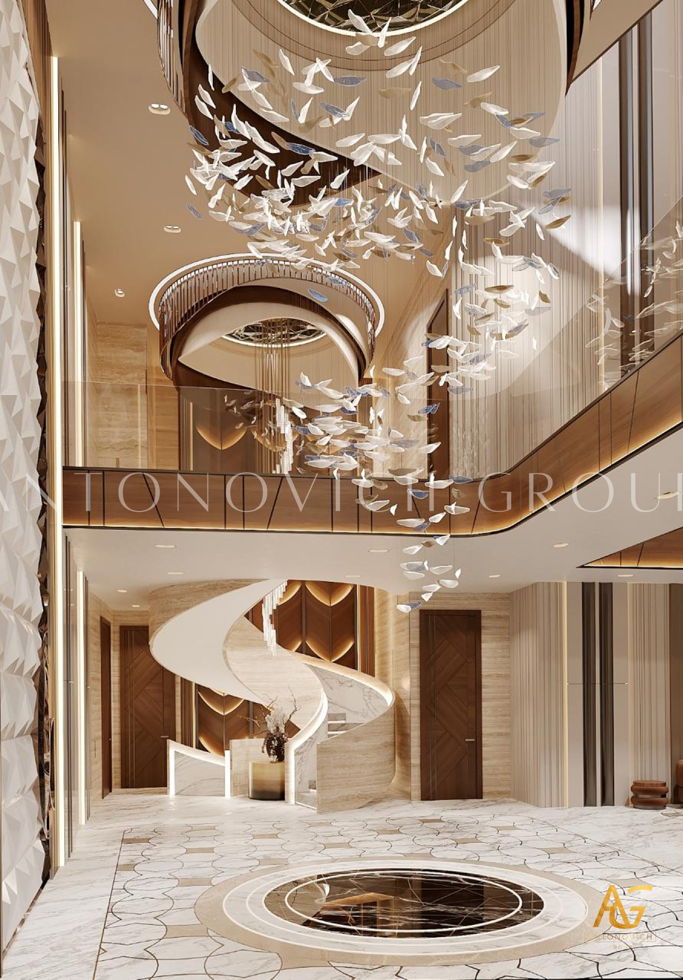 Elevate your villa’s entrance with our luxurious interior design and fit-out services. Contact Antonovich Group to bring your dream foyer to life!