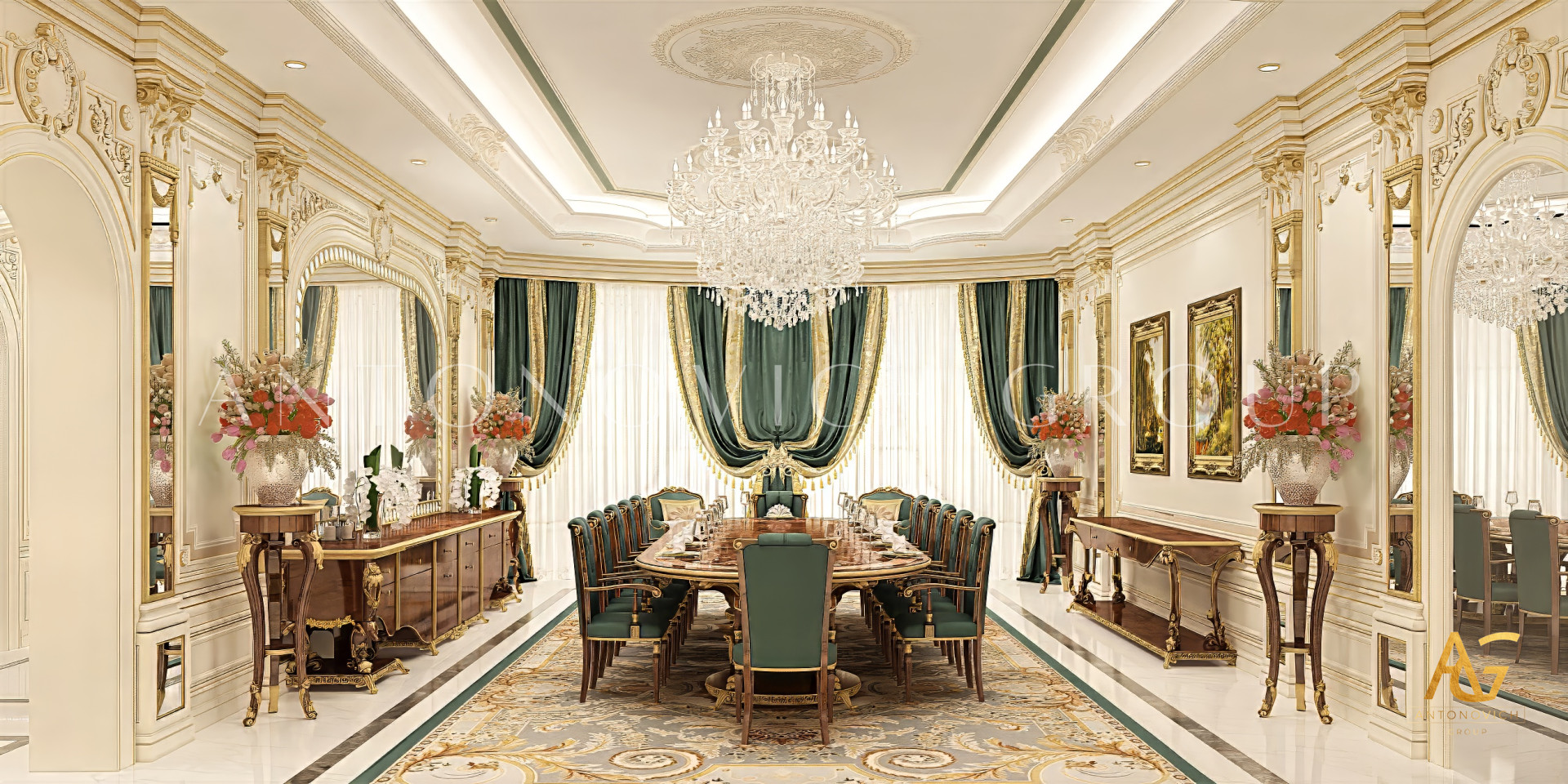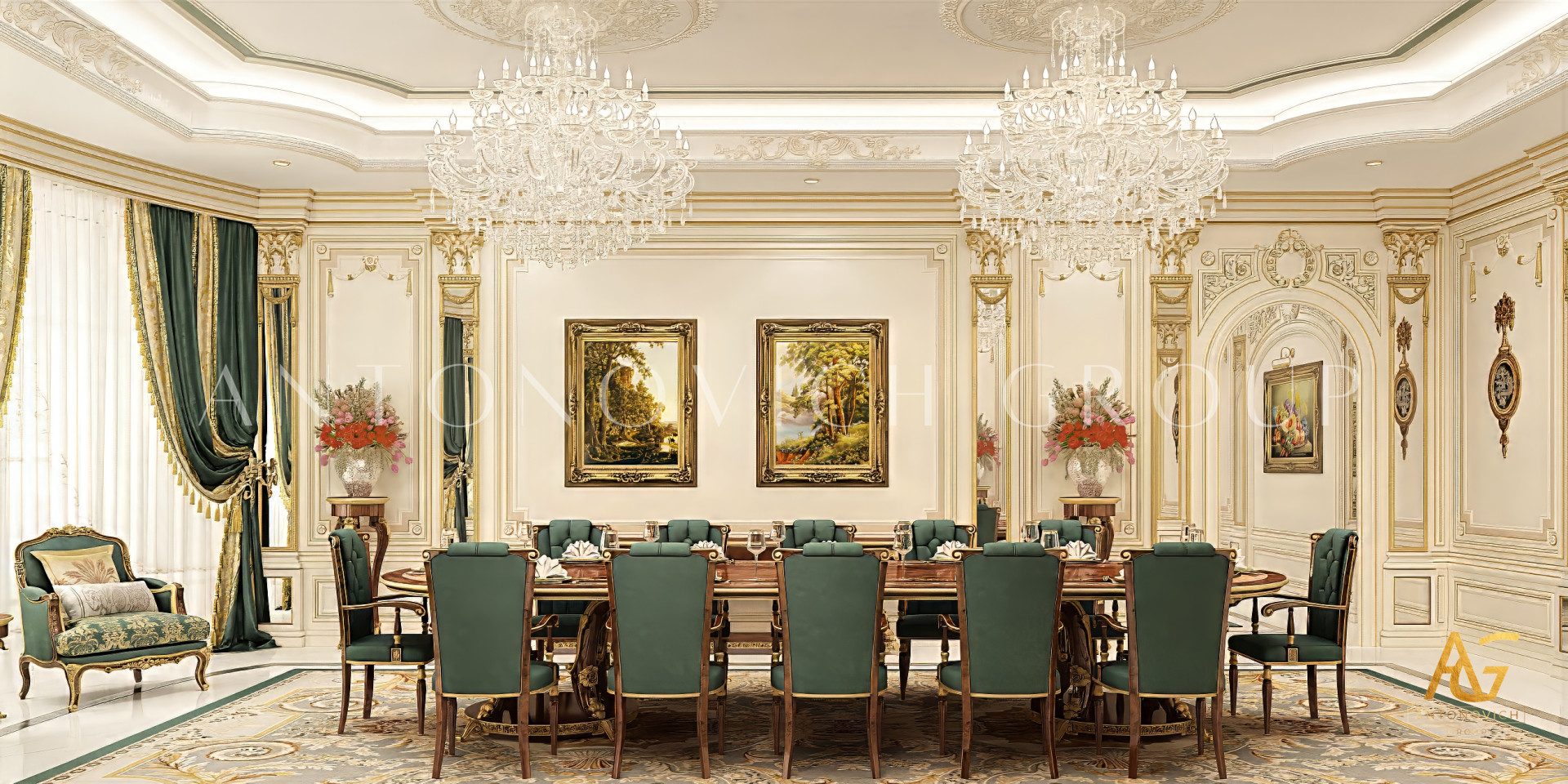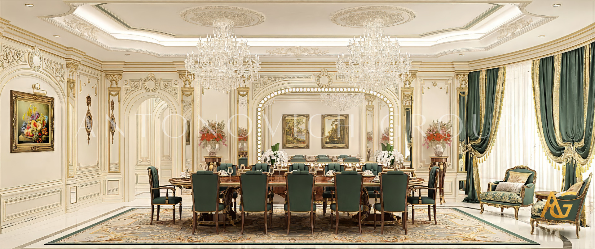 Dining room interior design in UAE necessitates the right combination of style and space planning for the dining area. Antonovich Group provides design services for any interior arrangement, including furniture layout. The furniture arrangement idea depicts the actual measurements, attributes, and furniture design. The most skilled and professional team capable of bringing out the finest interior mood was always necessary to achieve the most attractive and stylish dining room interior design in UAE. Decorating dining room interior design can be a challenging task, but it also gives designers with inspired work. Luxury dining room interior design entails more than just executing the interior setting in accordance with the dining rooms concept design or theme. Interior designers must assess the regions where the dining room will be placed.