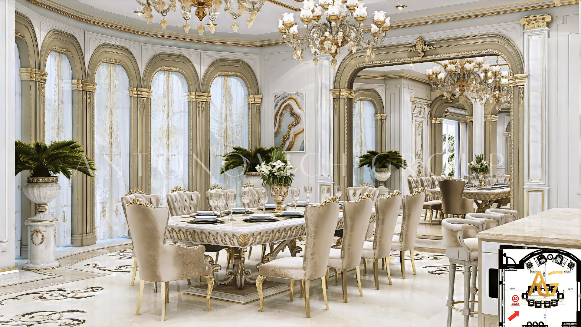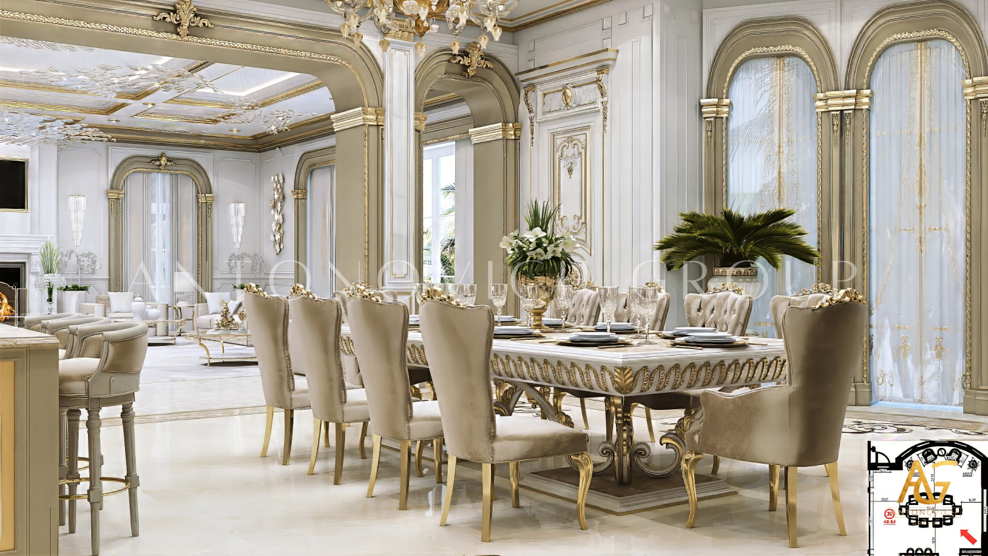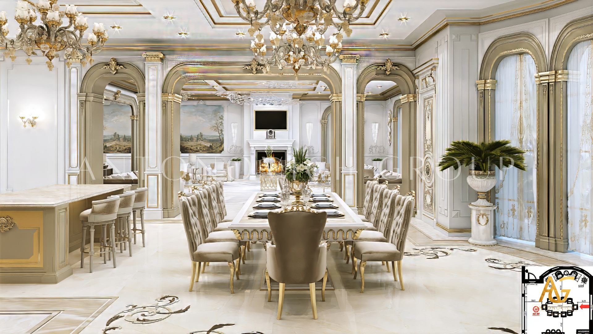 Dining rooms must always be the most impressive place in the interior where visitors are greeted since it is the first location where the owners individuality may be expressed via interior design. Dining rooms, being one of the most important elements of any household interior, have the largest and most attractive interior setting. Antonovich Group has always been the top choice of every high-end customer such as VIPs, elite personalities, royal families, and global top leaders in constructing their distinguished homes no matter where in the globe it is located when it comes to the classical interior design idea.