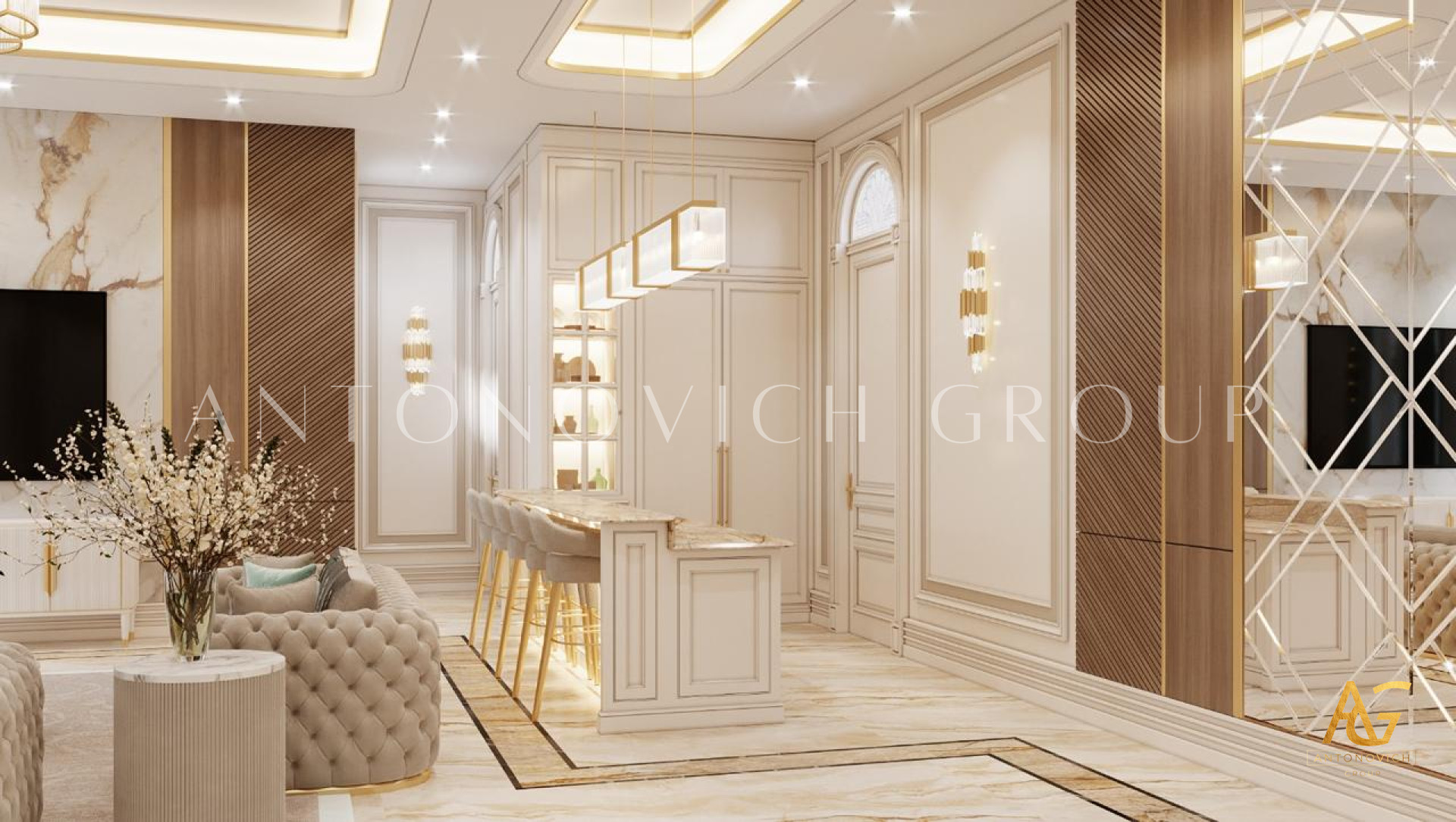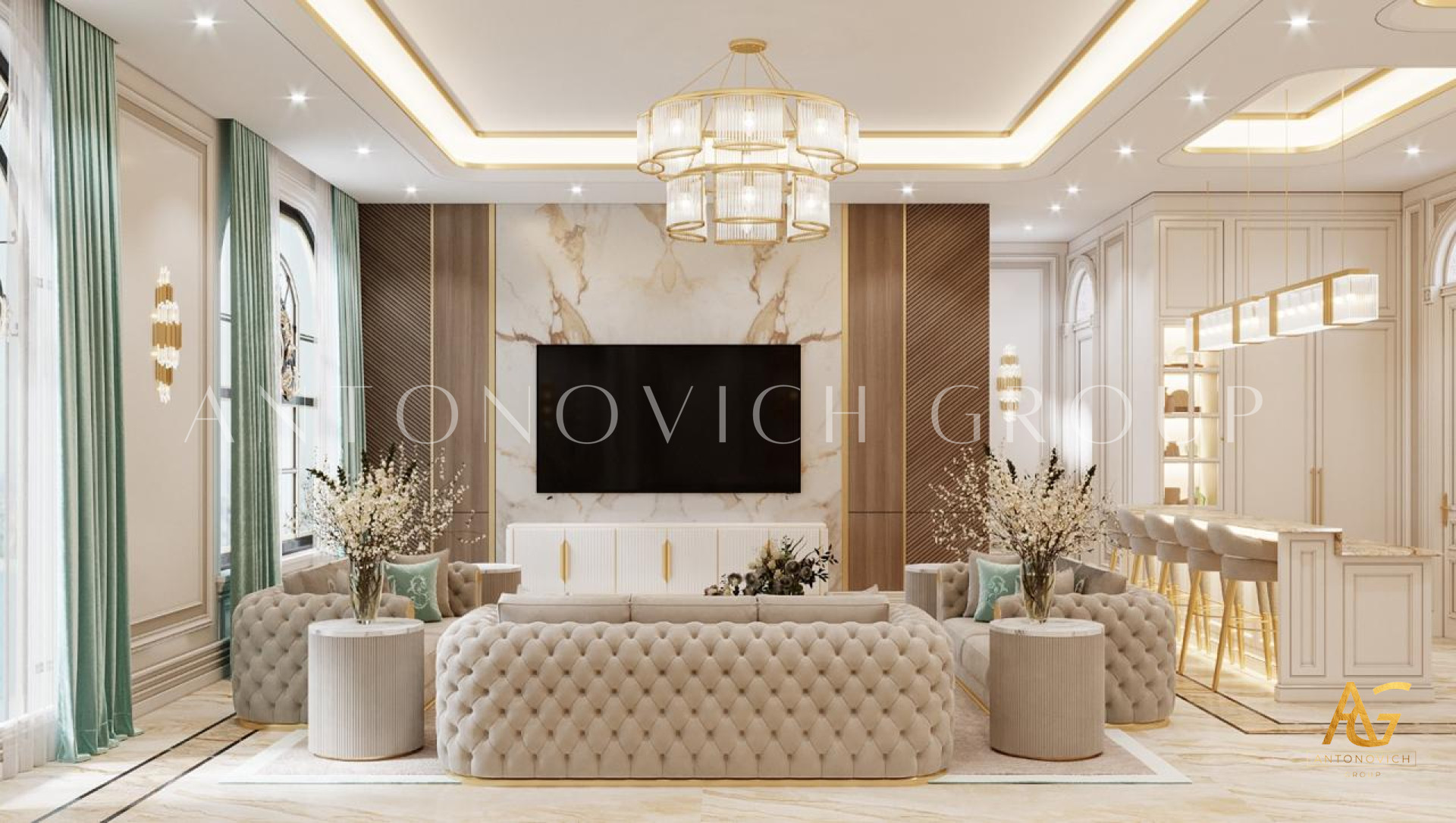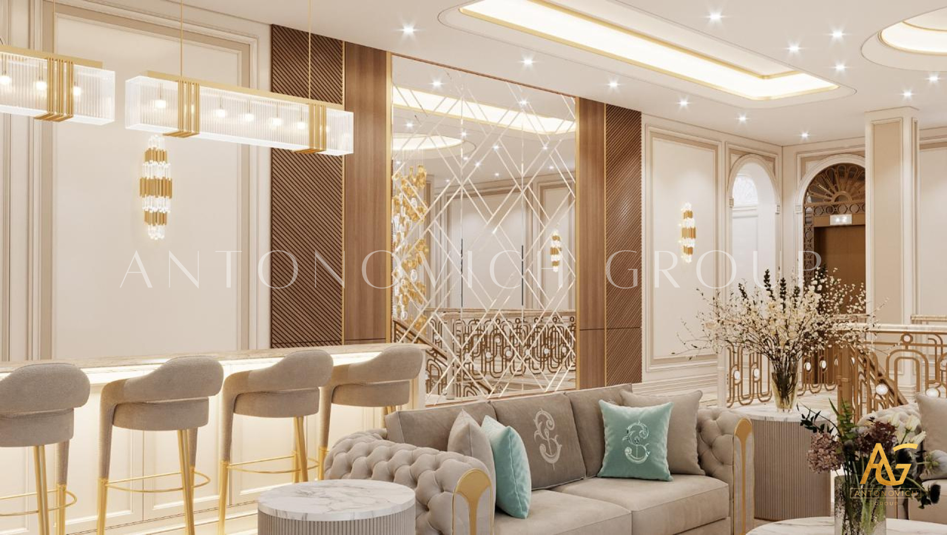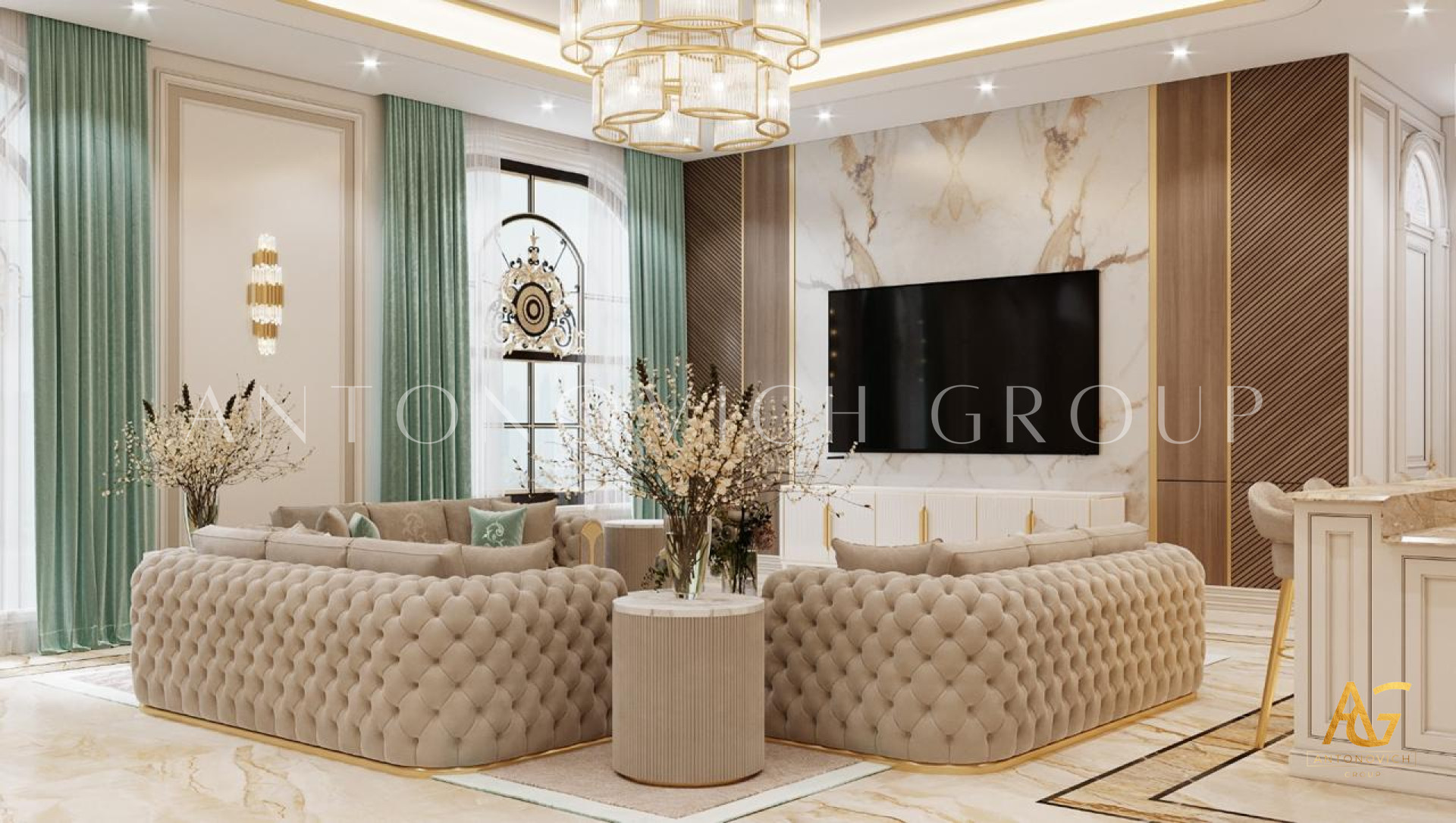 Our latest project showcases a chic family sitting room that embraces a neutral color palette, layered textures, and natural wood finishes to create a serene and elevated space. The use of plush sofas and armchairs, paired with statement lighting and curated coffee table styling, enhances the atmosphere of relaxed luxury. The layout is open-plan and multi-functional — ideal for both intimate family moments and entertaining guests.