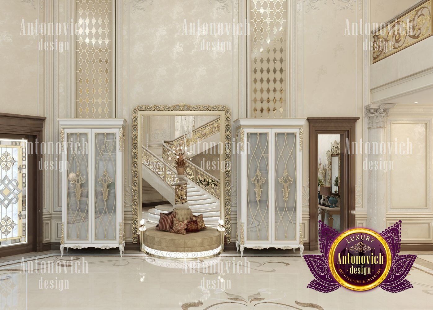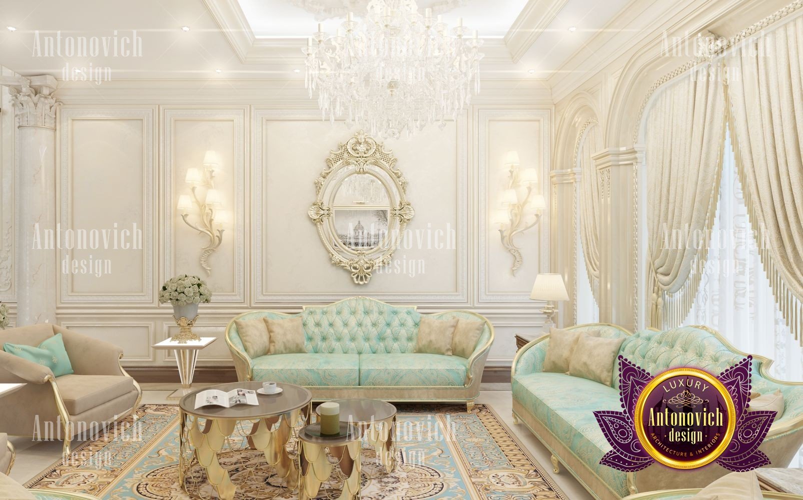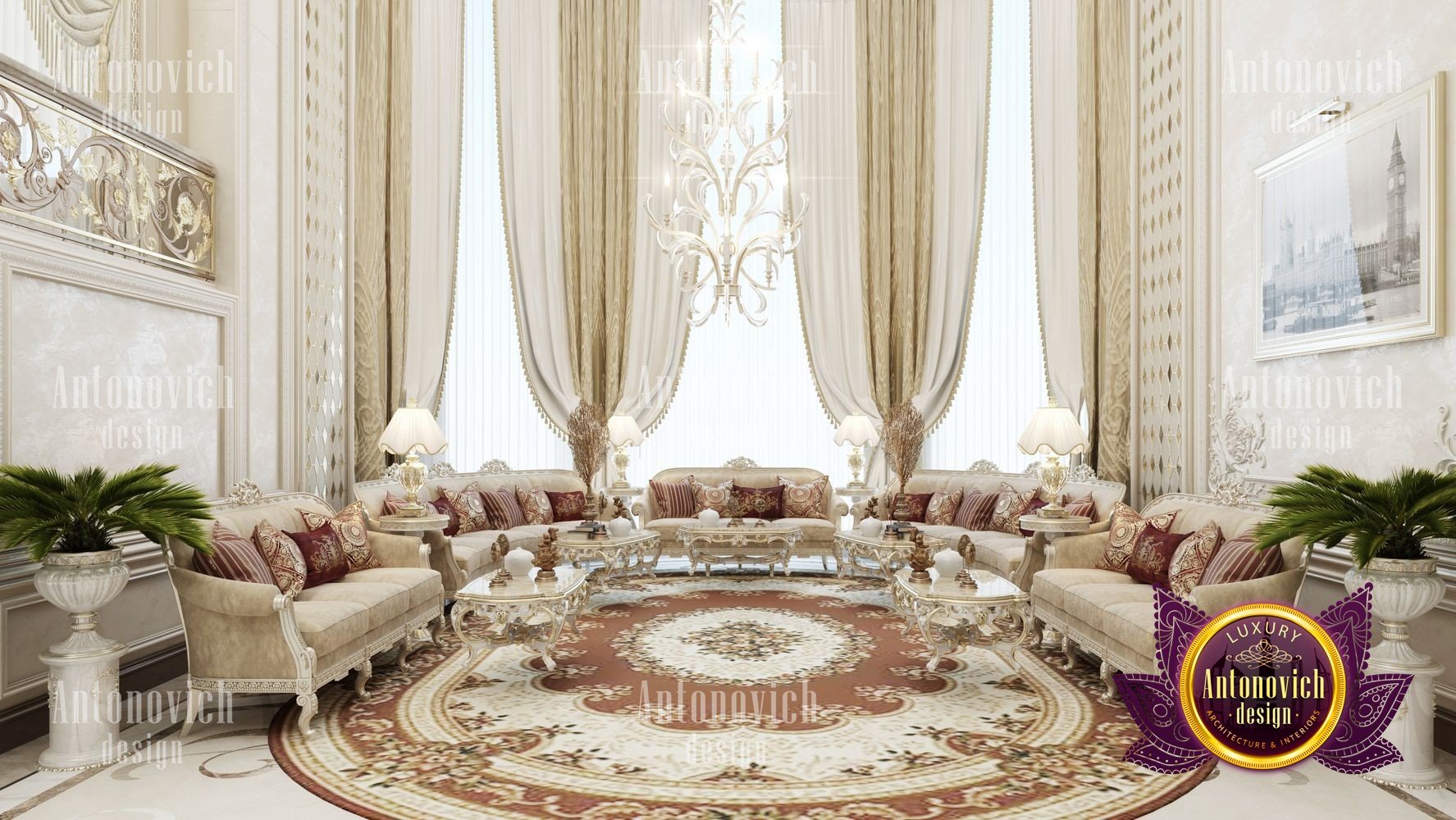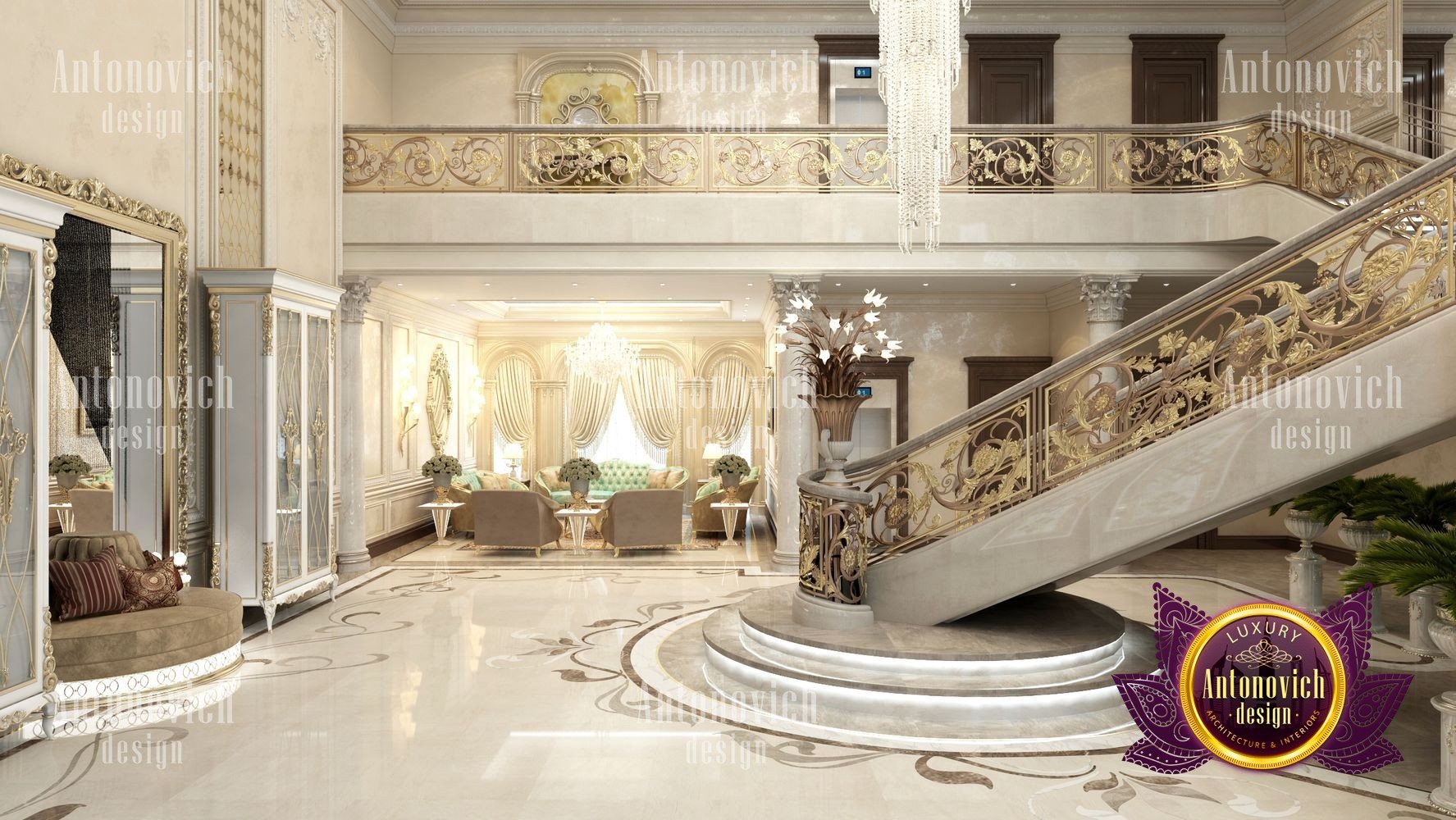 Complete immersion in the purity of lines, the beauty of hues, the ease, elegance and chic of modern luxury occurs when you admire this beautiful interior of the living room in a modern style. Very bright, extravagant and extraordinary project was created by designers of the studio Luxury Antonovich Design. According to the design project of an elite house in Dubai, for the living room was allocated almost half the houses first floor. In this project, the close interconnection between the work of the architect and designers team allowed already at the idea stage to link individual architectural design and interior design. Thus, achieving absolute harmony. Here we can observe an interesting moment when directly the living room area occupies only a third of the space. Its main part with large windows is allocated for the zone of a large dining area. But lets first look at the living room. Fashionable furniture in a modern style placed comfortably by the fireplace. The sofa and armchairs are upholstered in light beige velvet, which stylishly shades the dark brown edging made of natural wood, varnished. A cozy moment in the form of a natural carpet slightly compensates the coolness of natural marble floor. In the same part of the space, there is also a small kitchen with a bar-counter. The gloss of wood and the shine of polished brass in combination with the flickering of natural marble set a certain mood in this interior. A modern fireplace is built into a large marble partition, which is designed to divide the living room and dining area. And a large dining room for 8 people looks enchanting thanks to stylish lighting details and elegant windows decor. paint house design, online interior designer services, perfect design house, professional home designer
