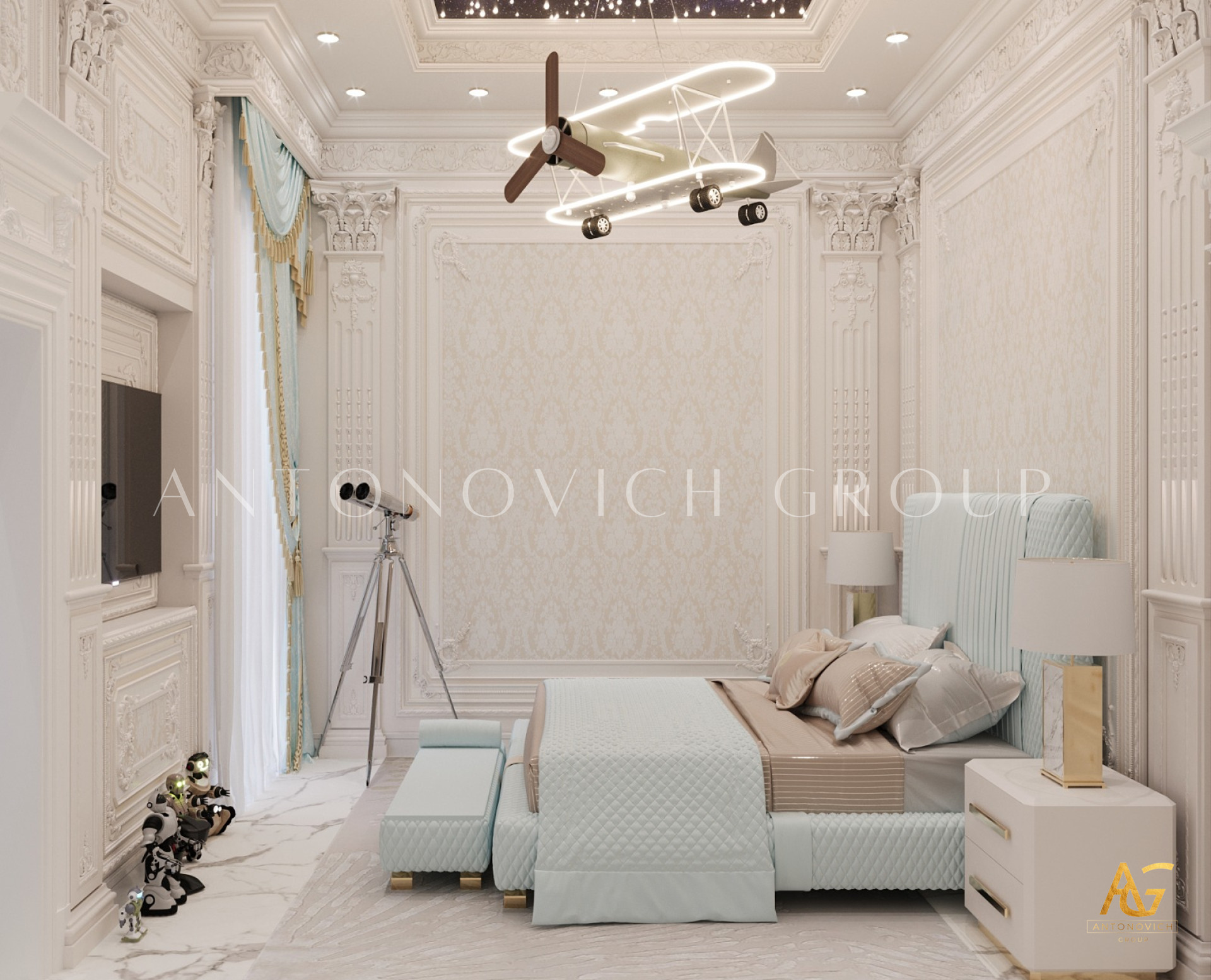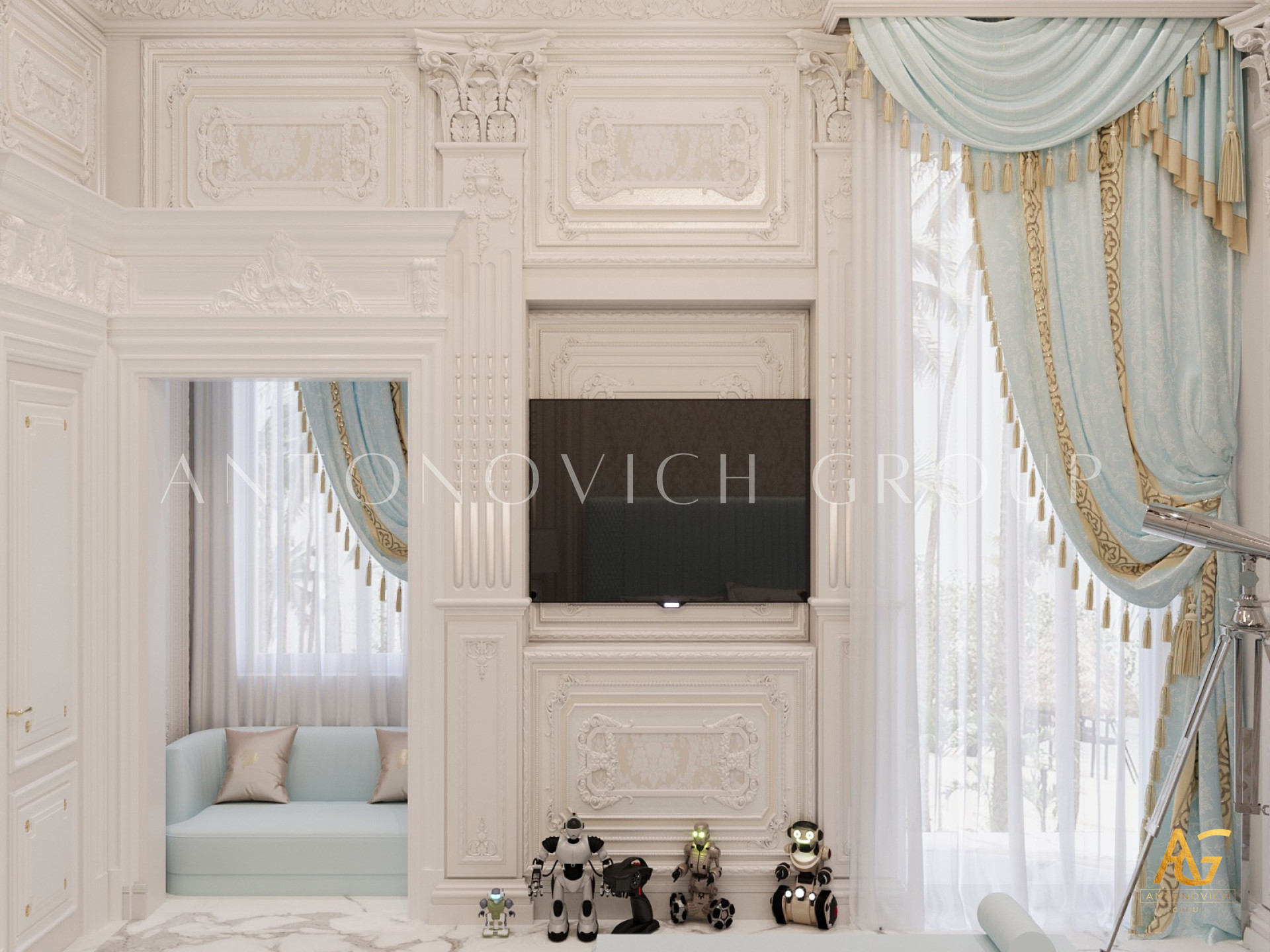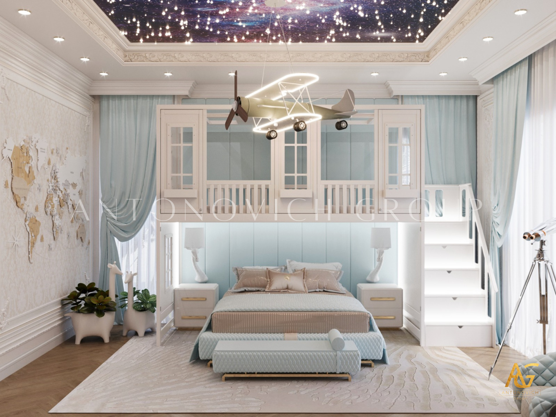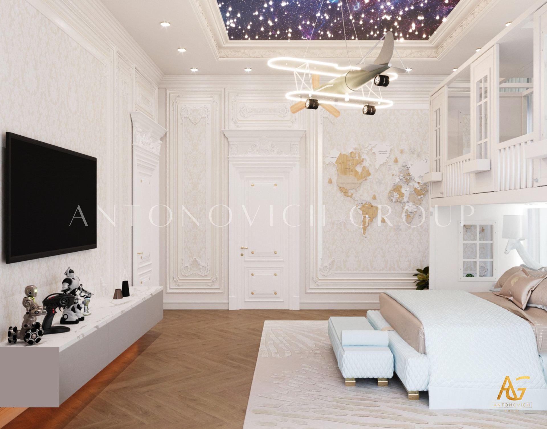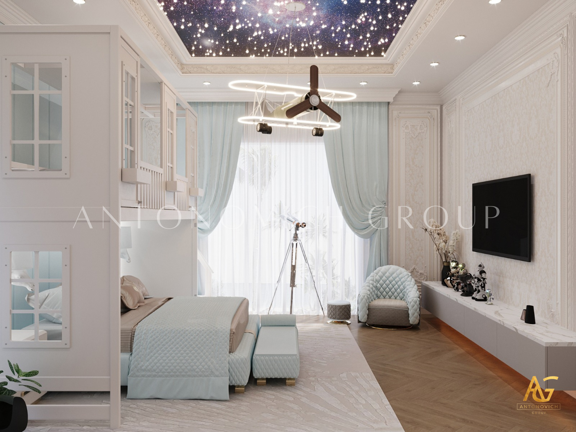 Boys room décor is entirely designed in the theme of Formula One racing. The young owner of the room is very passionate about cars, and more than once has been to Ferrari WORLD park in Abu Dhabi. And such boys room décor was the realization of his dreams. Interior designers have thought carefully about every detail of the interior. All the boys room ideas emphasize the theme and at the same time form a very cozy and comfortable space. This bright and luxurious range of colors perfectly matches the young age of the child. Exclusive furniture design has been developed for the project. A unique role in the boys room décor lighting plays. With the help of LED lighting lines and modern ceiling lights, we provided good lighting for the child’s eyes, which can be adjusted depending on the natural light. The interior designers created the luxury interior with a very vivid character for the youngest son of the villa owners in Dubai. Boys room ideas and kids room décor from the Luxury Antonovich Design Studio is the creation of dreams, happiness, and joy.