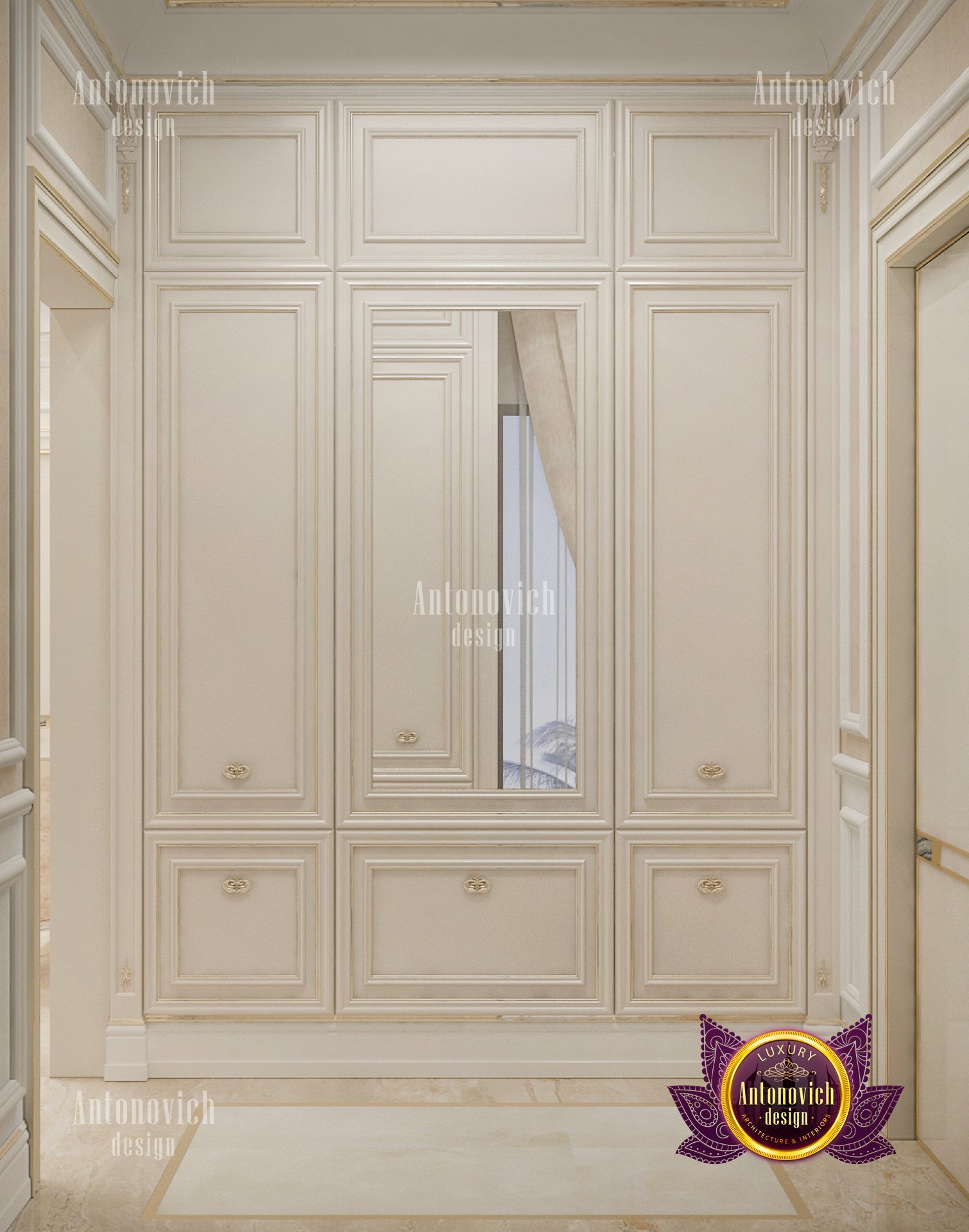 Spacious, elegant, and a room full of beauty and elegance in one huge room. The color cream is a soothing color. The dressing room has a gorgeous color finish and is paired with sophisticated decors. Because of its professional team, Luxury Antonovich Designs style in constructing a luxury dressing room has been recognized all over the world. The dressing rooms stunning decor is impossible to ignore. Because of the big arrangement, you may dress up freely here without any disturbance. One of the features of the luxury interior design is the gorgeous cream with a smooth feel of the gold lines.