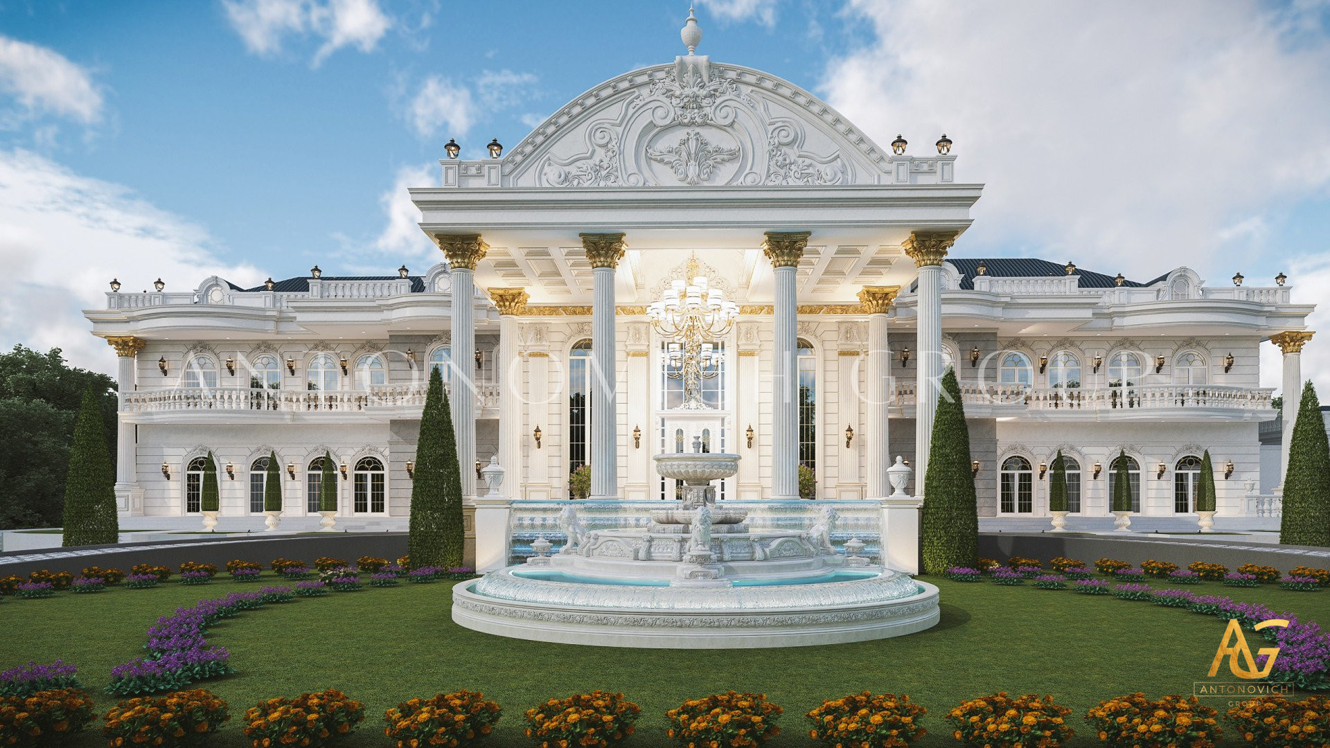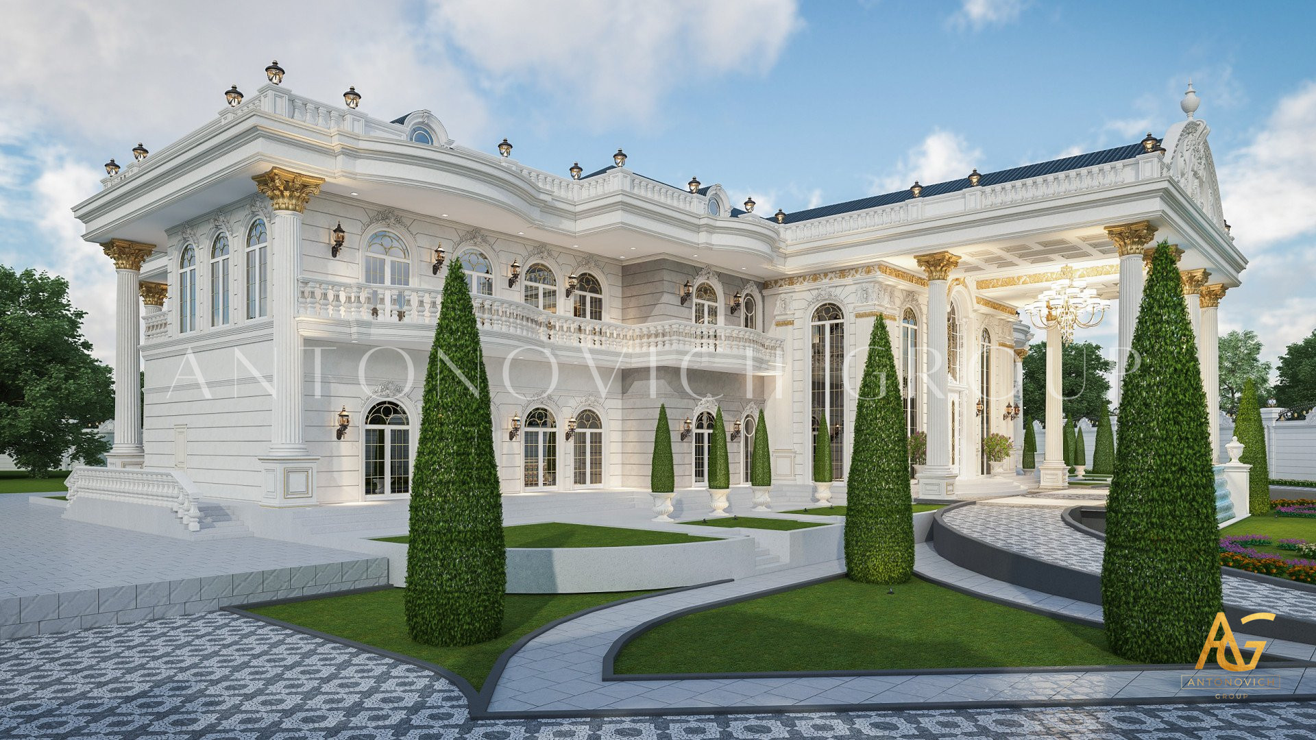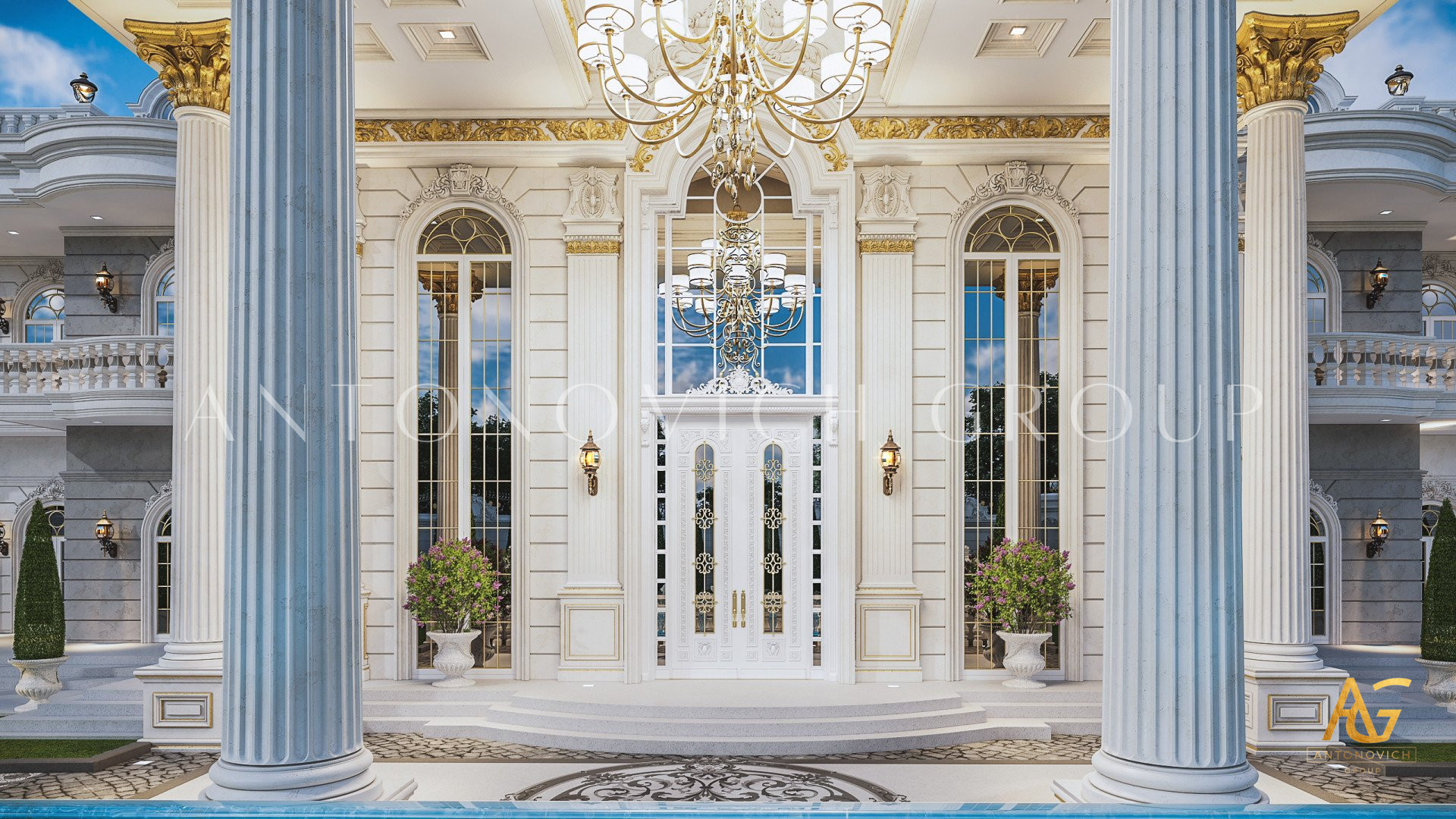 The design of the classic exterior design in UAE continues on all sides of the exterior. Not only the facade is beautiful but also the entire space in the exterior design, The gold accents on the top and bottom add to the magnificent beauty of this classic exterior design in UAE. The creation of the classic exterior design in UAE is beautiful and royal because of the small details that the company has put in inorder to delievr the ebst possible experience for its client. Every part of the classic exterior design in UAE is meticolously designed to give such a nice impression from the outside and for thos who are just dropping by. The classic exterior design in UAE has stunning mirrored walls that will level up your classic exterior design in UAE regardless of the weather condition. The glass component of the classic exterior design in UAE is very much applicaple to any types of homes that we will create. Luxury Antonovich Design can easily turn your dreams into reality. The classic exterior design in UAE also has a very complete floor to rood finish that no one can bother having it finished later than the agreed upon contract. The classic exterior design in UAE is indeed a beautiul work.