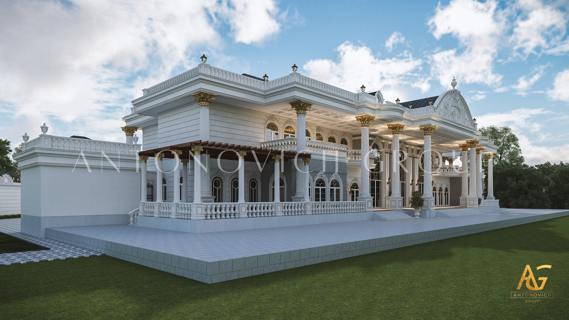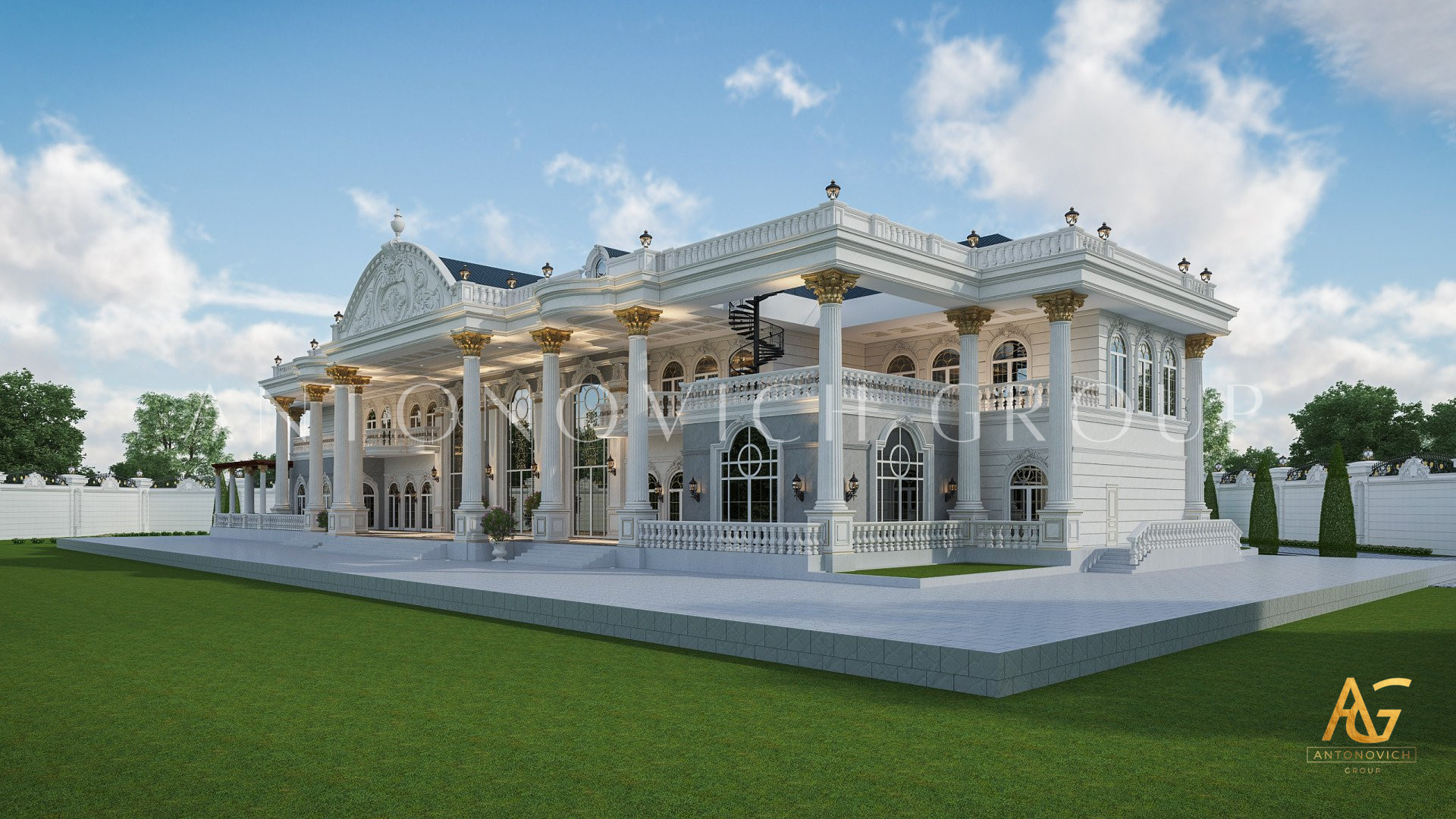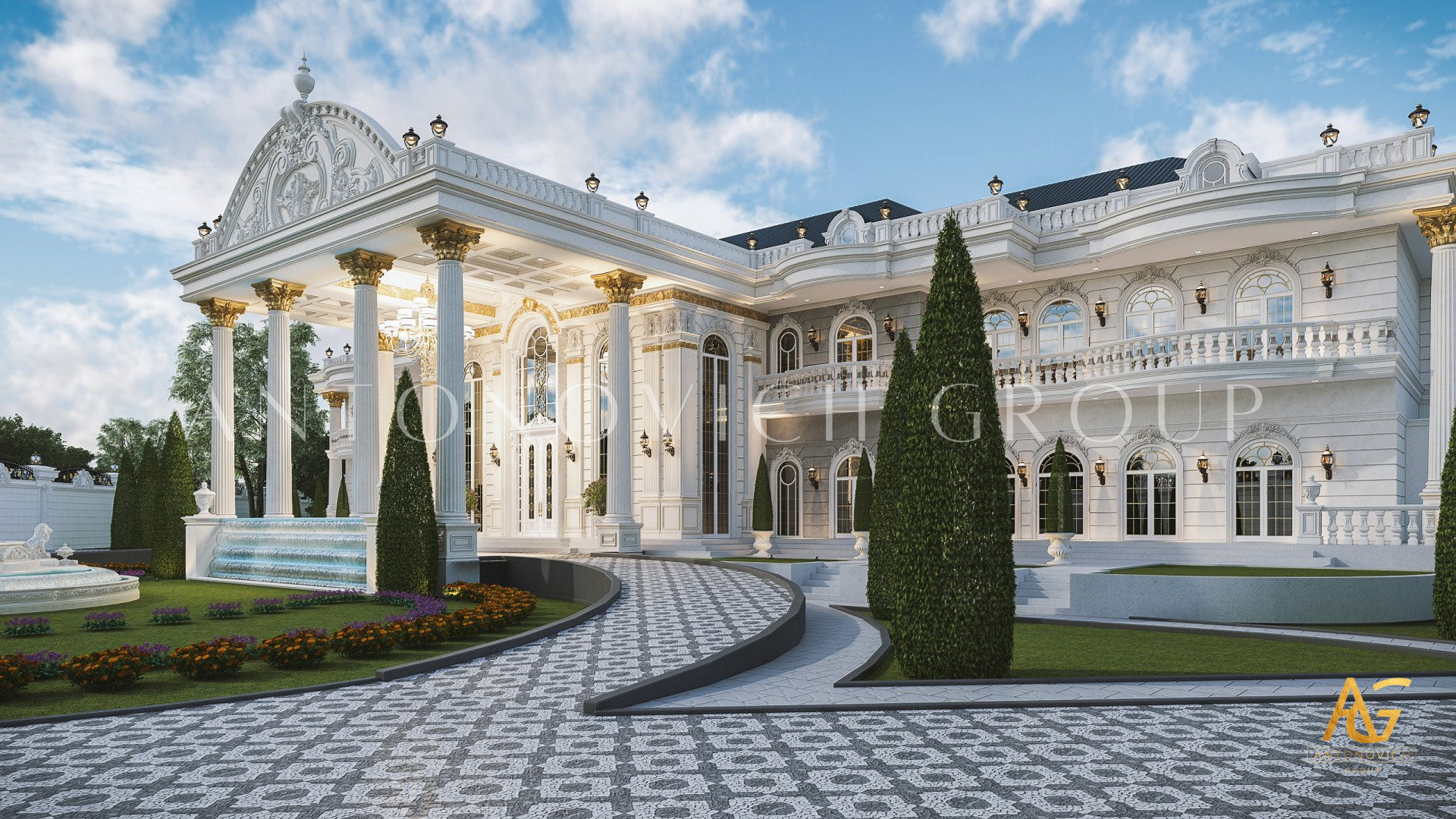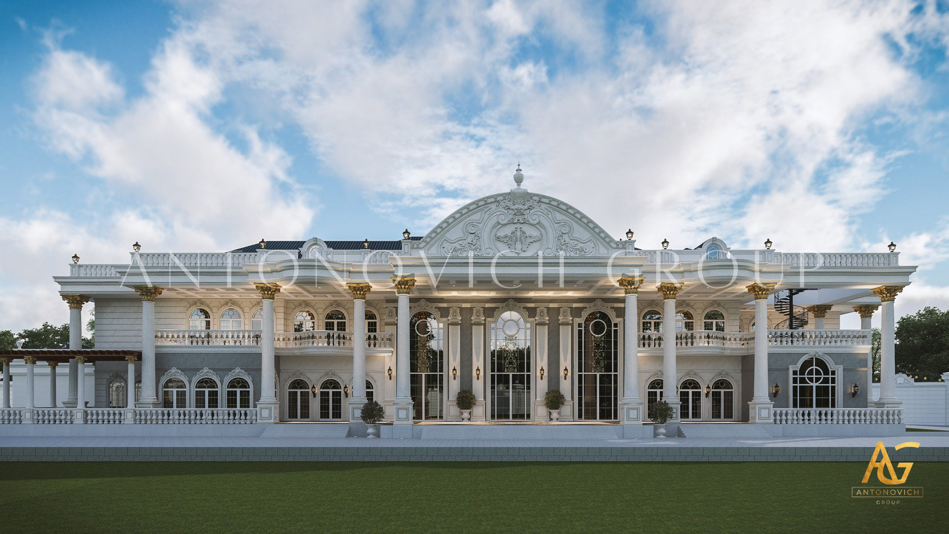 The design of the classic exterior design in UAE continues on all sides of the exterior. Not only the facade is beautiful but also the entire space in the exterior design, The gold accents on the top and bottom add to the magnificent beauty of this classic exterior design in UAE. The creation of the classic exterior design in UAE is beautiful and royal because of the small details that the company has put in inorder to delievr the ebst possible experience for its client. Every part of the classic exterior design in UAE is meticolously designed to give such a nice impression from the outside and for thos who are just dropping by. The classic exterior design in UAE has stunning mirrored walls that will level up your classic exterior design in UAE regardless of the weather condition. The glass component of the classic exterior design in UAE is very much applicaple to any types of homes that we will create. Luxury Antonovich Design can easily turn your dreams into reality. The classic exterior design in UAE also has a very complete floor to rood finish that no one can bother having it finished later than the agreed upon contract. The classic exterior design in UAE is indeed a beautiul work.