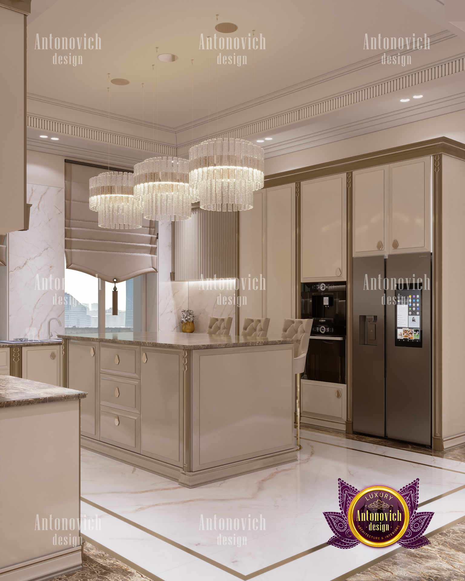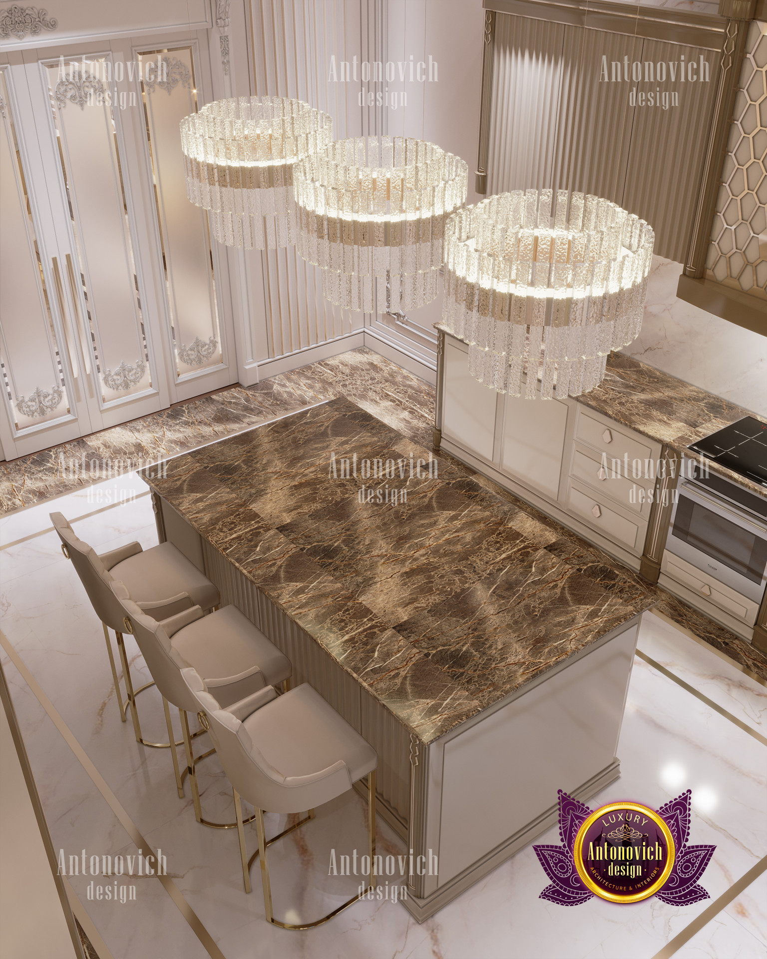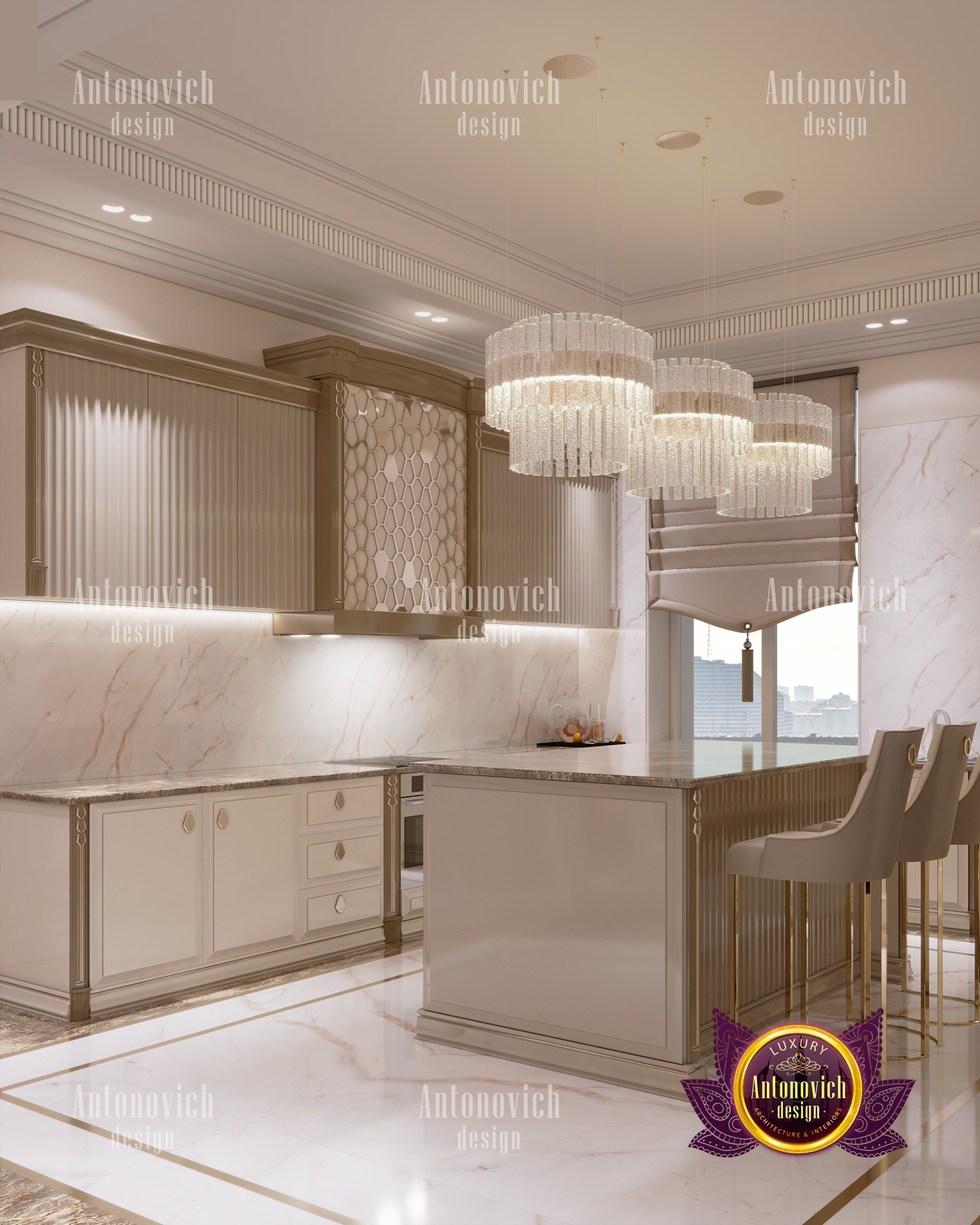 Brown has always been a favorite of many when it comes to the kitchen. It gives off a classy ambiance to the overall concept of any room. Just like this luxury kitchen that we created. The stunning marbles in the luxury kitchen interior design form a gorgeous pattern in its theme. This luxurious kitchen interior design is highlighted by the lovely color. The combination of brown and cream is distinctive and elegant.