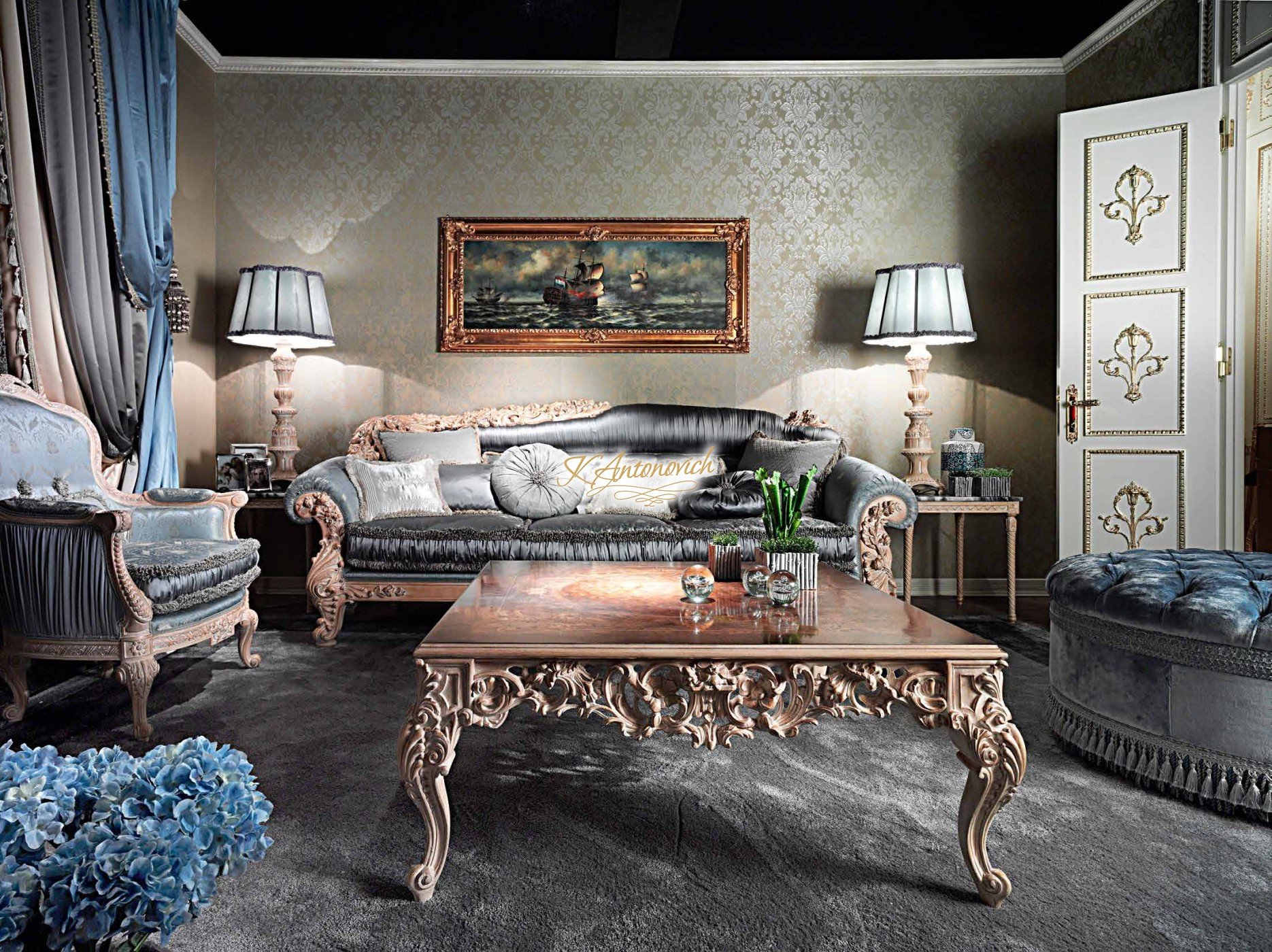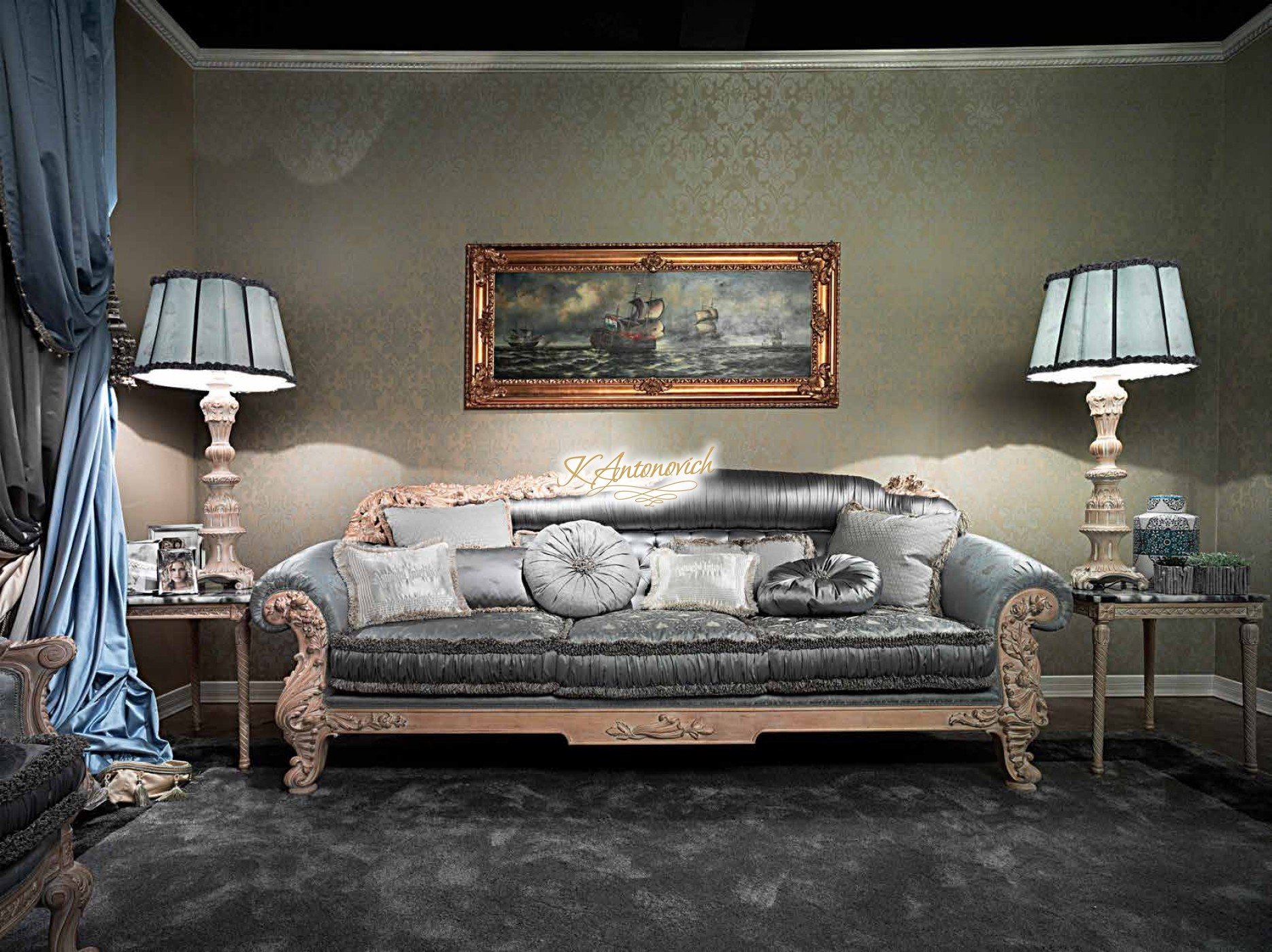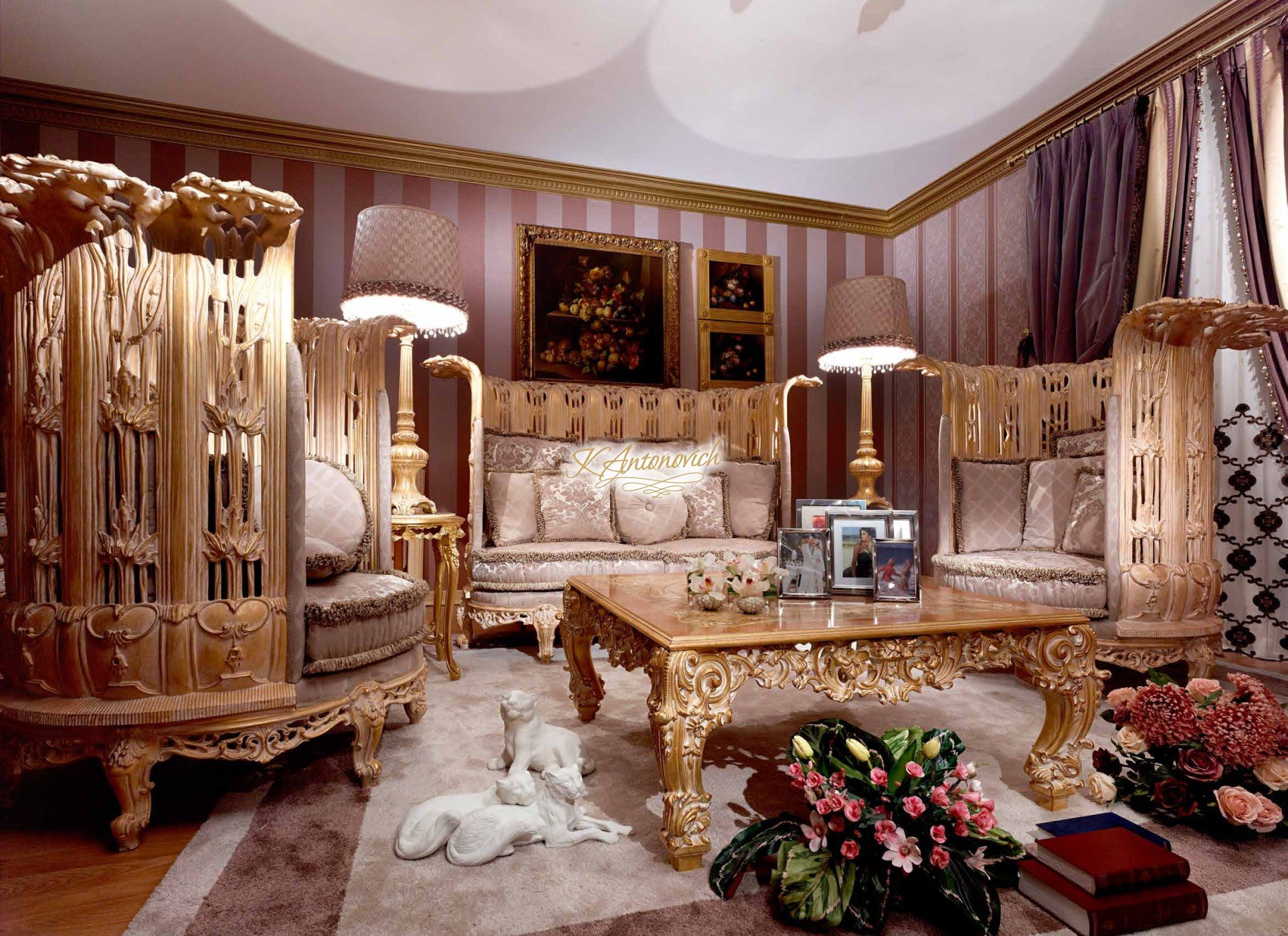 Life is beautiful, full of victories, successes, and achievements. This is what interior designers the of Luxury Antonovich Design Studio wanted to express, creating this design of a living room in a classical style.After all, the owners of the elite house have achieved great success and have high status.They wanted to create their own patrimonial nest, which will delight by the beauty and luxury more than one generation of the family.And it is classical style is a universal way of creating elite interiors that will not be subject to time or tastes changes. The luxurious living room became a natural continuation of the interior of the elegant and magnificent hall. Here, interior designers had masterly combined all the traditional elements of the classical style in the overall picture of a cozy and comfortable room.The ceiling looks most laconic and restrained. His smooth snow-white surface was decorated with a rosette of stucco decor and a chandelier in a classical style.The ceiling outlined by a wide molding with a wave of stucco decoration, which is covered with gold leaf.The additional lighting line makes the ceiling more spacious. In general, the decor of the walls continues the motifs of the hall decoration.In addition, in the living room, there is one very expressive detail. This is a luxurious fresco with art painting, which is framed by an arch and mirrored canvases.A romantic Venetian scenery has brought to the interior a special mood of presence in beautiful Italy. The authors of the project also did not ignore such traditional element of the classical living room, as the marble fireplace. This beautiful symbol of the hearths warmth is framed by a beautiful marble of brown color with a natural texture.Elite parquet on the floor with a classic pattern and natural Persian carpet make an image of luxury and comfort complete in its noble decoration.