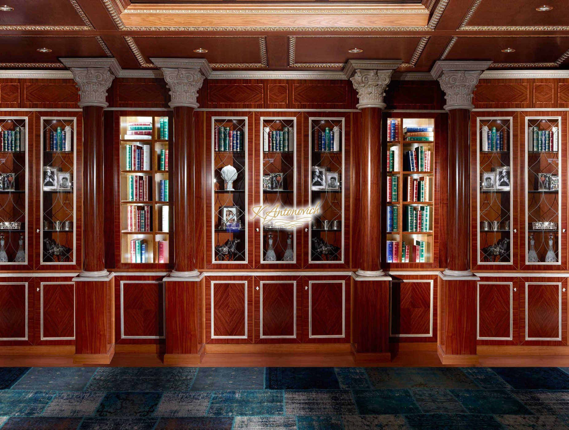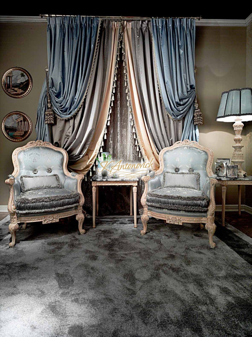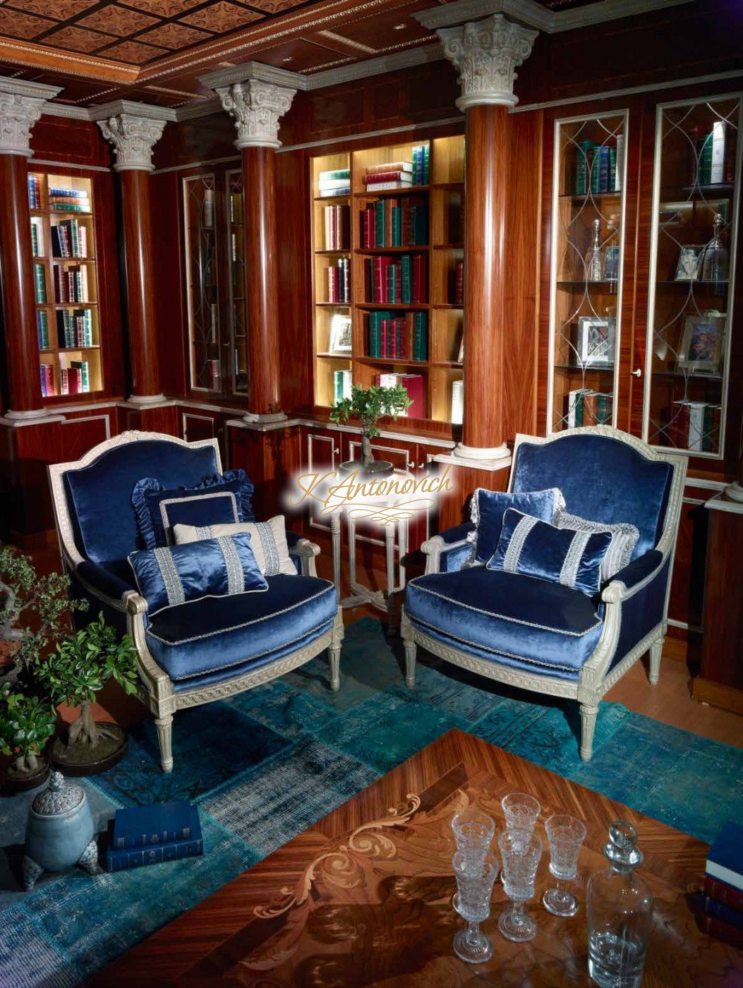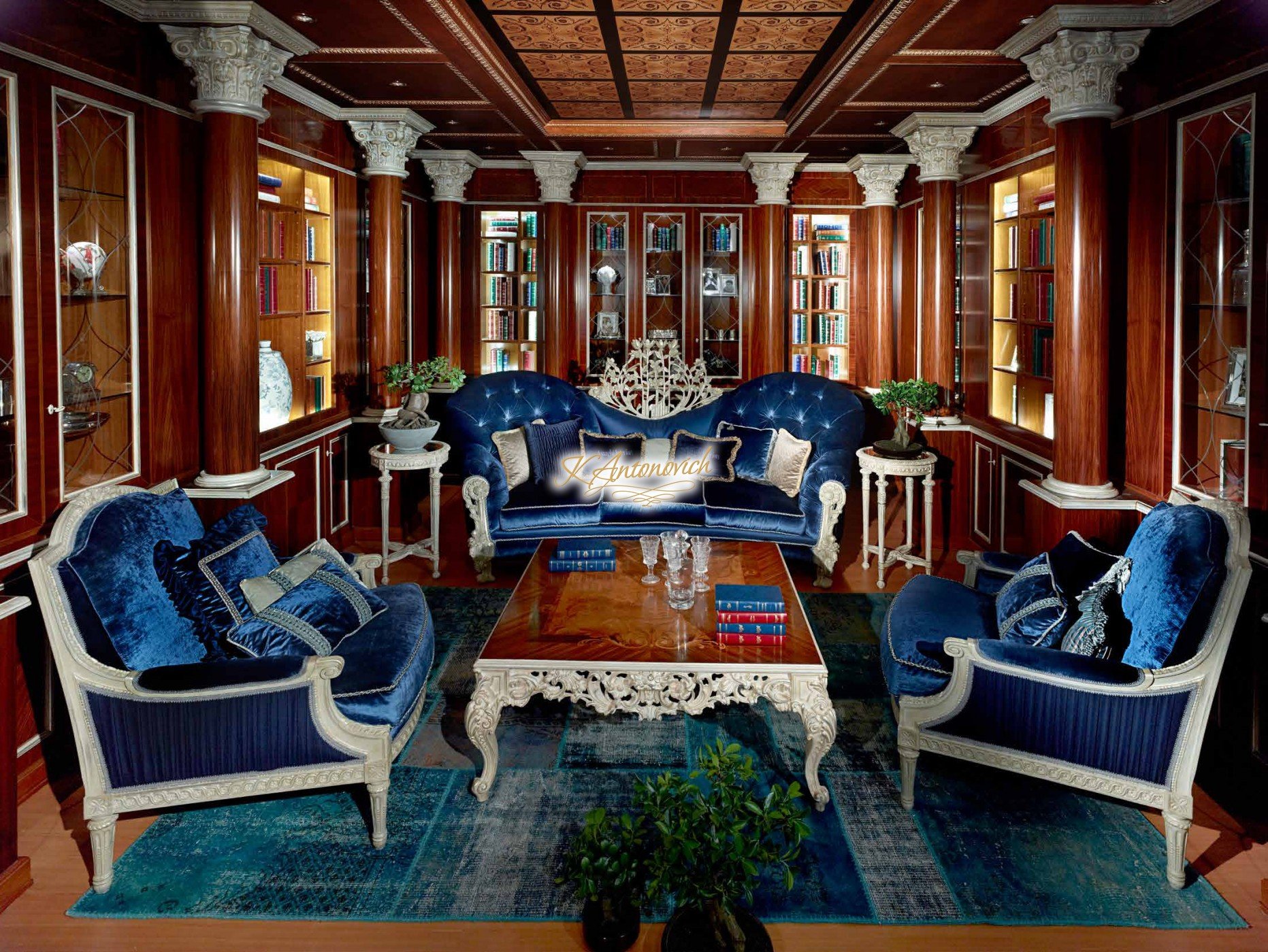 Life is beautiful, full of victories, successes, and achievements. This is what interior designers the of Luxury Antonovich Design Studio wanted to express, creating this design of a living room in a classical style.After all, the owners of the elite house have achieved great success and have high status.They wanted to create their own patrimonial nest, which will delight by the beauty and luxury more than one generation of the family.And it is classical style is a universal way of creating elite interiors that will not be subject to time or tastes changes. The luxurious living room became a natural continuation of the interior of the elegant and magnificent hall. Here, interior designers had masterly combined all the traditional elements of the classical style in the overall picture of a cozy and comfortable room.The ceiling looks most laconic and restrained. His smooth snow-white surface was decorated with a rosette of stucco decor and a chandelier in a classical style.The ceiling outlined by a wide molding with a wave of stucco decoration, which is covered with gold leaf.The additional lighting line makes the ceiling more spacious. In general, the decor of the walls continues the motifs of the hall decoration.In addition, in the living room, there is one very expressive detail. This is a luxurious fresco with art painting, which is framed by an arch and mirrored canvases.A romantic Venetian scenery has brought to the interior a special mood of presence in beautiful Italy. The authors of the project also did not ignore such traditional element of the classical living room, as the marble fireplace. This beautiful symbol of the hearths warmth is framed by a beautiful marble of brown color with a natural texture.Elite parquet on the floor with a classic pattern and natural Persian carpet make an image of luxury and comfort complete in its noble decoration.