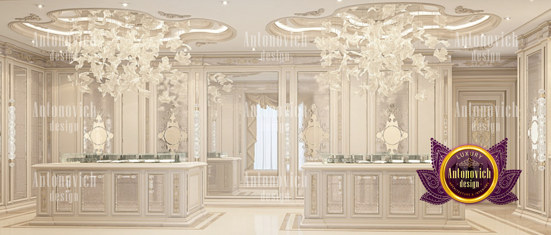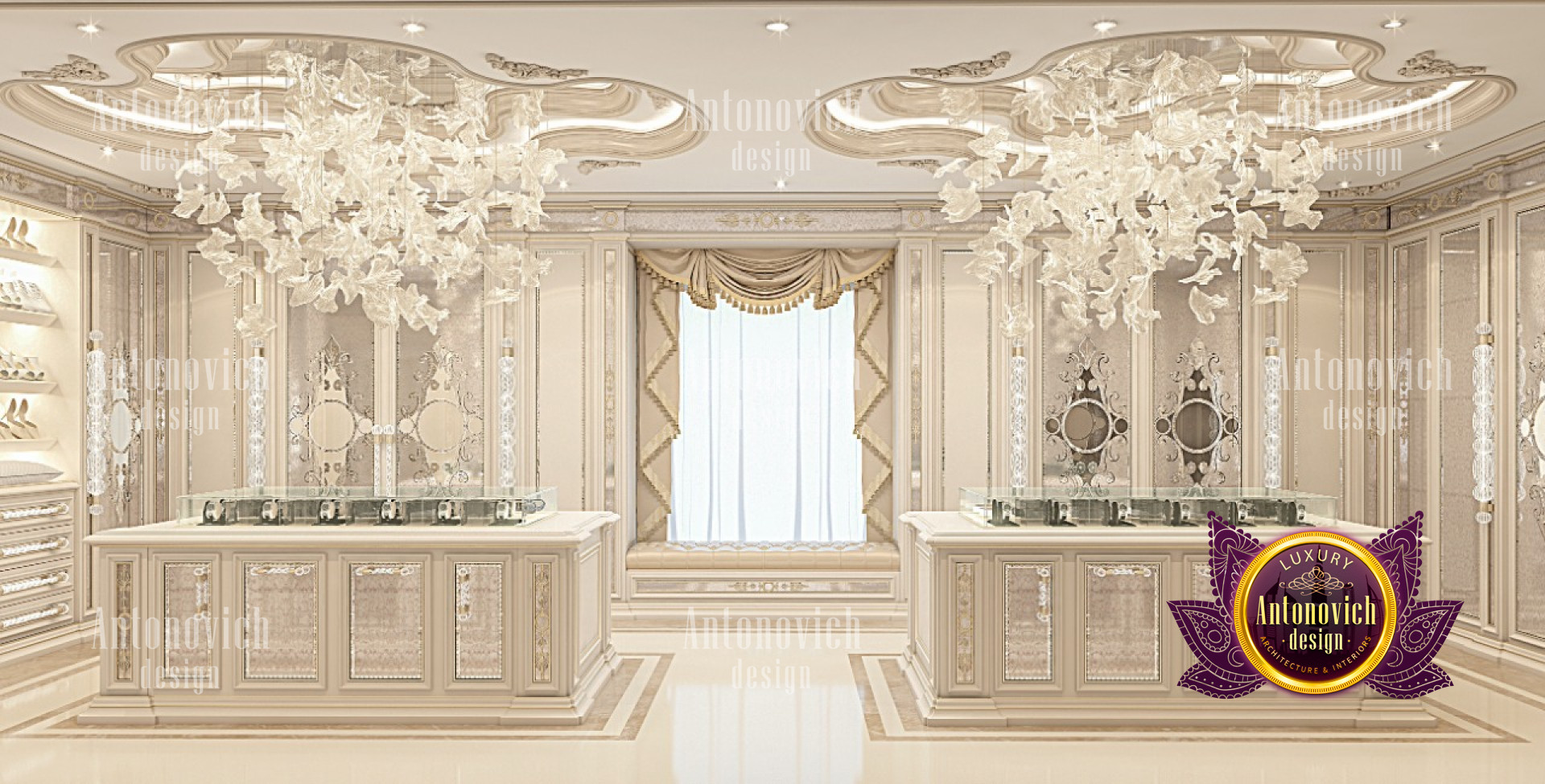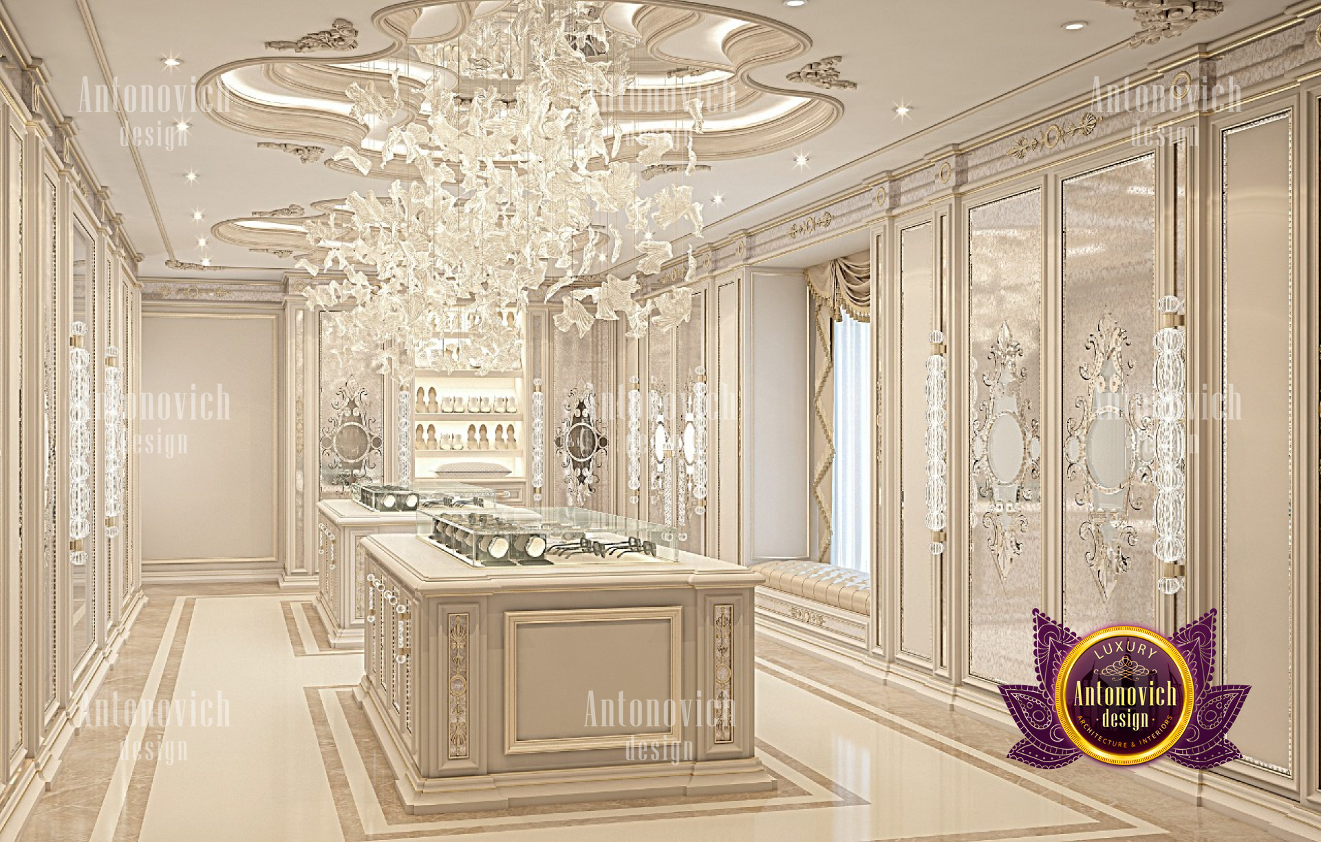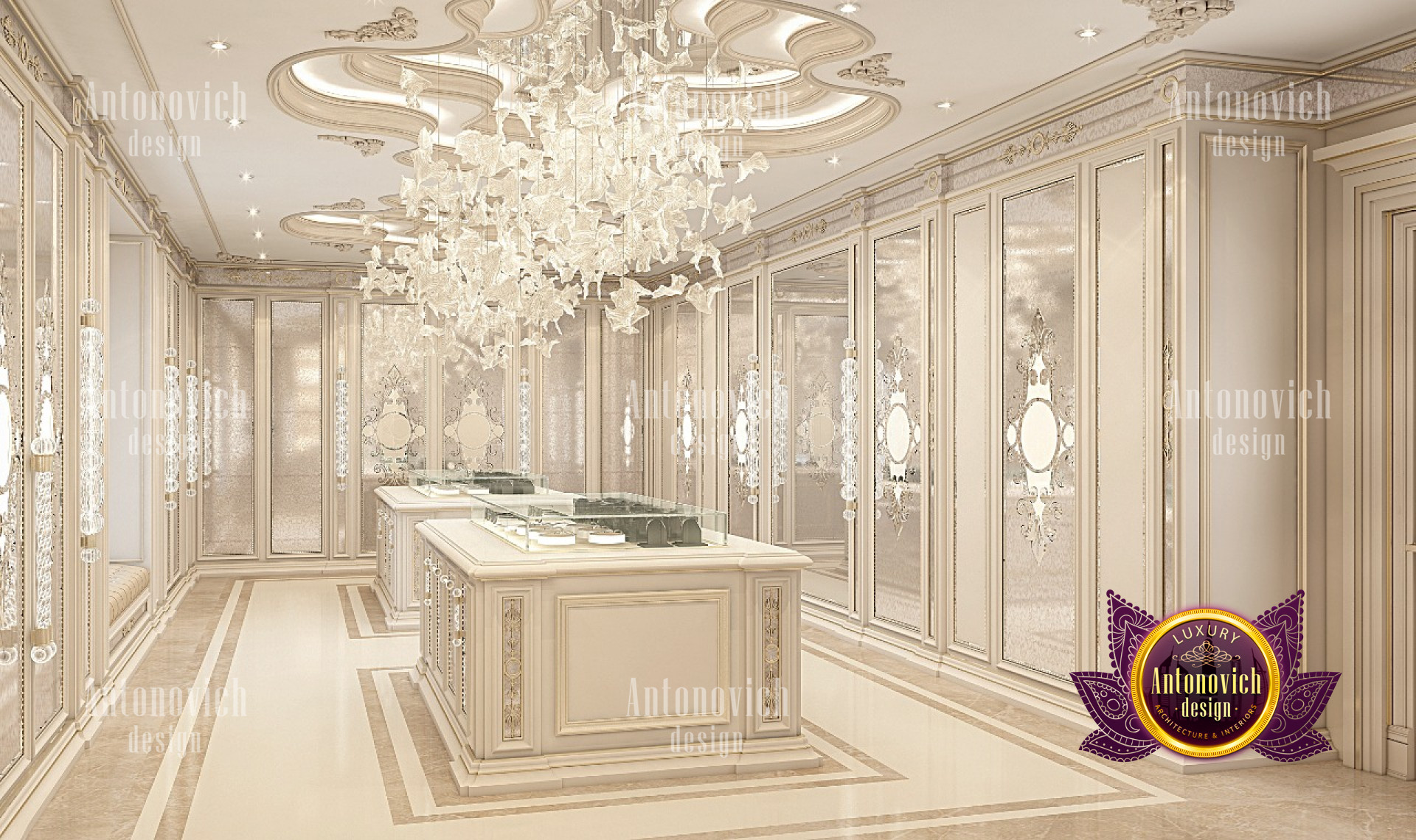 If youre a fan of luxury details, this elegant modern interior design has enough style for you! Interesting design can be seen in the luxury modern interior design. It has an elegant style that coordinates with the entire luxury closet. From floor to ceiling, everything is curated with so much luxury feel. The colors are beautifully mixed. The neat and light color adds to the luxury ambiance of the luxury closet interior design made by Luxury Antonovich Design.