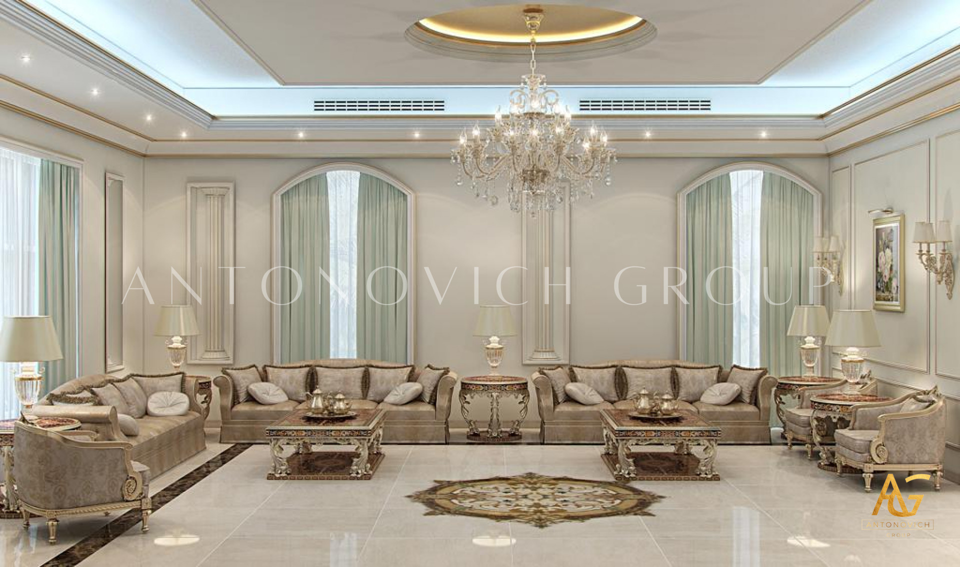 The luxurious majlis room is one of the most frequently used rooms in the house since it is convenient and well-equipped. There is a lot of furniture in the Luxury Antonovich Design, and they used the proper materials and details. The high-ceiling overlooking is one of the most appealing features of this luxury house interior design in Doha. As you can see from the images, the arrangement is wonderful. Stunning furniture designs, attractive accents, and high-quality materials were used to complete the overall amazing mood of the luxury house interior design in Doha. Everything was put together to create an elegant and truly magnificent environment. Luxury Antonovich Design looked at two things when finishing this luxury majlis interior design in Doha: establishing the overall aesthetic of the room and determining the major spots for furniture arrangement. The interior decor of the luxury majlis in Doha is European in style, with the same look and feel across the majlis rooms. It was designed in a modern style with practical features and brown colors by Luxury Antonovich Design. The clients were happy with the outcomes once the luxury home interior design Dubai was completed. Theyve turned their drab high-rise into a warm and inviting majlis thats not just stylish but also comfortable and luxurious!