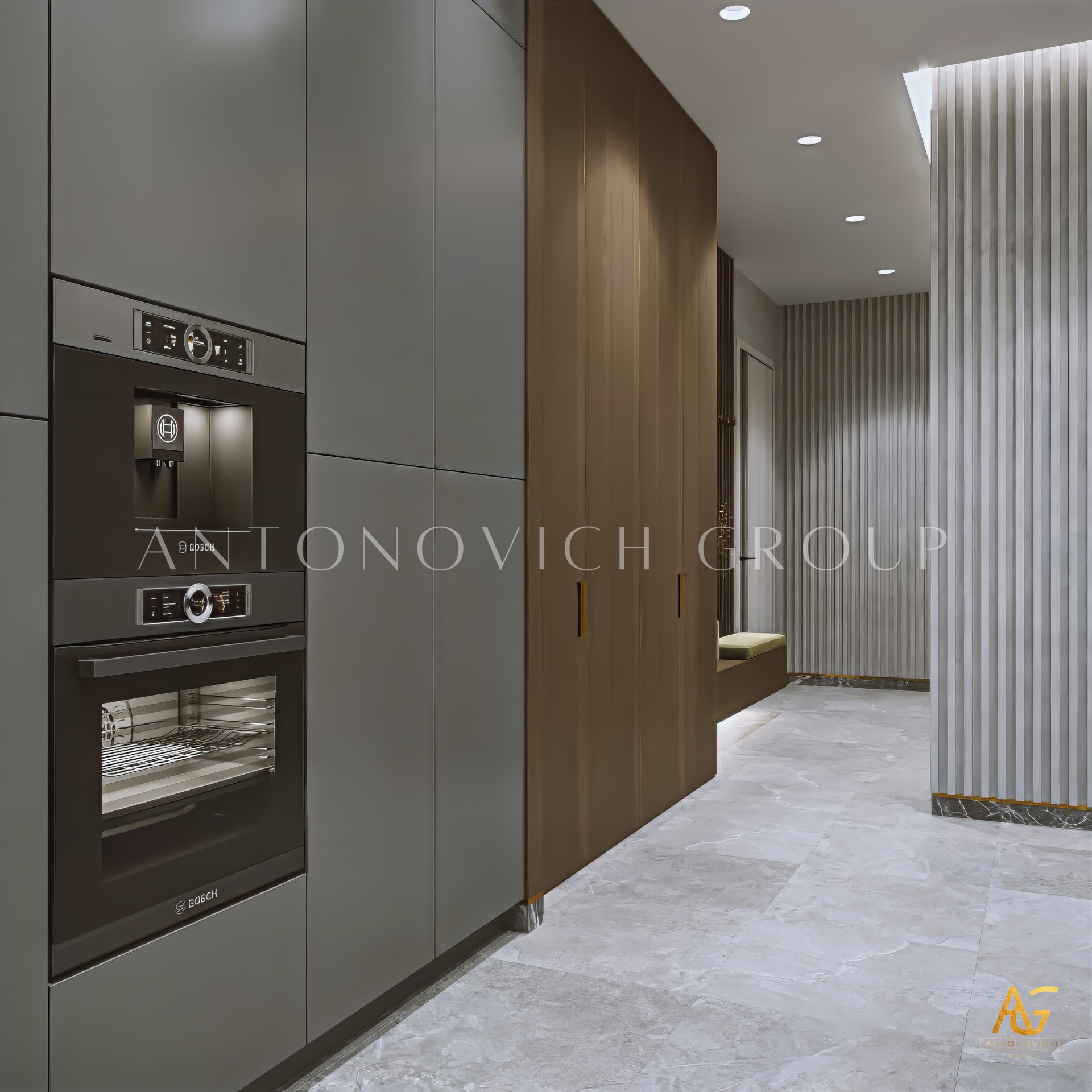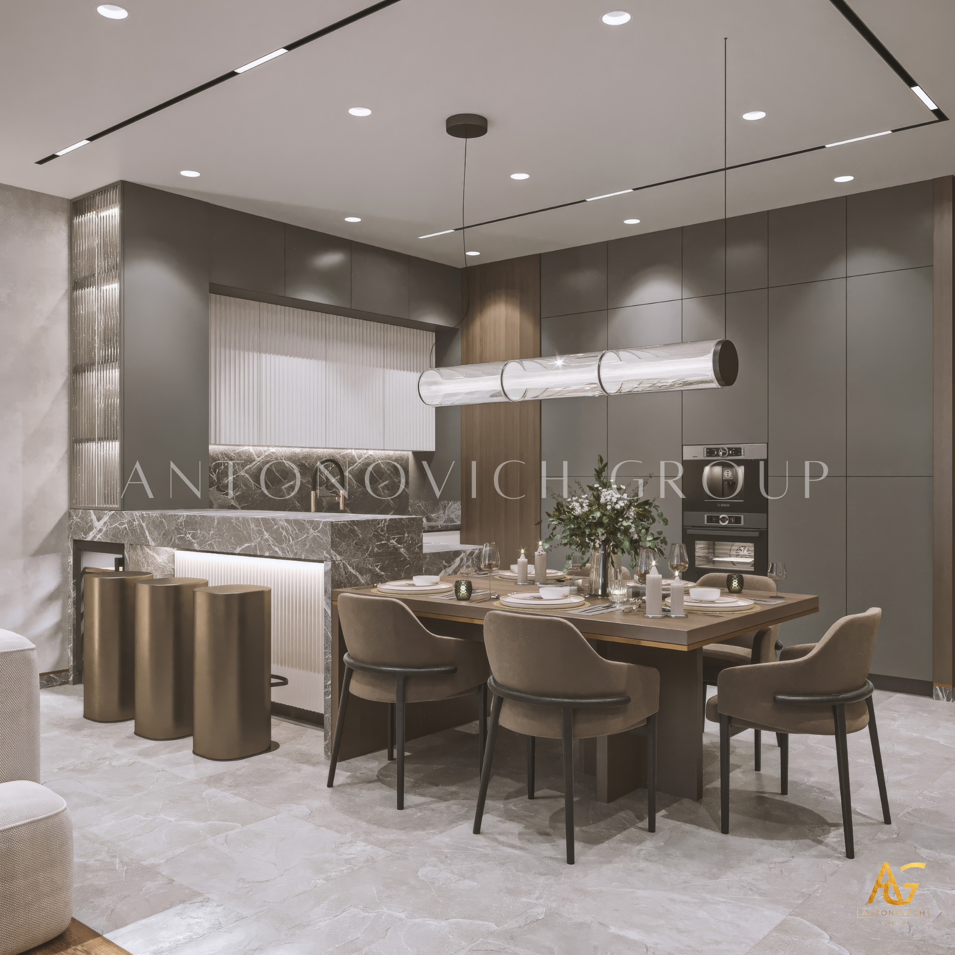Gray color is so versatile that absolutely any shades of it are a wonderful background. If the walls are made in a light gray design, then any other color can be used for furniture, even very bright. And the interior will still be restrained and calm, emphasizing favorably and making the contrasting colors shine. Gray shade in the interior by Luxury Antonovich Design will give refinement, tranquility and freshness. Due to the correct choice of tone gray color will become a win-win option for kitchen decoration. Among the advantages of color is its ability to give new unusual combinations and reveal combinations from the new side. Gray is the neutrality and versatility that makes it a favorite for our designers.
